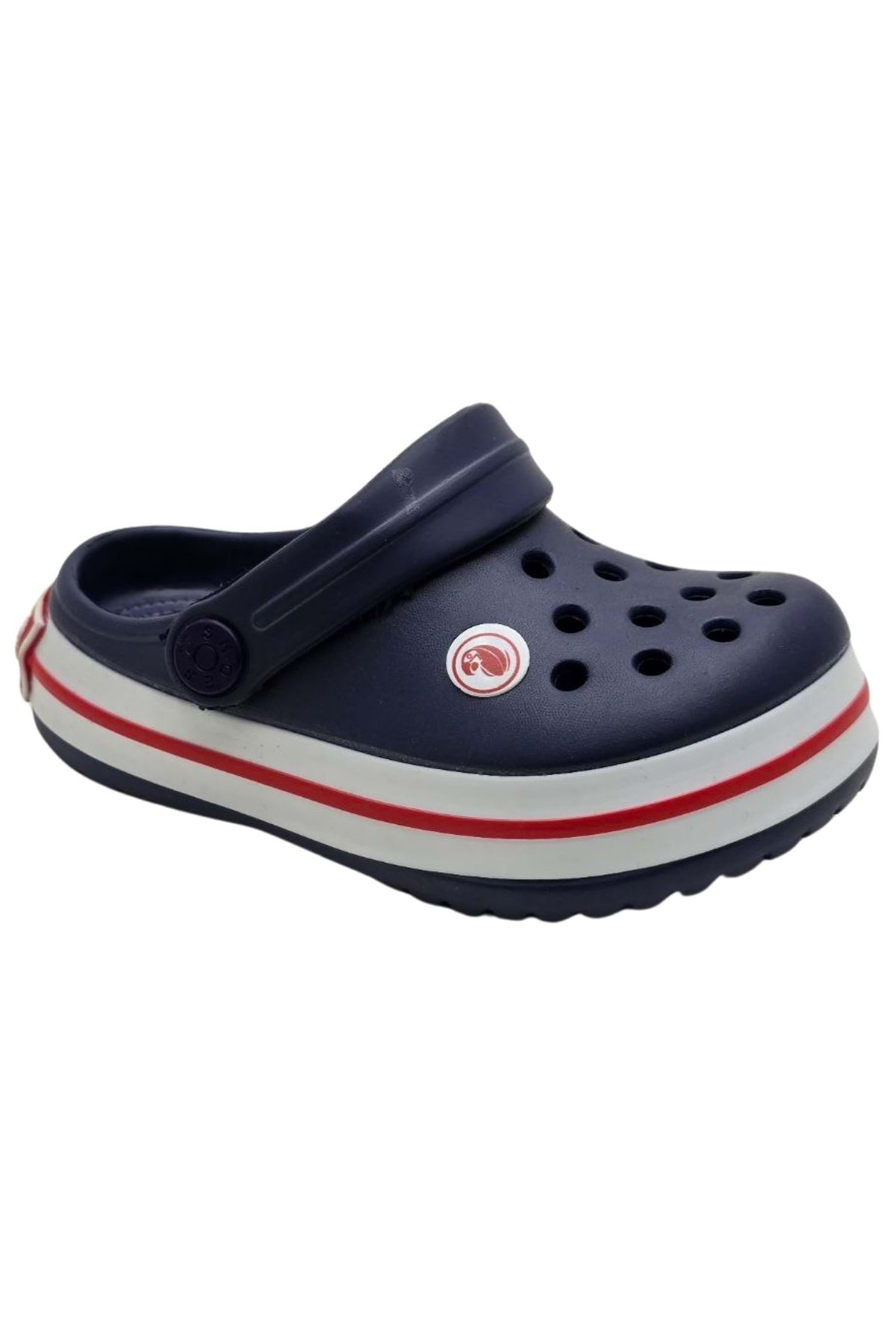 Miniklerin günlük maceralarında ve su aktivitelerinde rahatlığı ve stili bir arada sunacak, Waka Waka Kids Store'da bulabileceğiniz bu lacivert, kırmızı ve beyaz çizgili çocuk terlik ile tanışın! Şık lacivert rengi ve denizci temasını yansıtan kırmızı beyaz çizgili tabanı ile bu terlik, çocukların tarzına eğlenceli bir dokunuş katacak. Hafif ve suya dayanıklı yapısı sayesinde hem evde hem de plajda veya havuzda rahatlıkla kullanılabilir. Kolayca giyilip çıkarılabilir ve kaymaz tabanı sayesinde güvenli adımlar sağlar. Waka Waka Kids Store'da!
