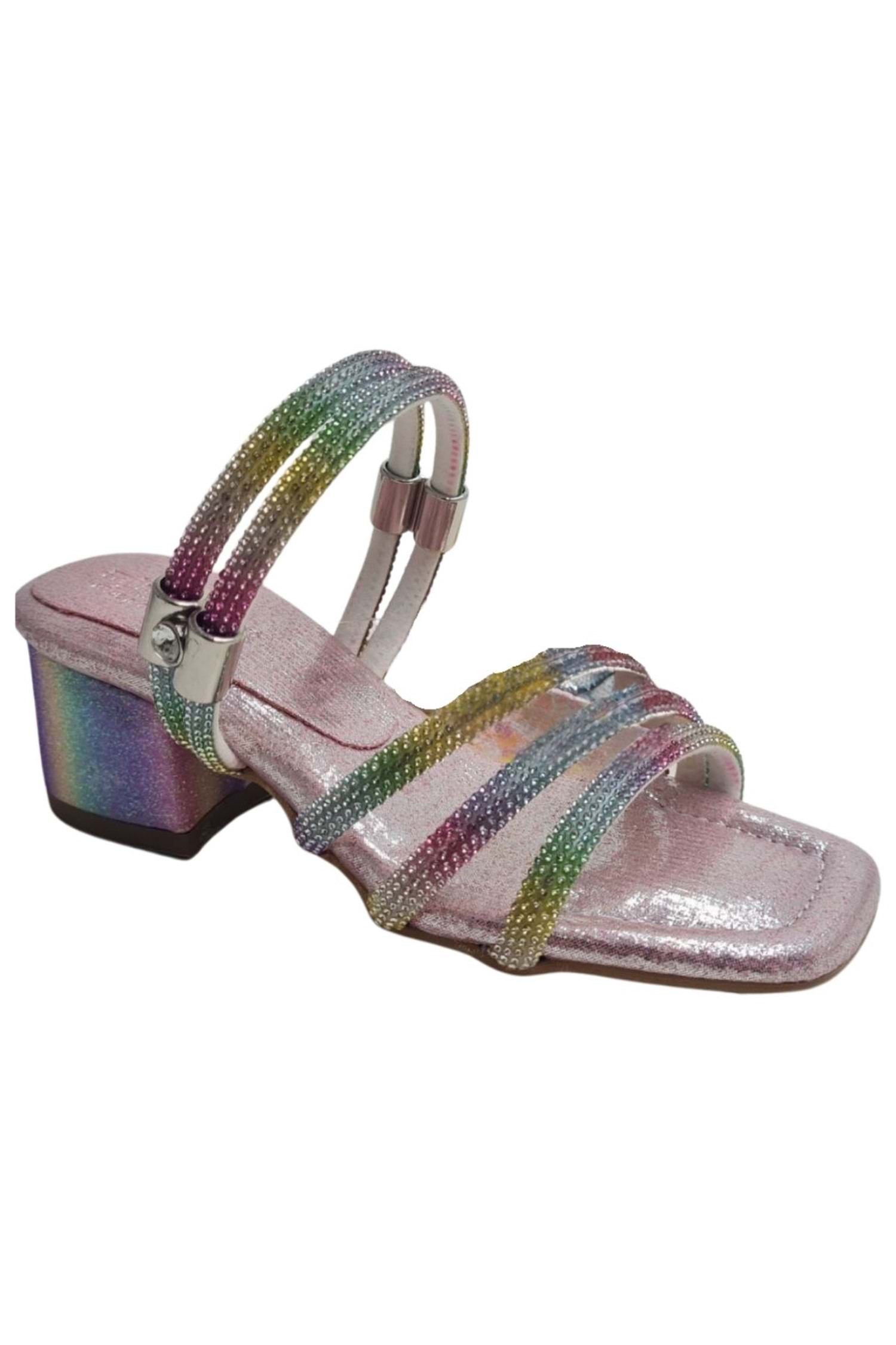 Miniklerin özel günlerdeki enerjisini ve ışıltısını yansıtacak, Waka Waka Kids Store'da bulabileceğiniz bu gökkuşağı taşlı kalın topuklu kız çocuk abiye ayakkabı ile tanışın! Pembe ışıltılı tabanı ve gökkuşağı renklerindeki taşlarla süslü bantları sayesinde her adımda büyüleyici bir görünüm sunar. Kalın topuğu çocuğunuzun rahatça hareket etmesini sağlarken, ayak bileğini saran ayarlanabilir bant güvenli bir kullanım sunar. Düğünler, doğum günleri, mezuniyetler ve diğer özel davetler için mükemmel bir seçim olan bu abiye ayakkabılar, Waka Waka Kids Store'da!