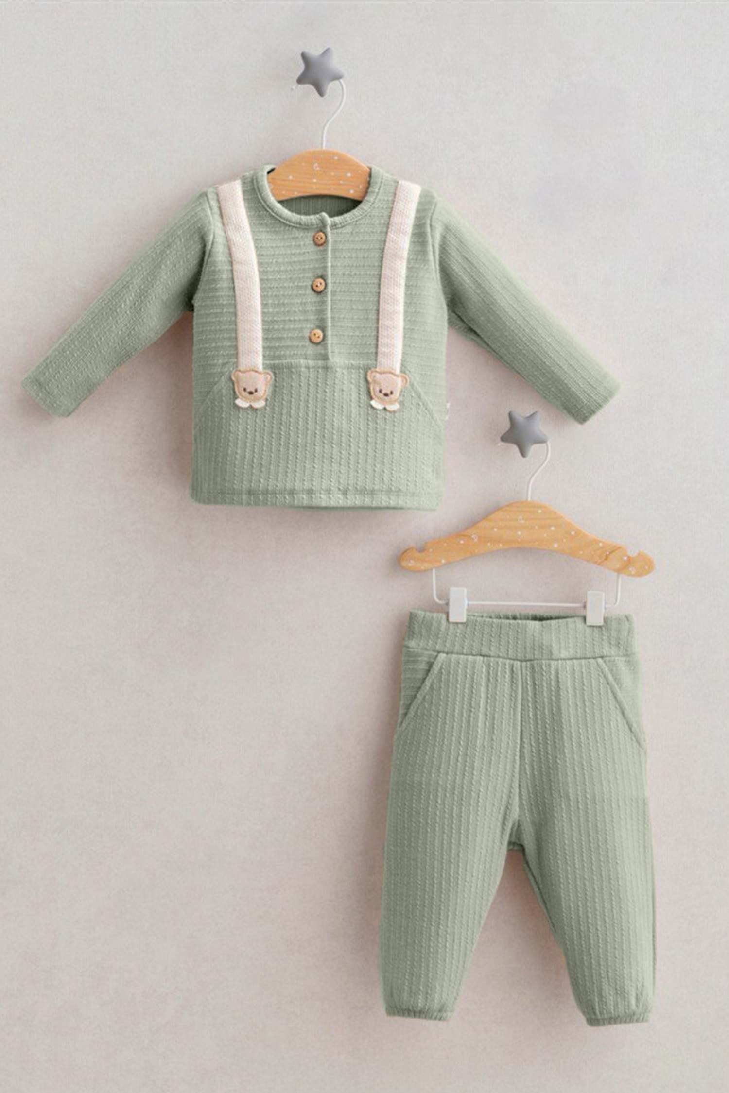 Ayıcık Figürlü Önden Düğmeli Erkek Bebek Takımı