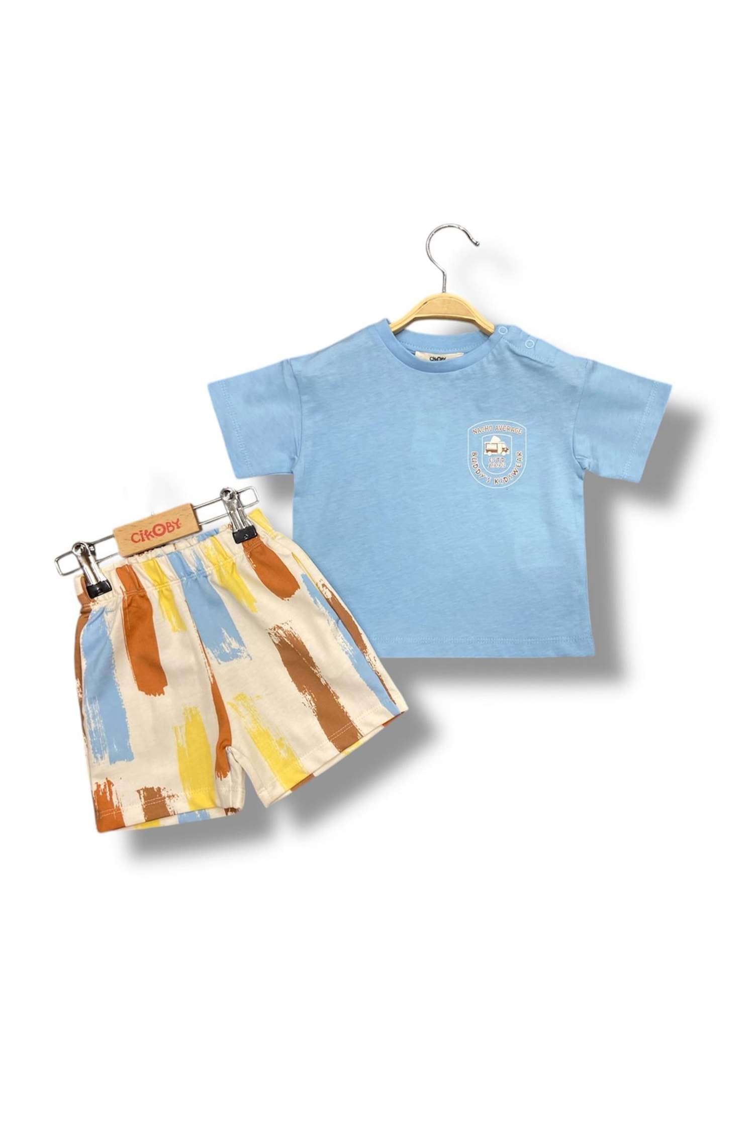 Miniklerin hayal dünyasına yolculuk yapacağı, Waka Waka Kids Store'da bulabileceğiniz bu bulut baskılı mavi tişört ve rengarenk çizgili şorttan oluşan bebek/çocuk takım ile tanışın! Trend açık mavi rengindeki kısa kollu tişörtün göğüs kısmındaki sevimli bulut ve figür baskısı ile miniklerin günlük kombinlerine tatlı bir dokunuş katarken, canlı renklerdeki çizgili rahat şort neşeli bir görünüm sunar. Yumuşak ve nefes alabilen pamuklu kumaşı sayesinde hassas ciltlerine özen gösterir ve gün boyu rahat bir kullanım sağlar. Omuzdan çıtçıtlı (bebekler için kolay giydirme) tişört ve lastikli belli rahat şortu sayesinde pratik bir kullanım sunar. İster oyun oynarken, ister gezintide, bu sevimli ve rahat takım miniklerin favorisi olacak.