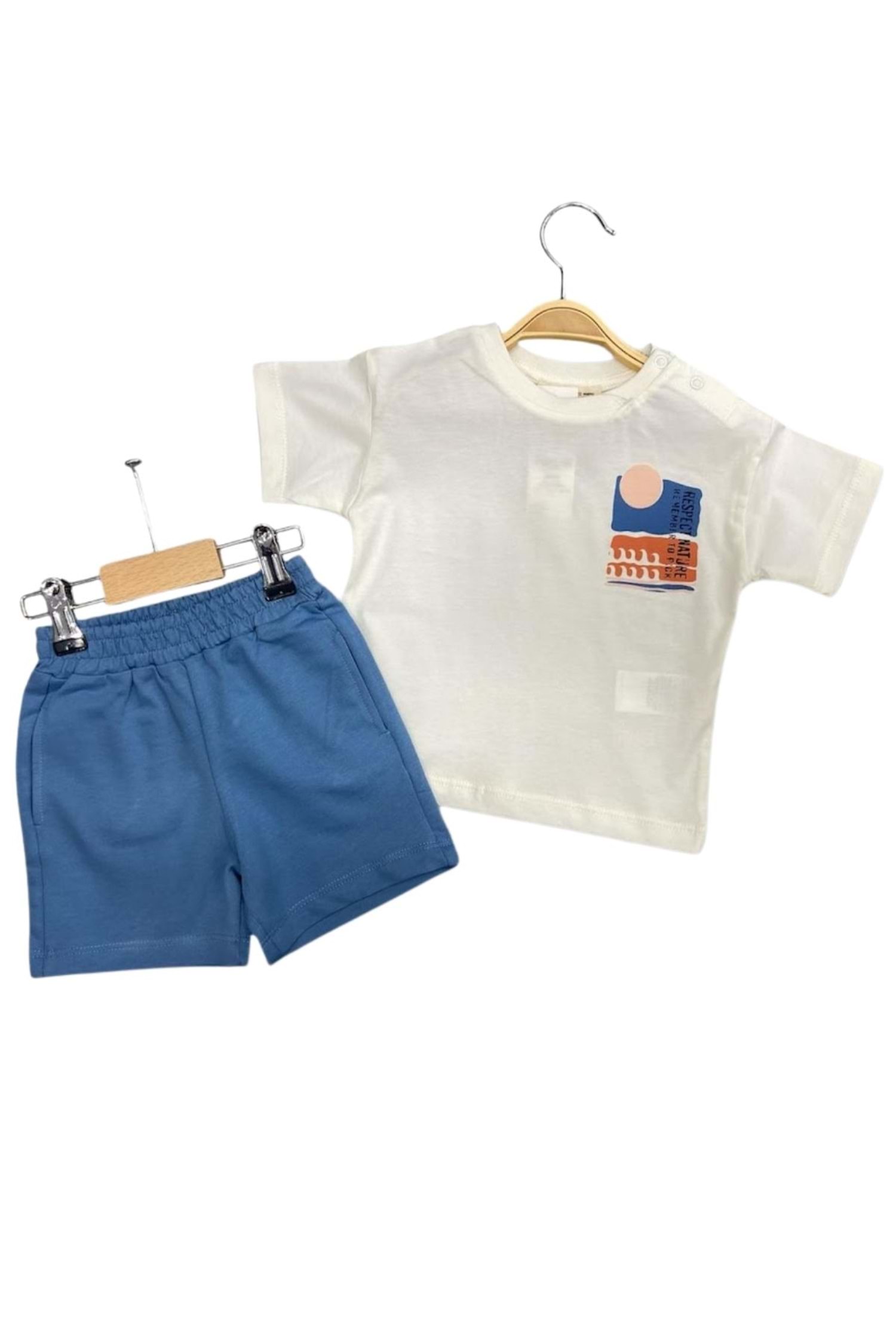 Miniklerin yaz enerjisini yansıtan, Waka Waka Kids Store'da bulabileceğiniz bu cep detaylı baskılı beyaz tişört ve mavi şorttan oluşan bebek/çocuk takım ile tanışın! Trend beyaz rengindeki kısa kollu tişörtün göğüs cebindeki renkli baskı detayı ile miniklerin günlük kombinlerine eğlenceli bir dokunuş katarken, canlı mavi rengindeki rahat şort ferah bir görünüm sunar. Yumuşak ve nefes alabilen pamuklu kumaşı sayesinde hassas ciltlerine özen gösterir ve gün boyu rahat bir kullanım sağlar. Omuzdan çıtçıtlı (bebekler için kolay giydirme) tişört ve lastikli belli rahat şortu sayesinde pratik bir kullanım sunar. İster parkta oynarken, ister yaz gezintisinde, bu neşeli ve rahat takım miniklerin favorisi olacak.