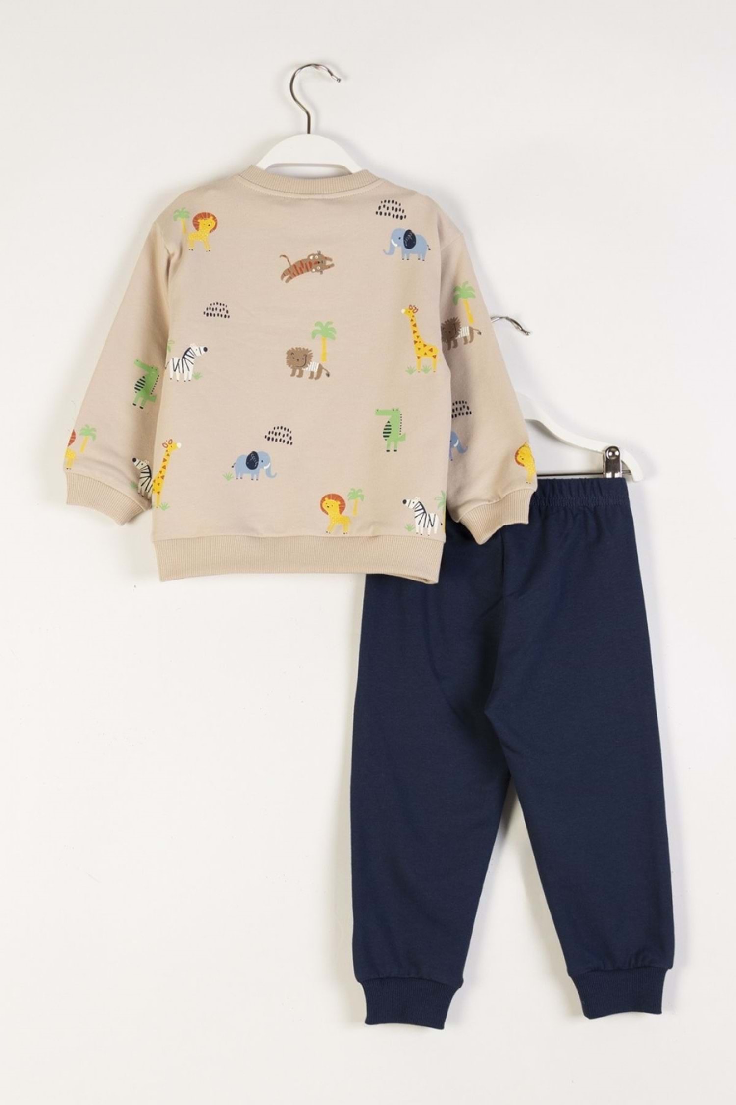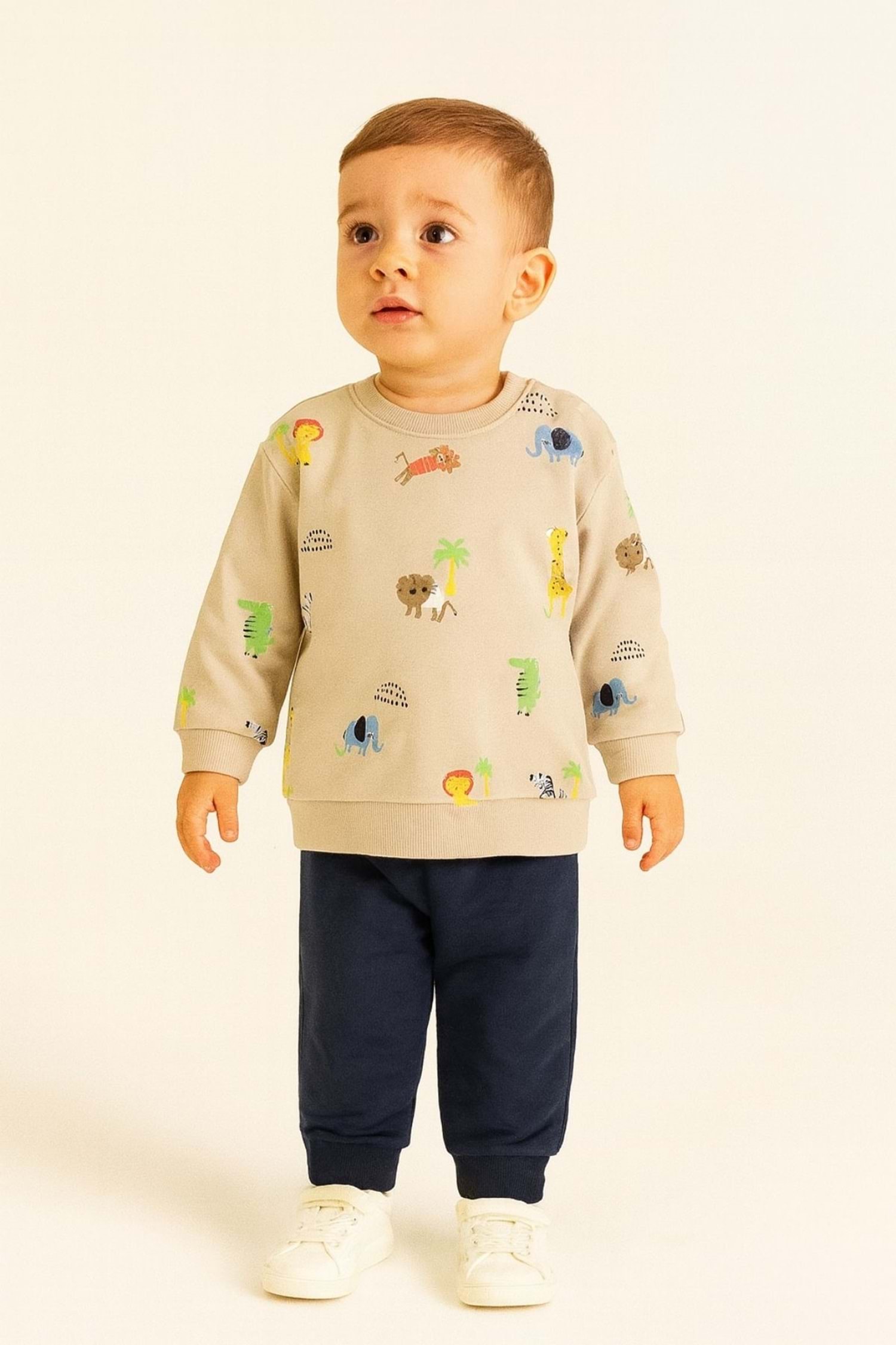 Minik beyefendilerin hem rahat hem de şık görünmesini sağlayan hayvan baskılı eşofman takımları, bebeklerin dolaplarında olmazsa olmazlardan. Özellikle bisiklet yaka ve çıtçıt detayı sayesinde hem kolayca giydirilip çıkarılırlar hem de bebeğinizin hareket özgürlüğünü kısıtlamazlar. Paçaların lastikli olması ise eşofman takımının yerinde durmasını sağlar ve bebeğinizin aktif oyunlarına engel olmaz.