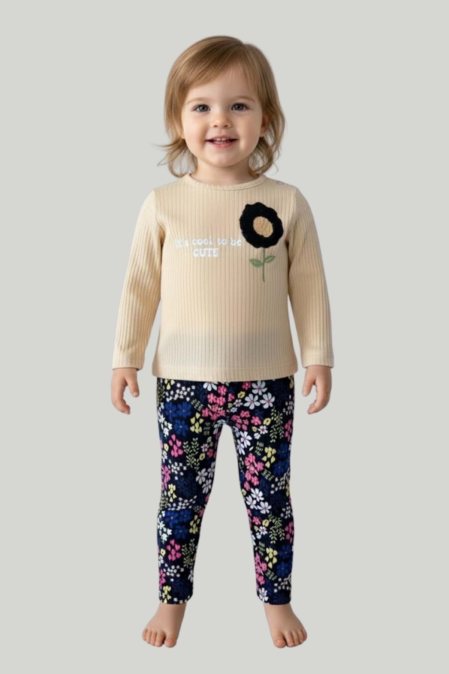 Kalın Fitilli Nakışlı Hırka Uzunkollu Badi Pantolonlu 3lü Kız Bebek Takım