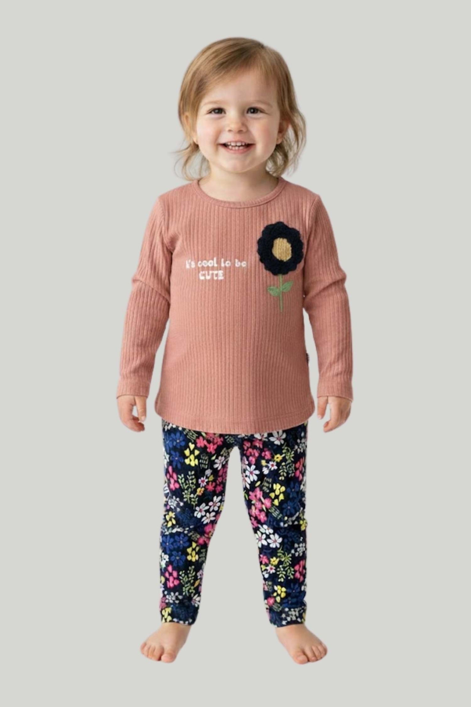 Önü Nakışlı Arkadan Çıtçıt Kapamalı Taytlı Kız Çocuk Takım