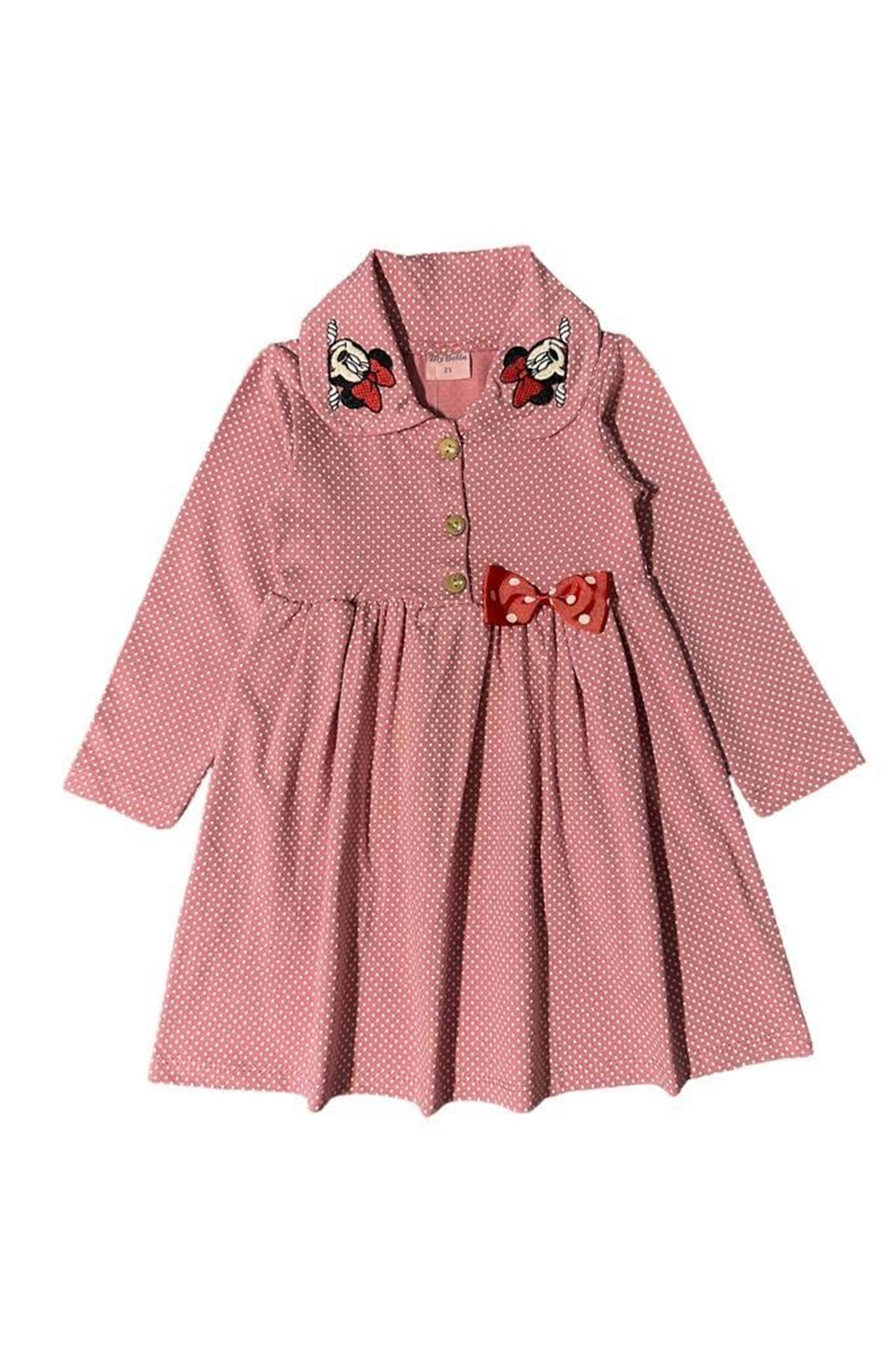 Puantiye Baskılı Önü Fiyonk Detaylı Astarlı Kız Bebek Elbise