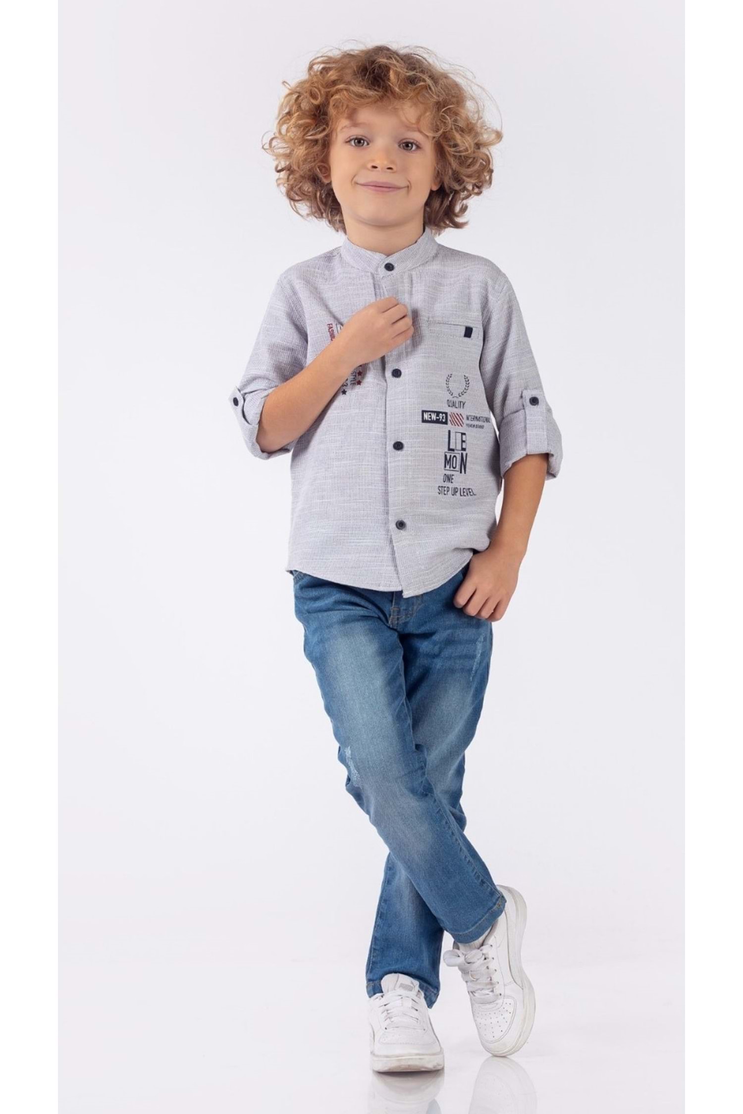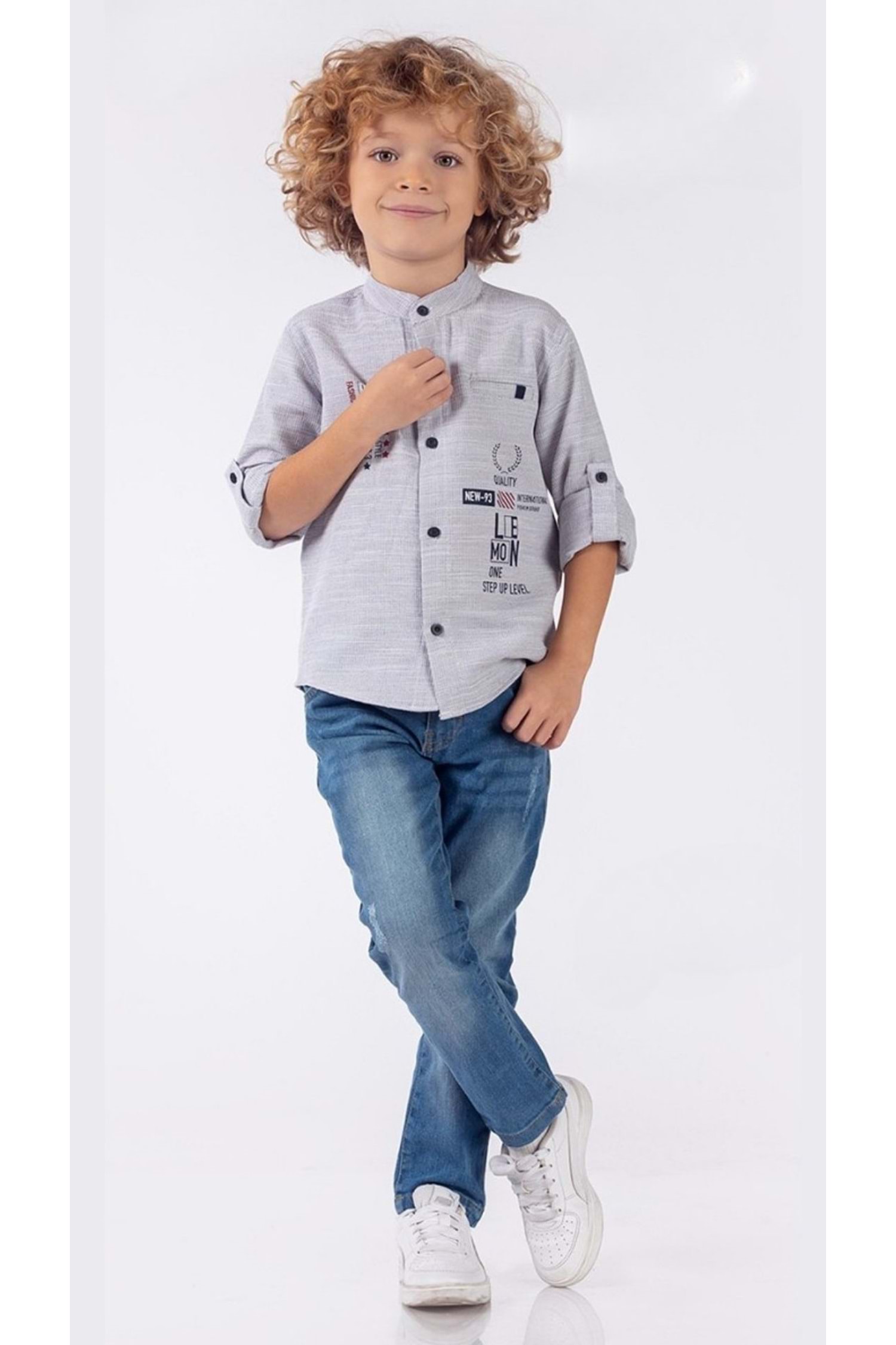 Önü Baskılı Hakimyaka Gömlekli Pantolonlu Erkek Çocuk 2li Takım