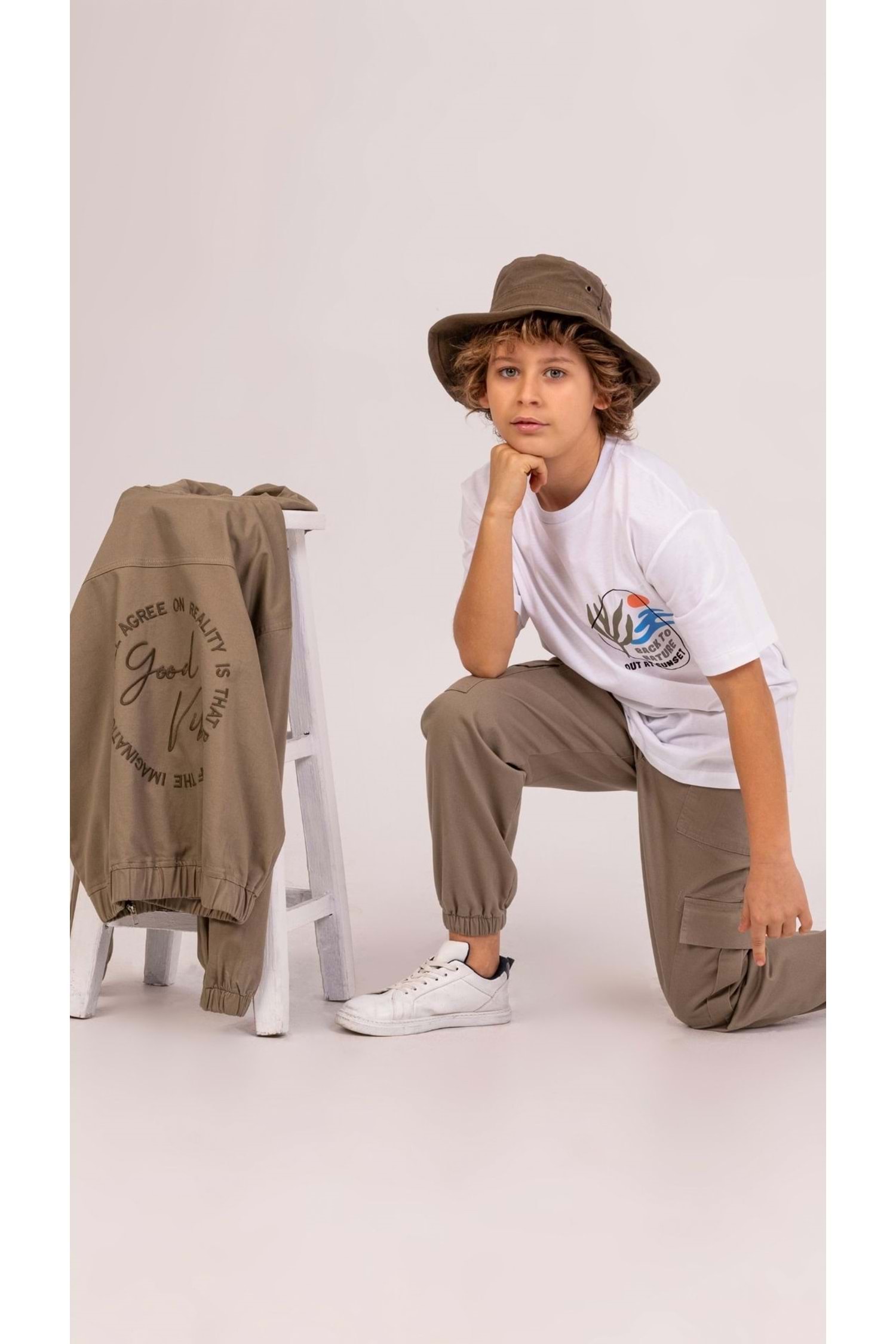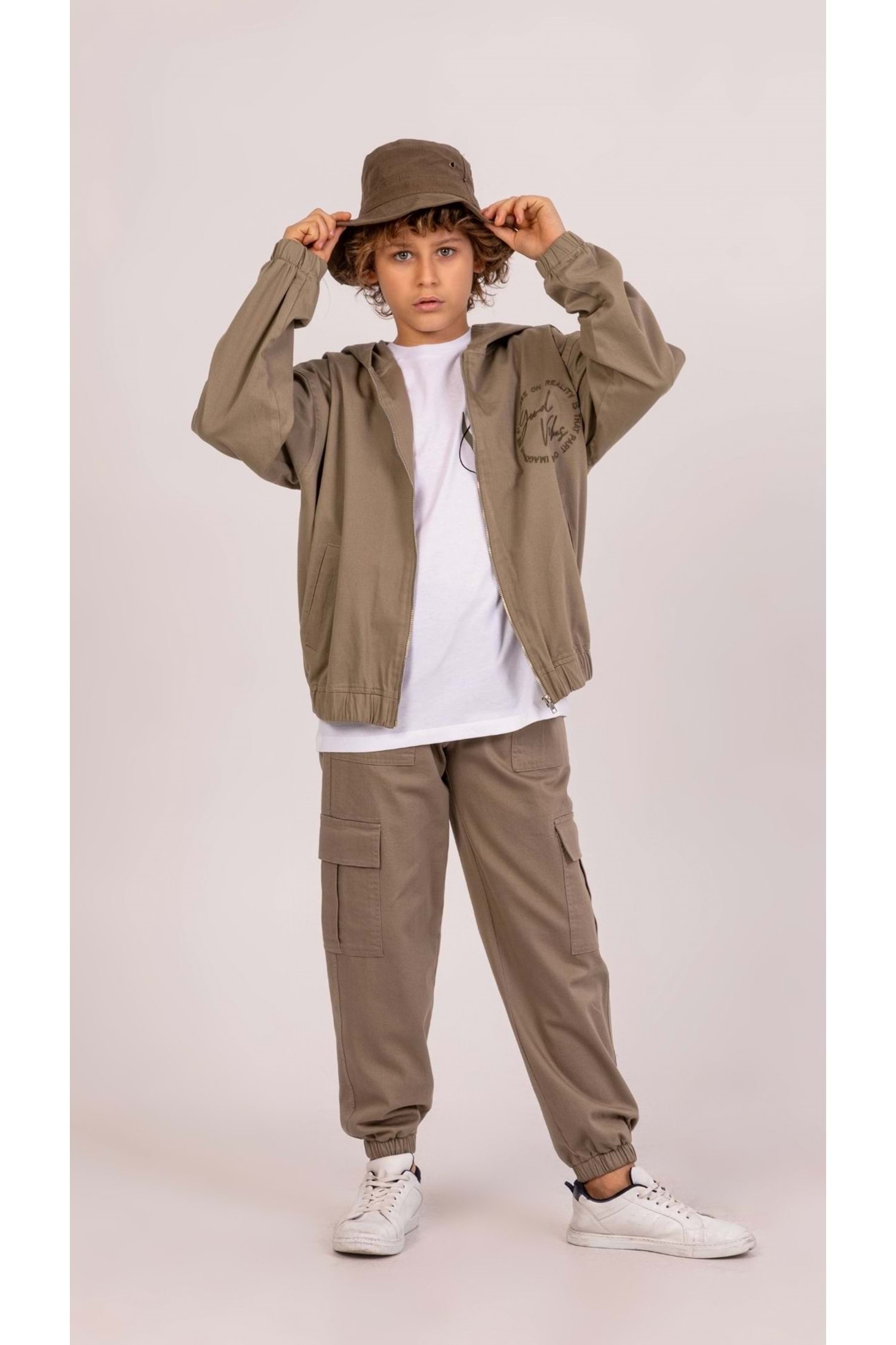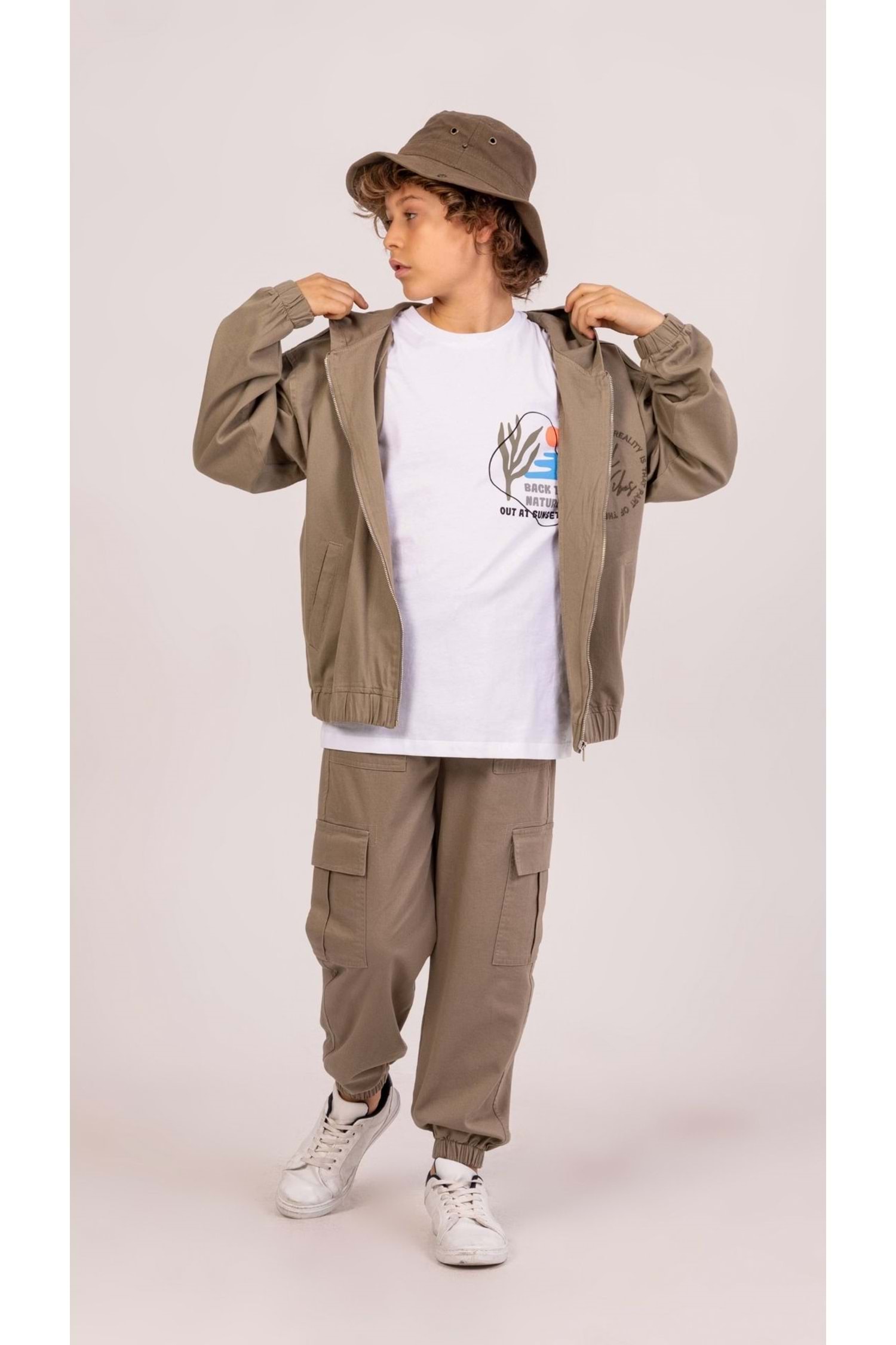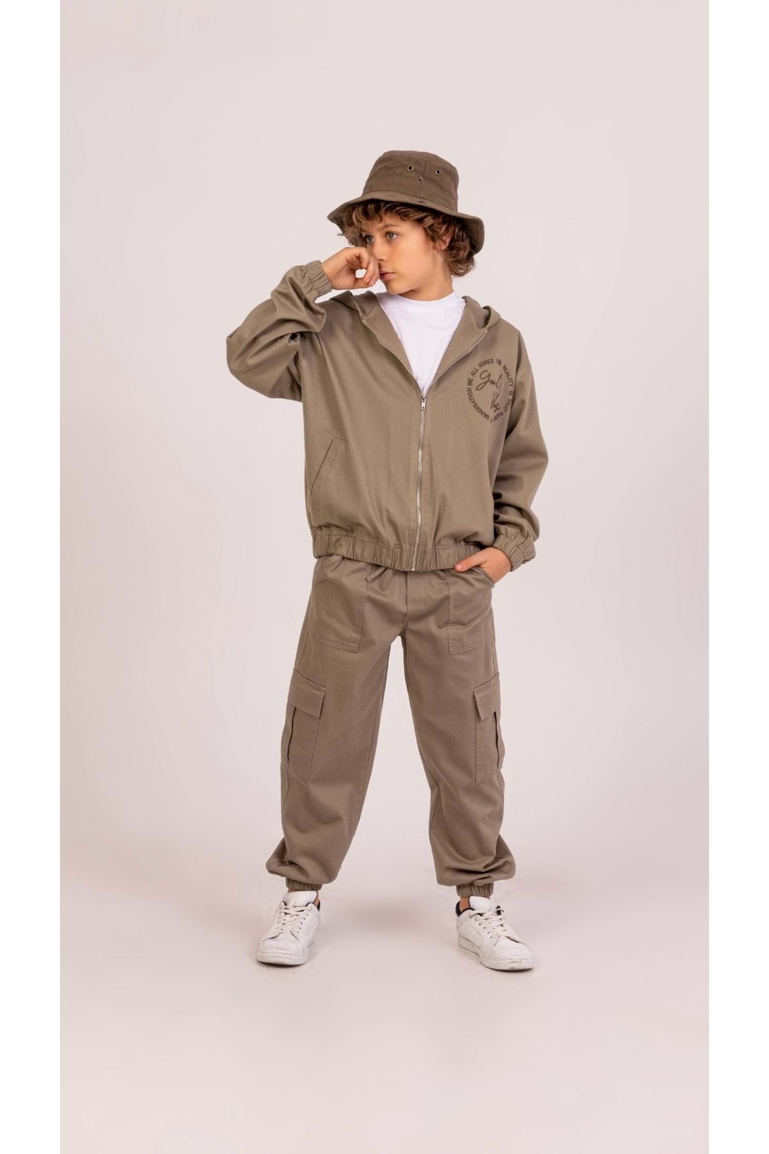 Sırt Nakışlı Ceket Kargo Cepli Pantolonlu Erkek Çocuk Takım