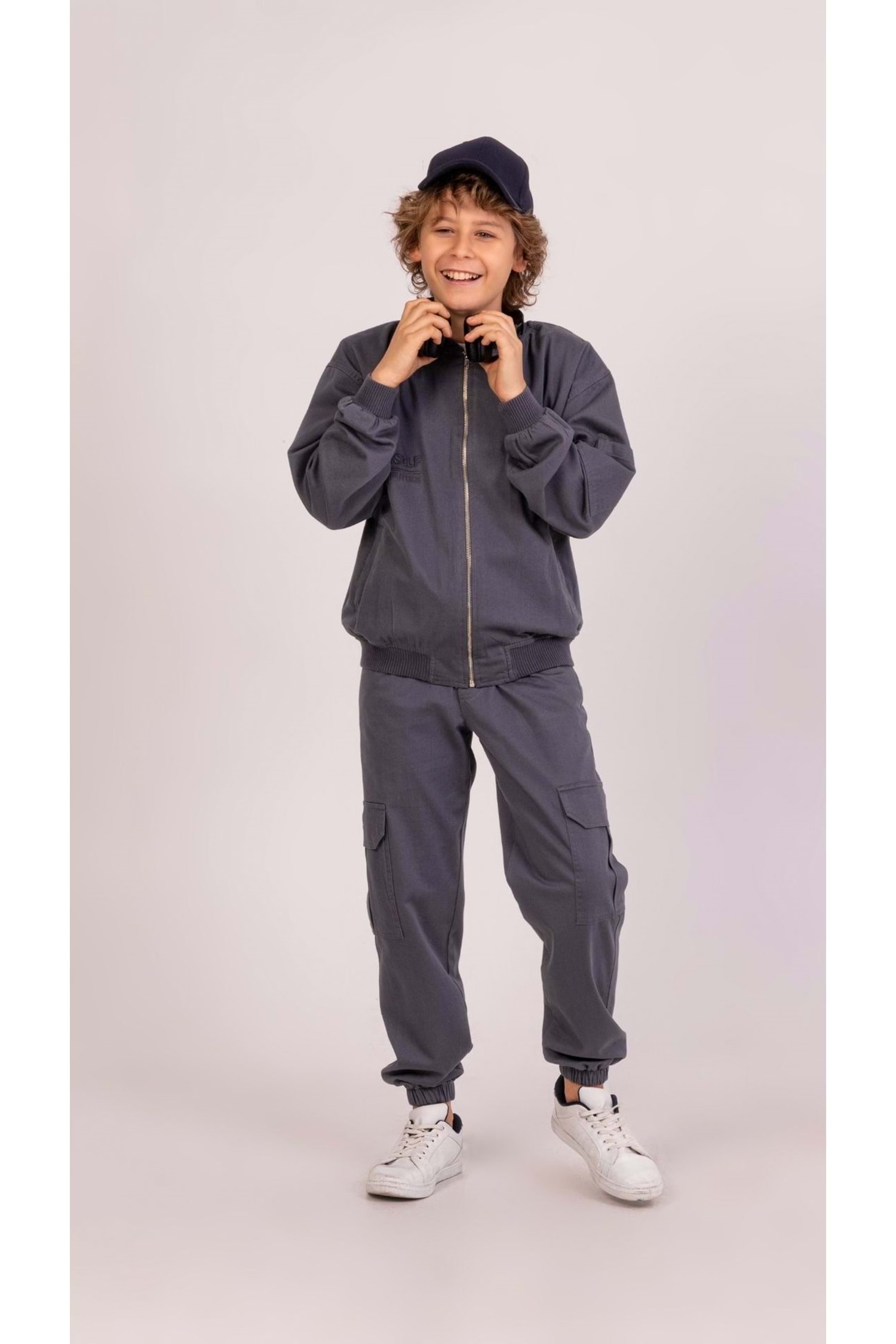 Sırt nakışlı ceket ve kargo cepli pantolon kombinasyonu, erkek çocuklarının gardırobunda hem şıklığı hem de rahatlığı bir arada sunan modern bir seçenektir. Bu takım, çocuğunuzun enerjisini ve kişiliğini yansıtırken aynı zamanda günlük hayatta ve özel günlerde rahatlıkla kullanılabilir.