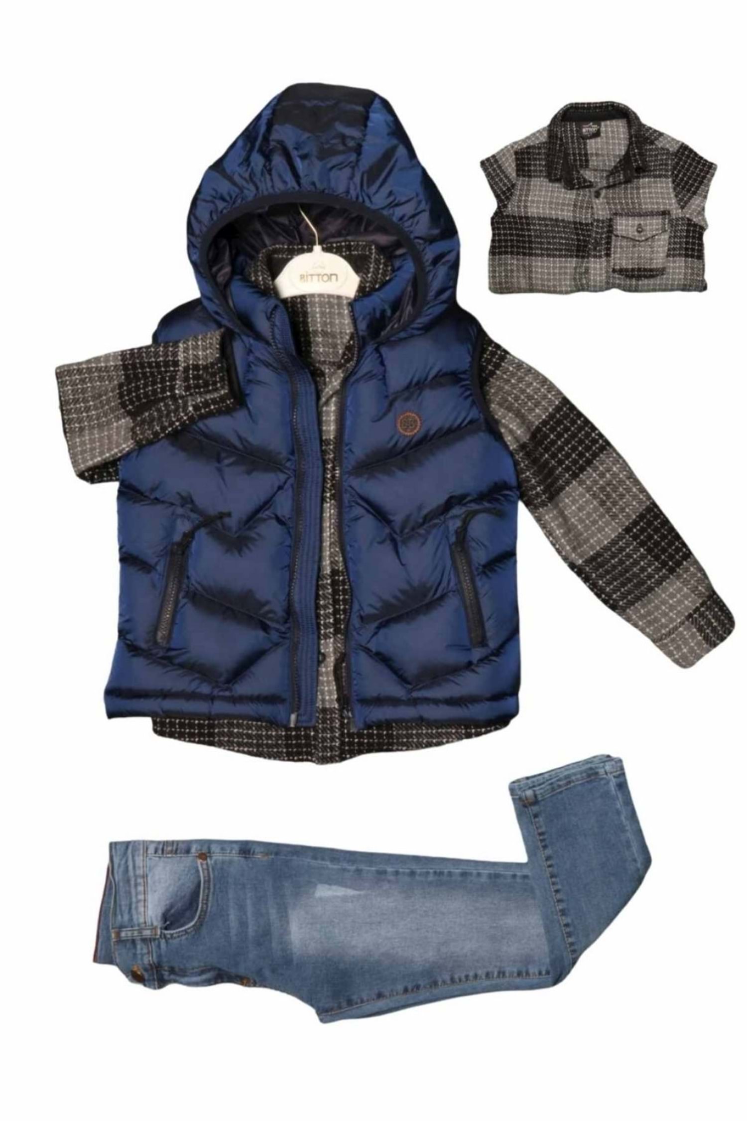 Önü Sırtı Nakışlı Kapüşonlu Ceket Kargo Cepli Pantolonlu Erkek Çocuk Takım - Bej