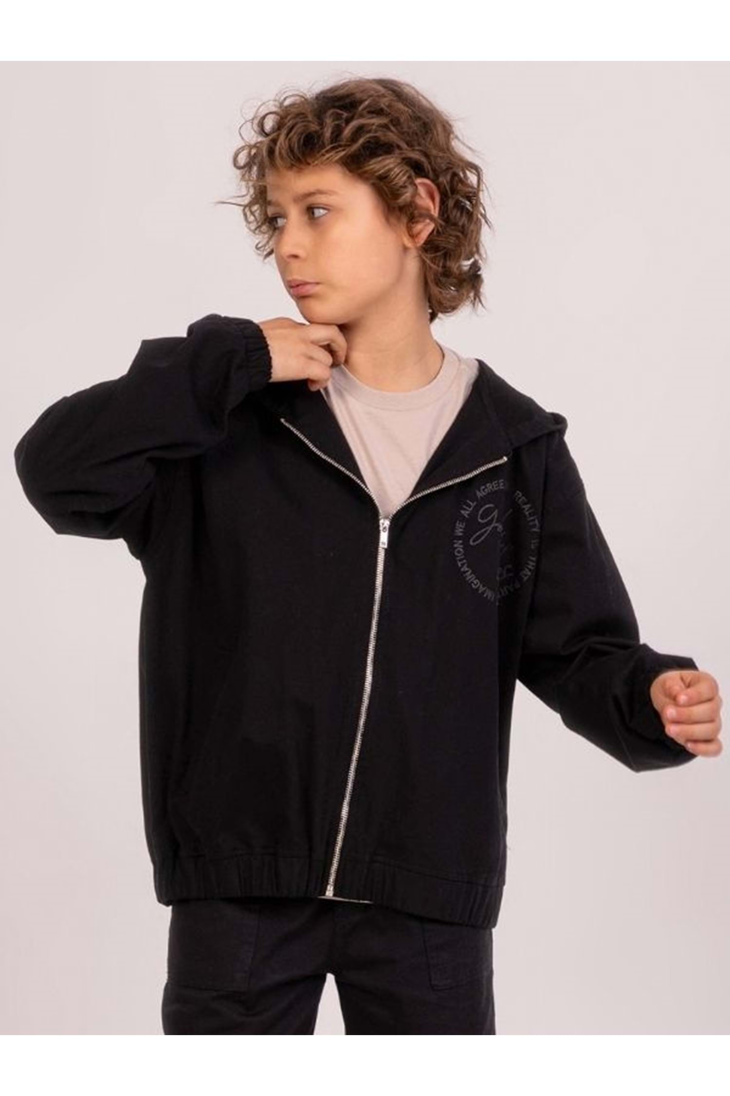 Kanguru Cepli Kapüşonlu Ön ve Sırt Nakışlı Erkek Çocuk Kot Ceket
