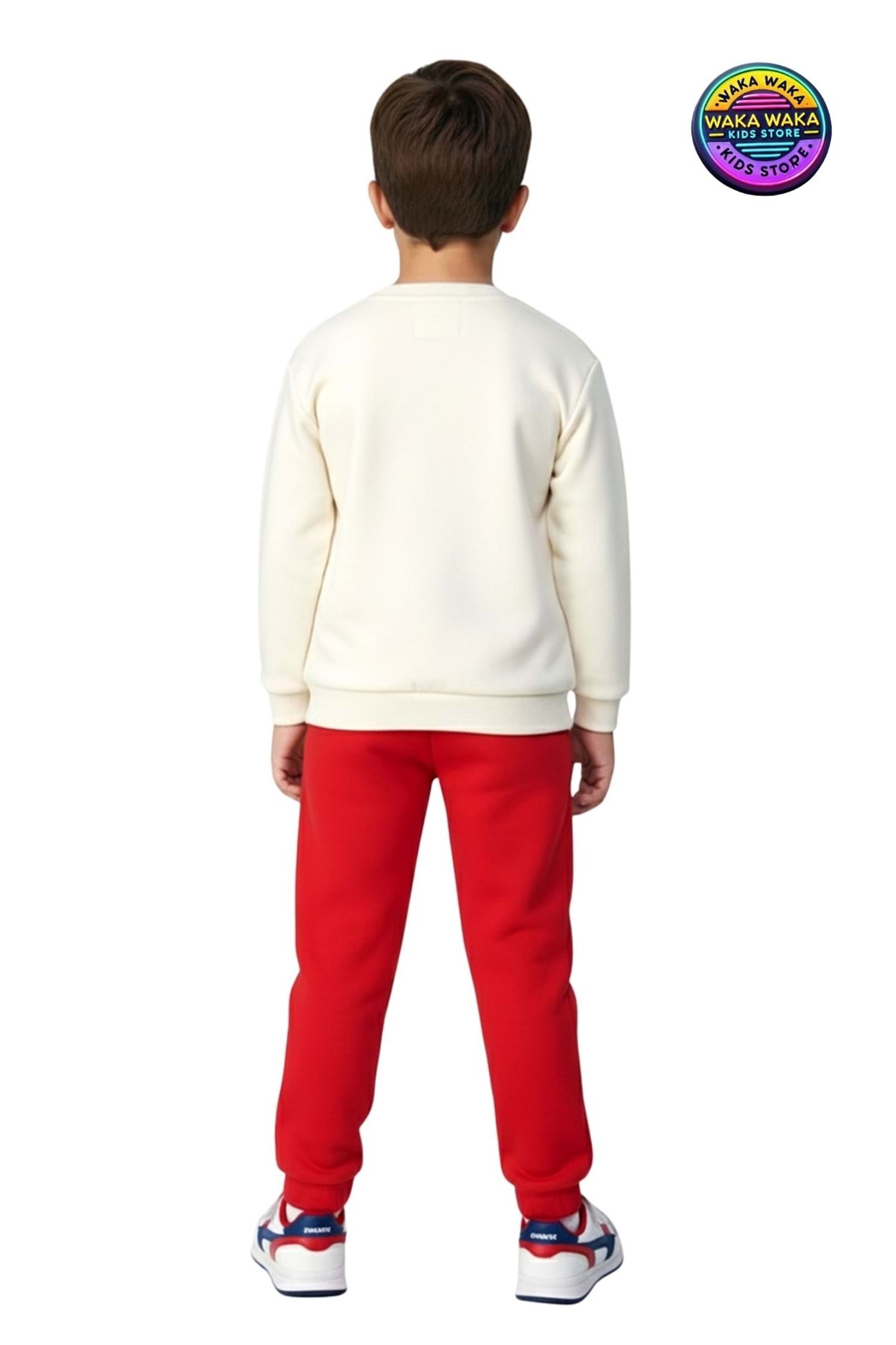 Erkek Çocuk Fermuarlı Kapüşonlu Eşofman Takımı – Baskılı Sweatshirt ve Jogger Alt