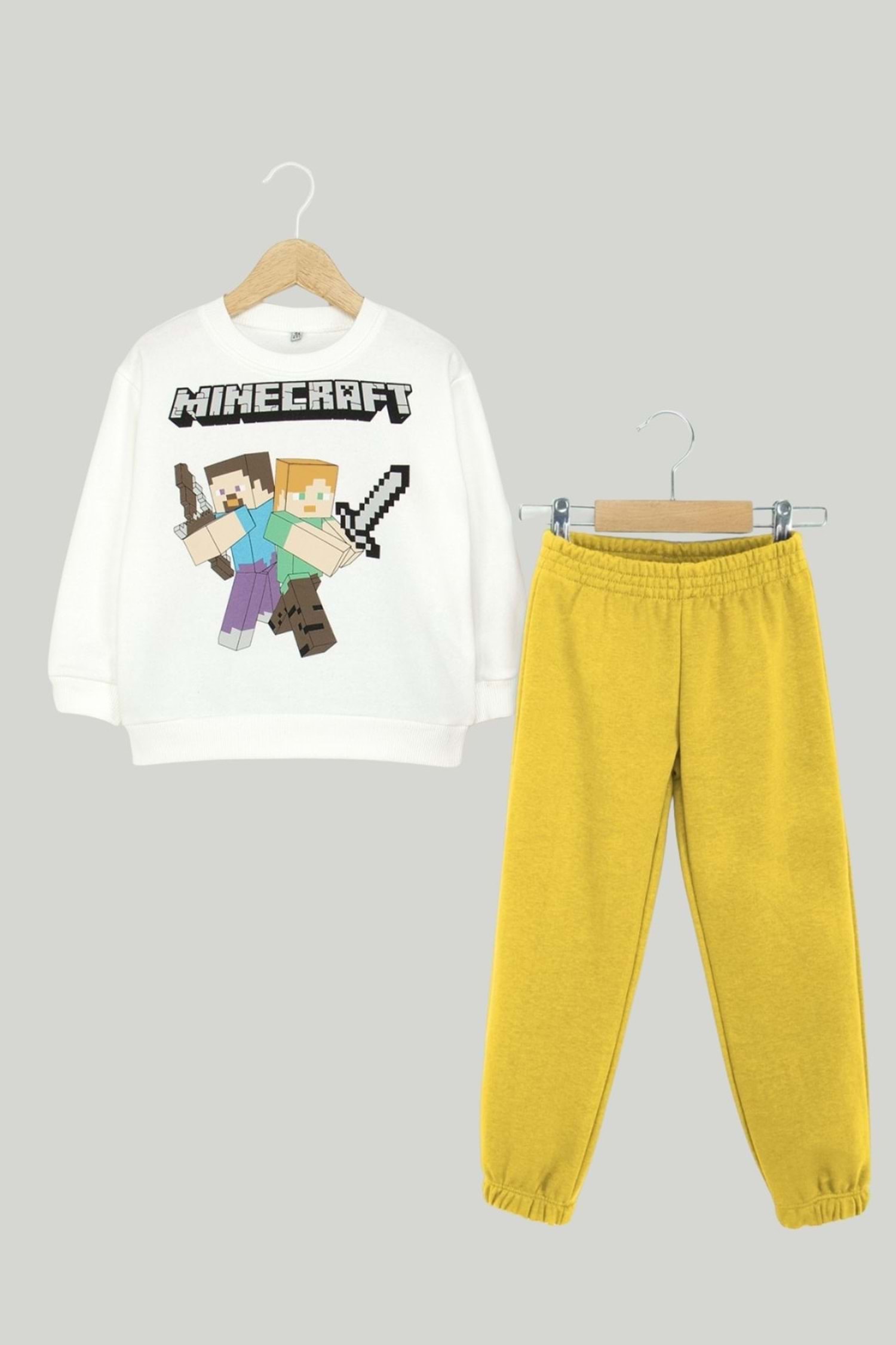 Minecraft Baskılı Erkek Çocuk Eşofman Takımı – Beyaz Üst / Yeşil Alt