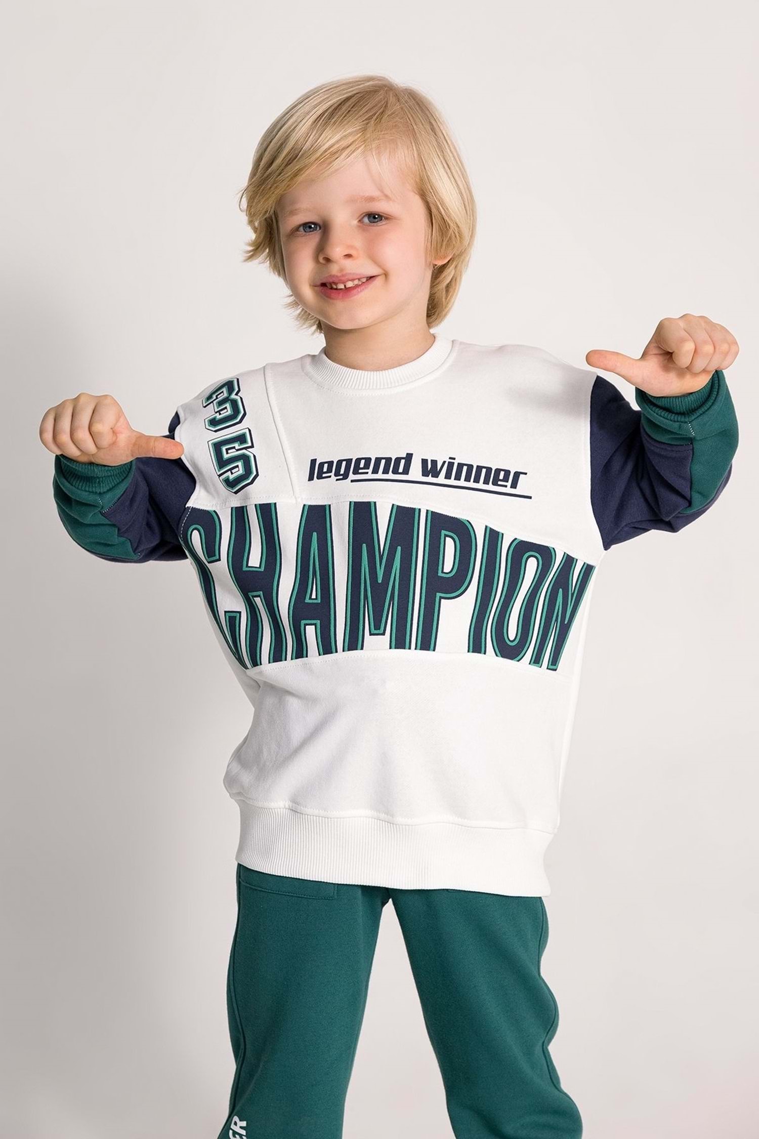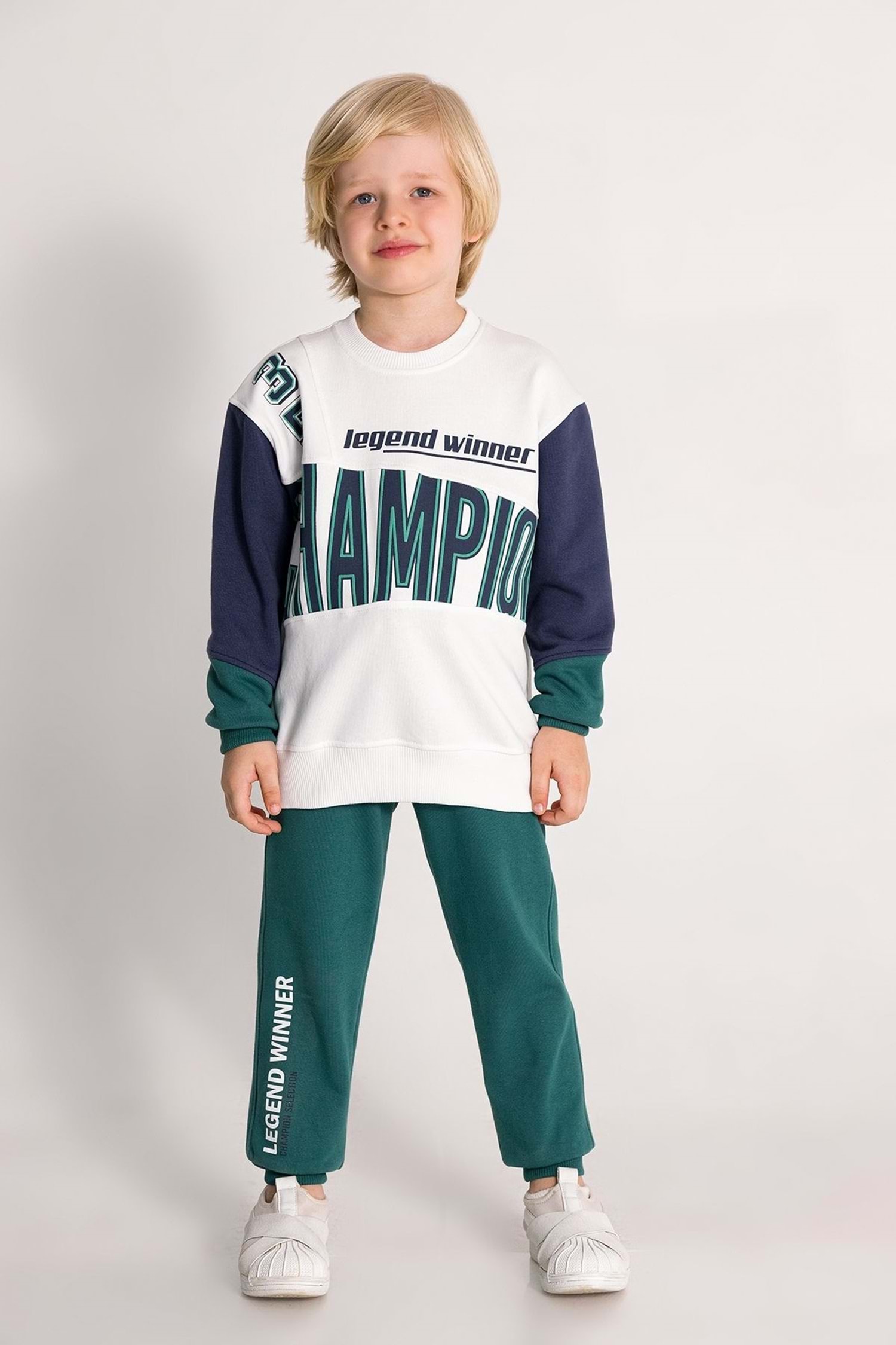 Önü Baskılı Bisiklet Yaka Kolları Beli Ribanalı Erkek Çocuk Eşofman Takım