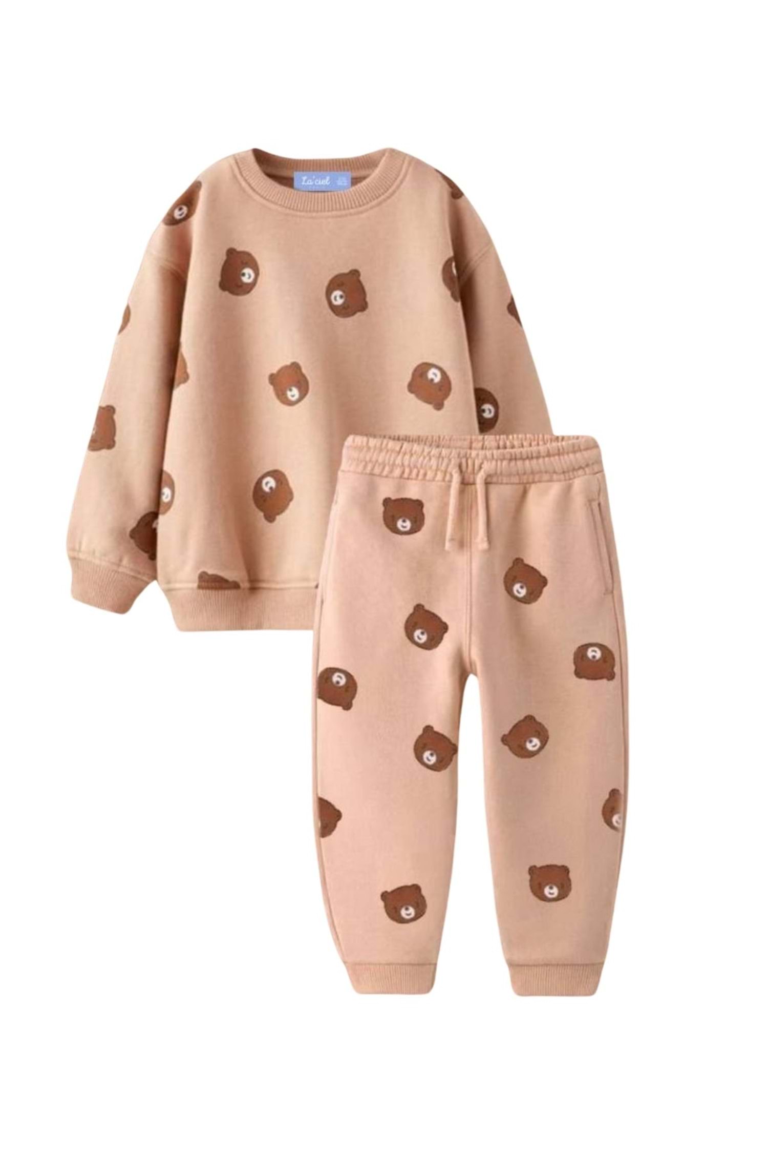 Minik Ayıcık Severler İçin Özel Tasarım: Önü Sırtı Ayıcık Baskılı Erkek Çocuk Eşofman Takımı