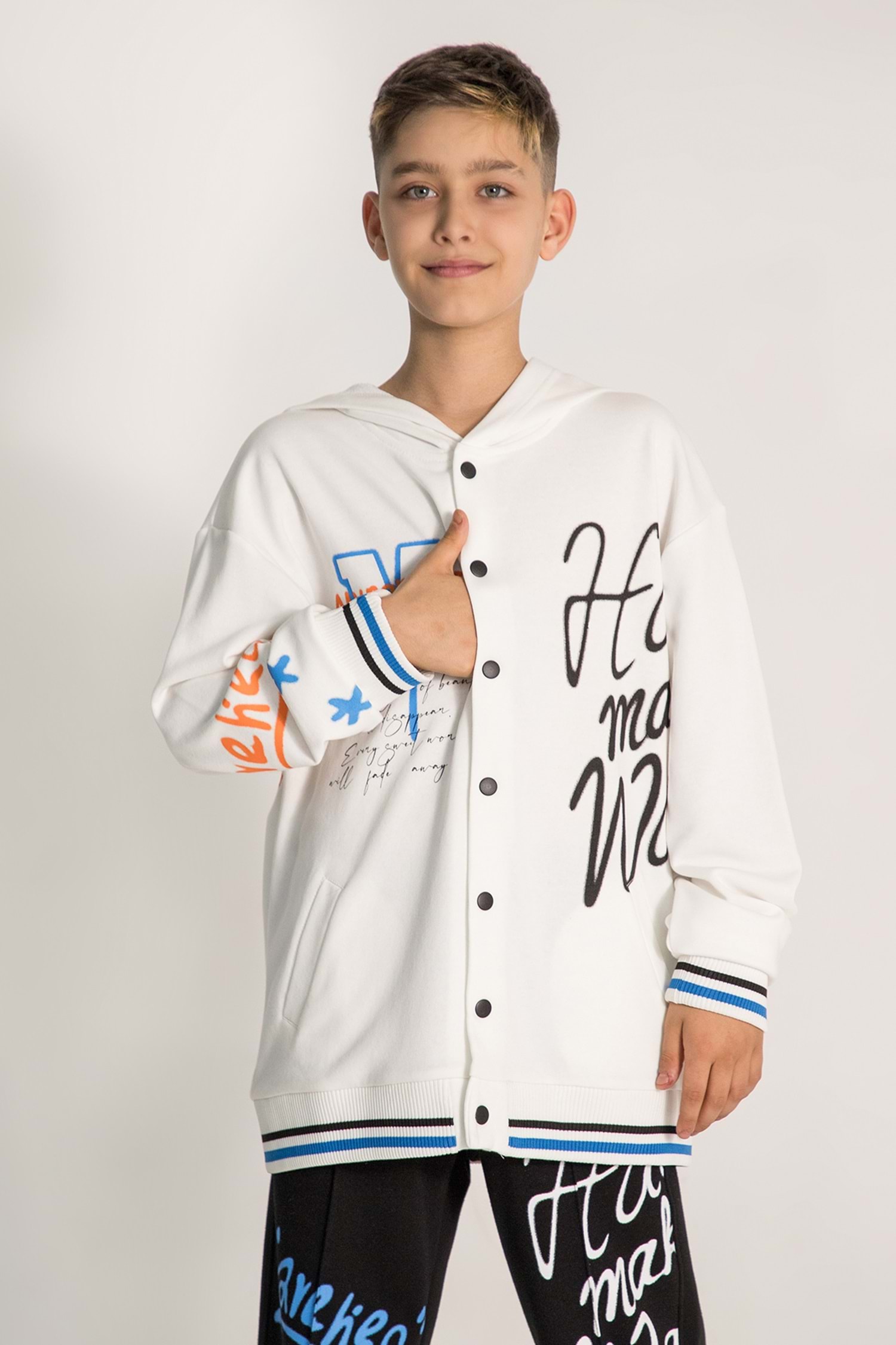 Önü Sırtı Baskılı Kapüşonlu Erkek Çocuk Hırkası Açıklaması