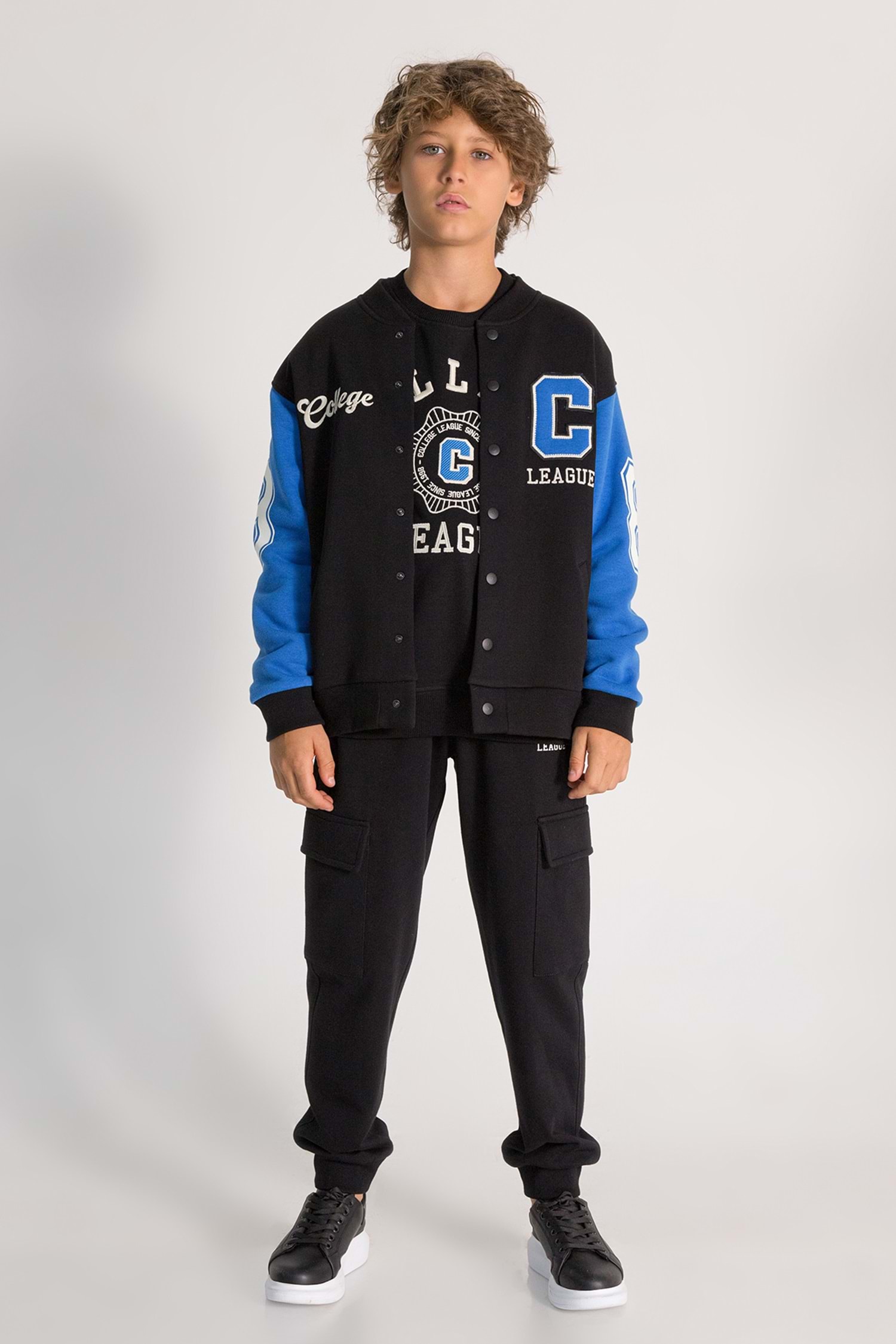 Önü, Sırtı ve Kolları Baskılı Çıtçıt Kapamalı Erkek Çocuk Kolej Hırkası: Miniklerin Tarzını Yansıtan Konforlu Bir Seçenek