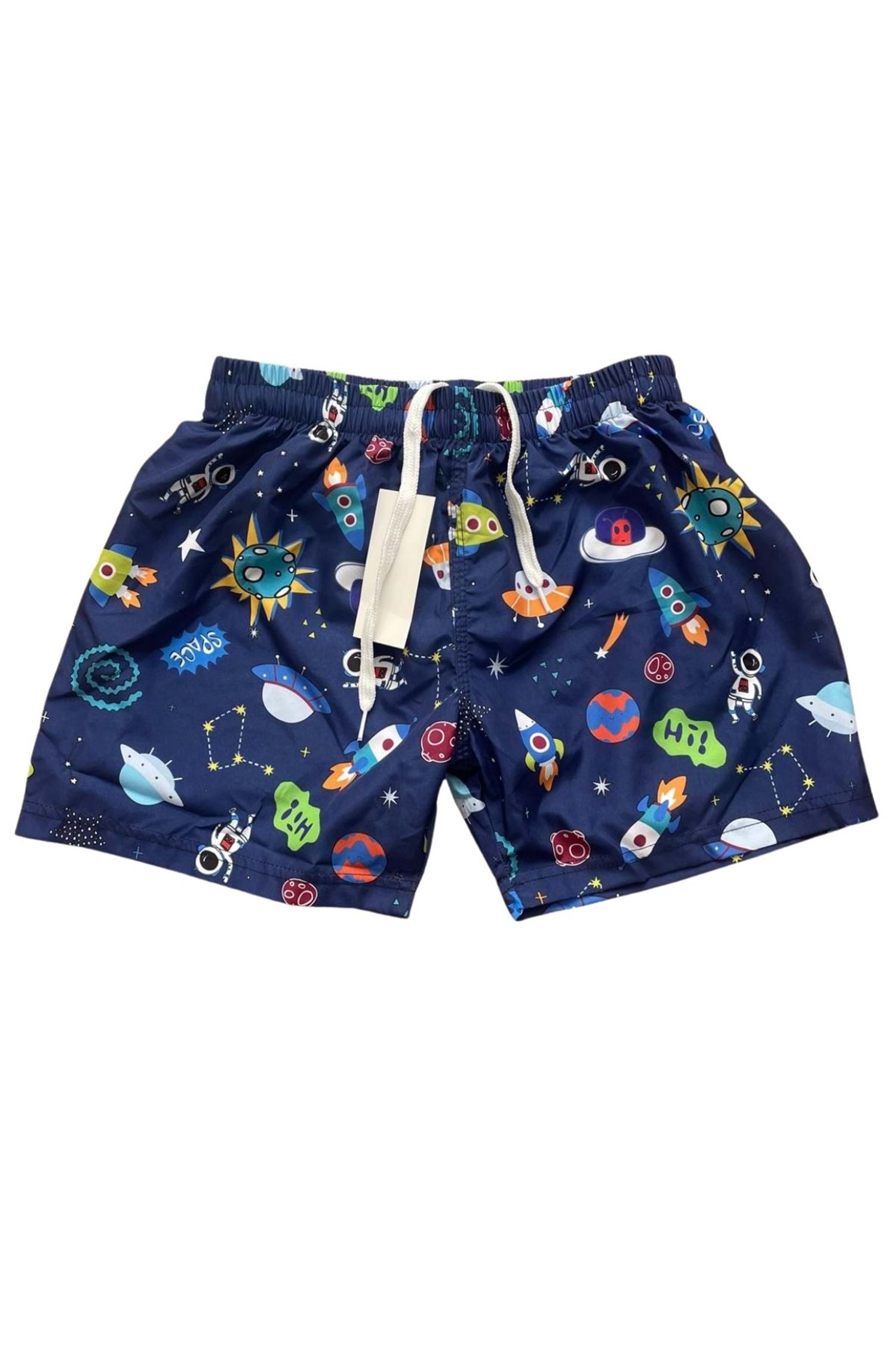 Sörf Tahtası ve Güneş Desenli Turkuaz Erkek Çocuk Deniz Şortu - Yeşil