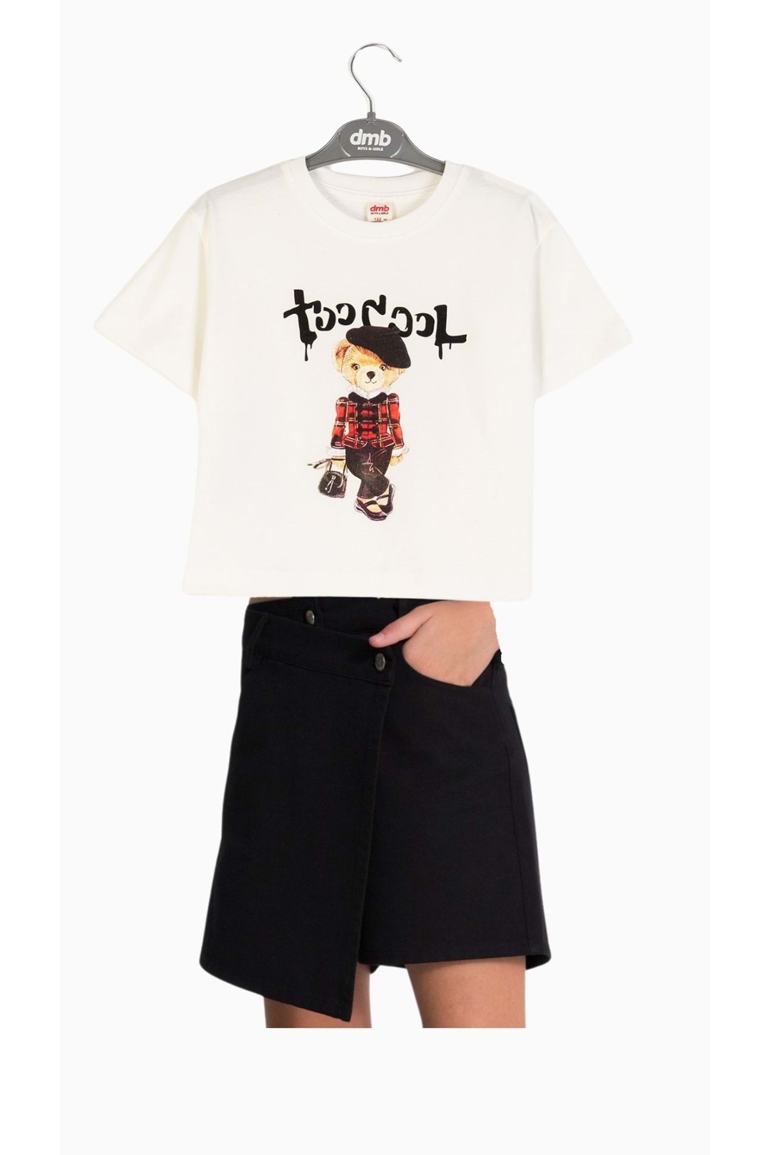 Bu sevimli ve pratik takım, minik kızların gardırobuna hem rahatlık hem de şıklık katacak! Ayıcık baskılı tişörtün neşeli atmosferi, kot şort eteğin rahatlığı ve önündeki yırtmaç detayının modernliği bir araya gelerek harika bir kombin oluşturuyor.