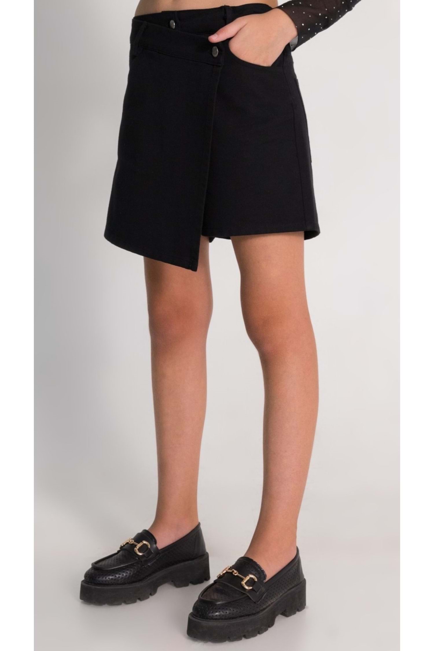 Kot Şort Etek: Hem şort rahatlığını hem de etek şıklığını bir arada sunar. Öndeki yırtmaç detayı, takıma modern bir dokunuş katar.