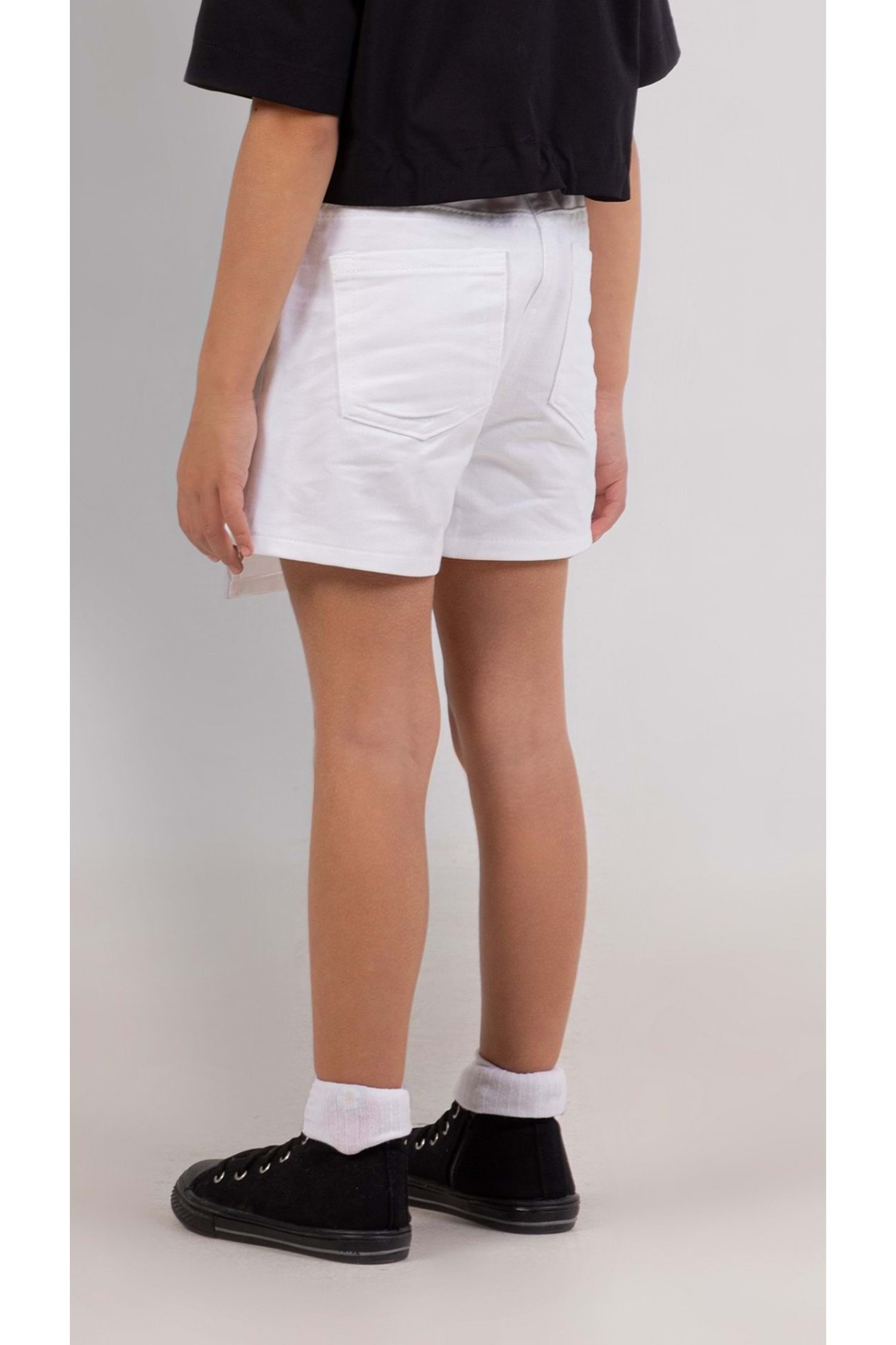 Günlük Kullanım: Tişörtü beyaz spor ayakkabılar ve çorapla kombinleyerek spor bir görünüm elde edebilirsiniz.