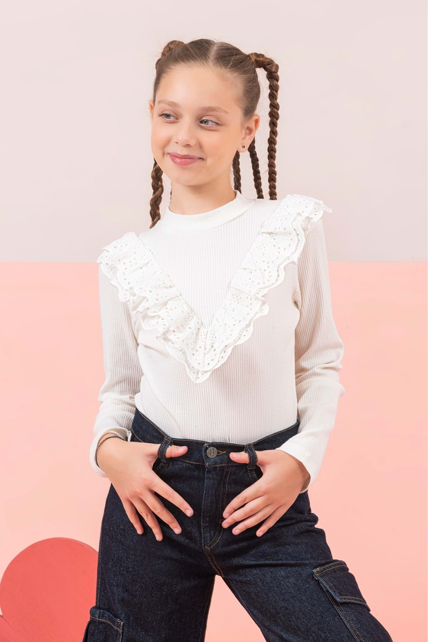 Şık ve zarif bir görünüm için Yakası Güpür Detaylı Yarım Balıkçı Yaka Kız Bluz ile tanışın!