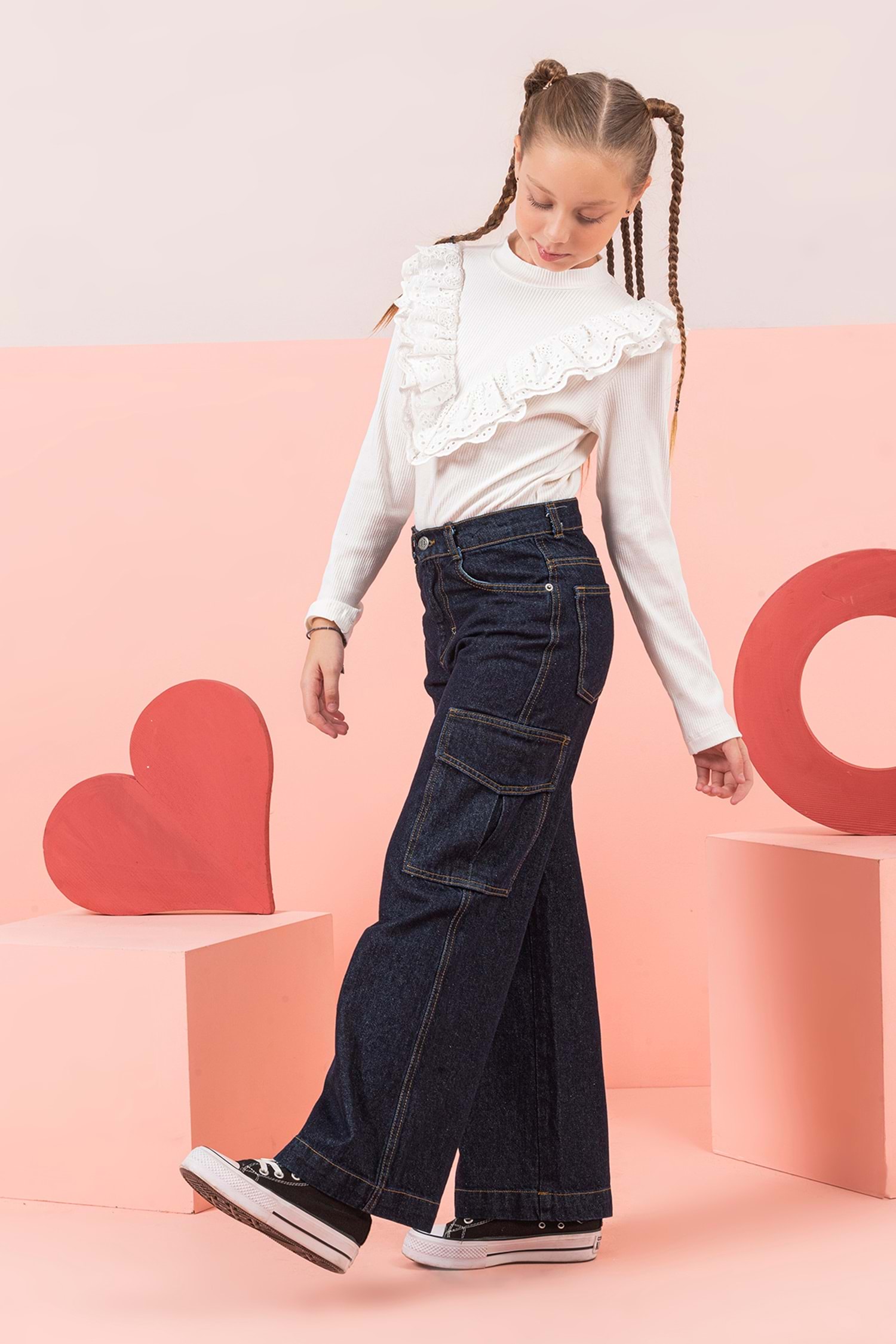 Yakası Güpür Detaylı Yarım Balıkçı Yaka Kız Bluz ile tarzınıza yeni bir soluk getirin!