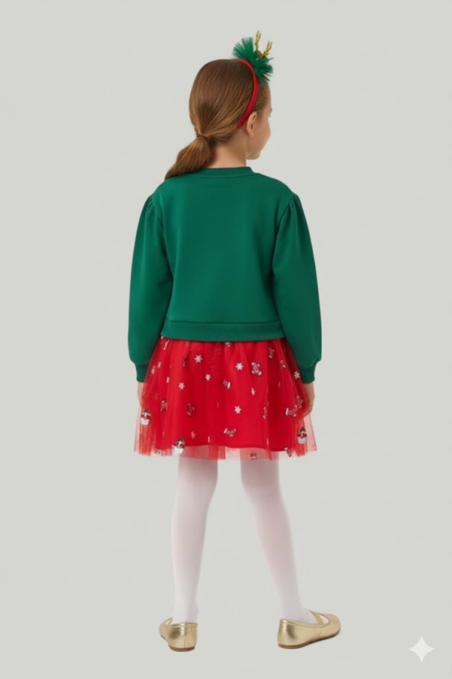 Bağlama Detaylı Mint Yeşili Kat Kat Müslin Uzun Kız Çocuk Elbise - Yeşil