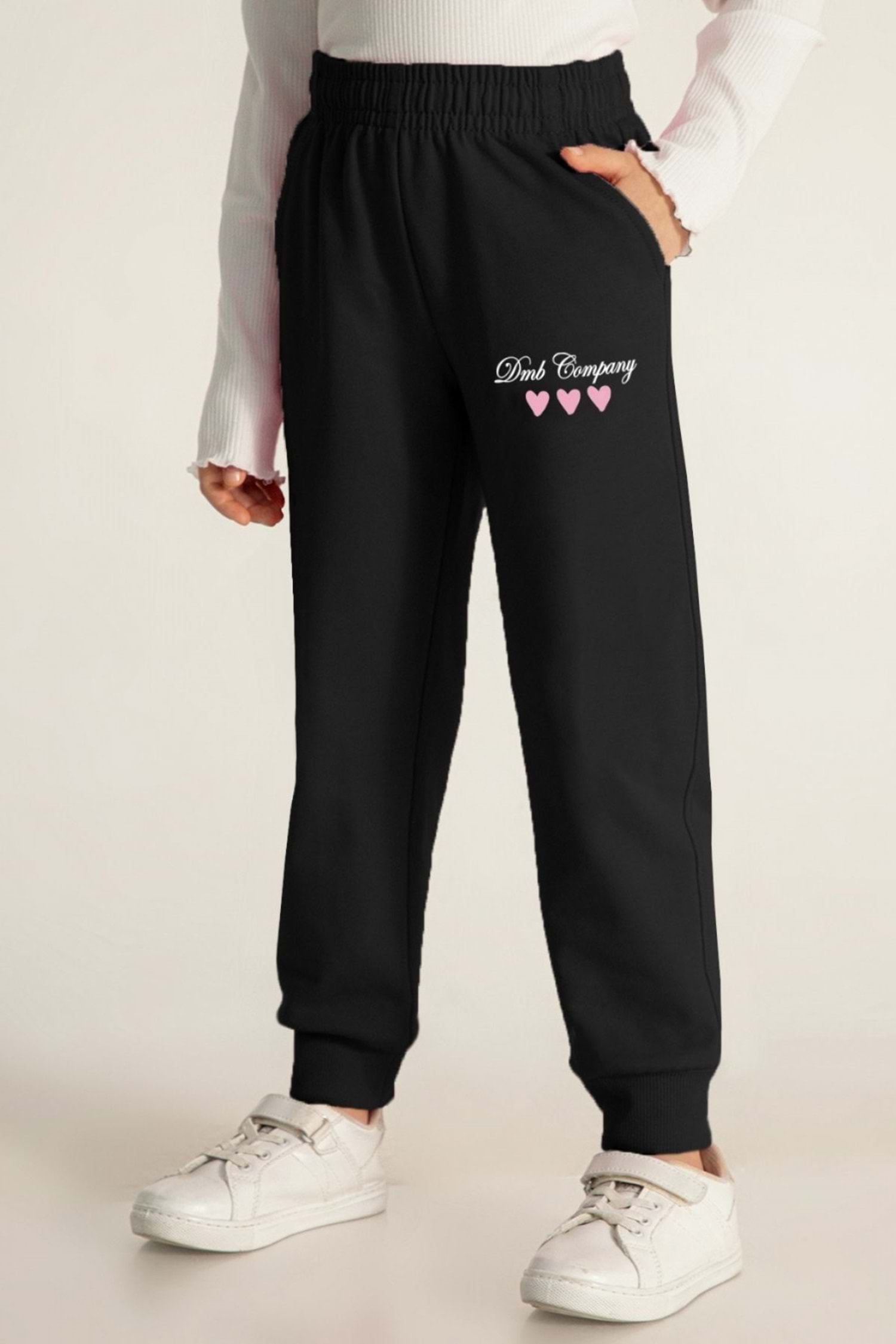 Cep Üstü Baskılı Beli Lastikli Paçaları Ribanalı Kız Çocuk Eşofman Altı
