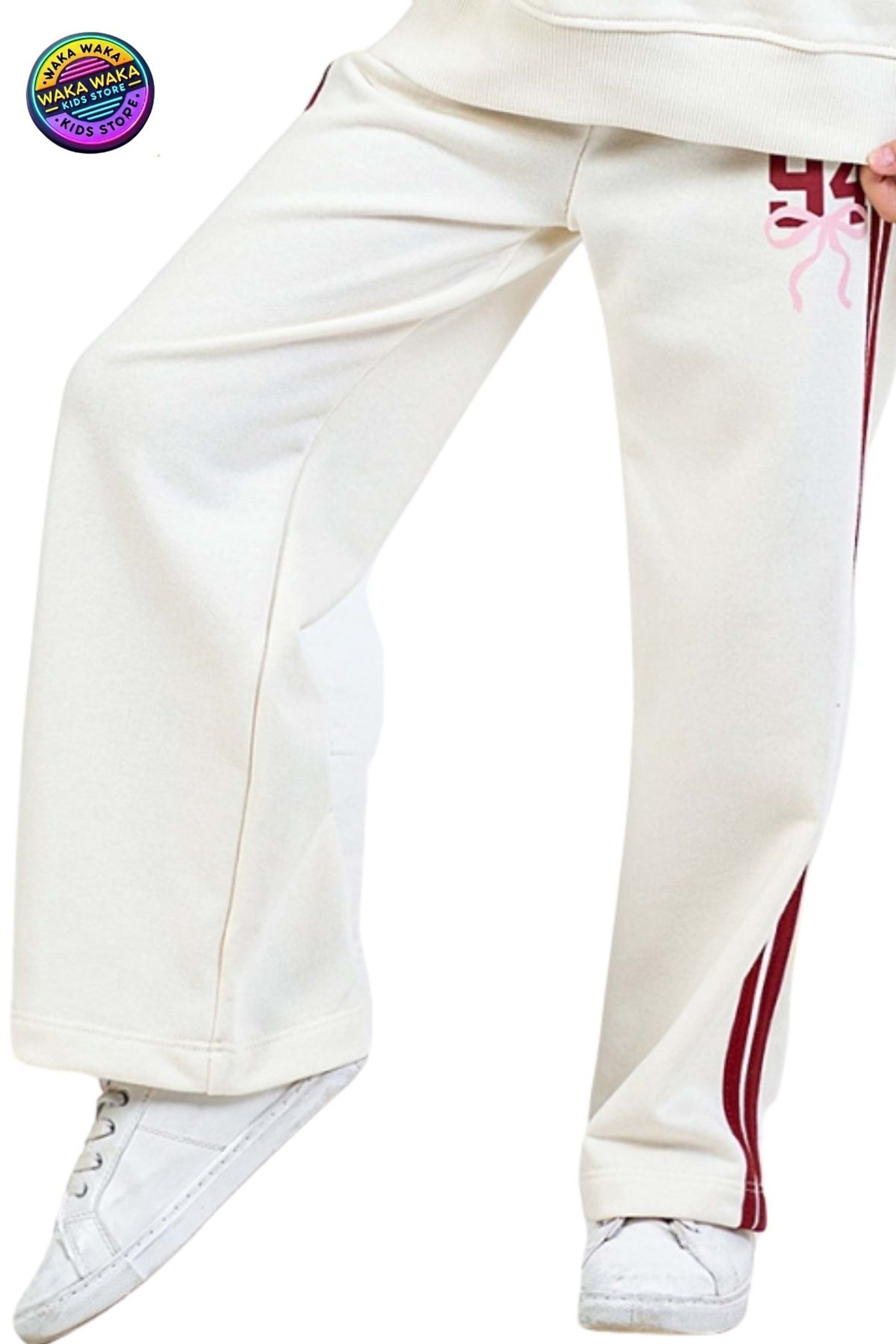 Cep Üstü Baskılı Beli Lastikli Paçaları Ribanalı Kız Çocuk Eşofman Alt
