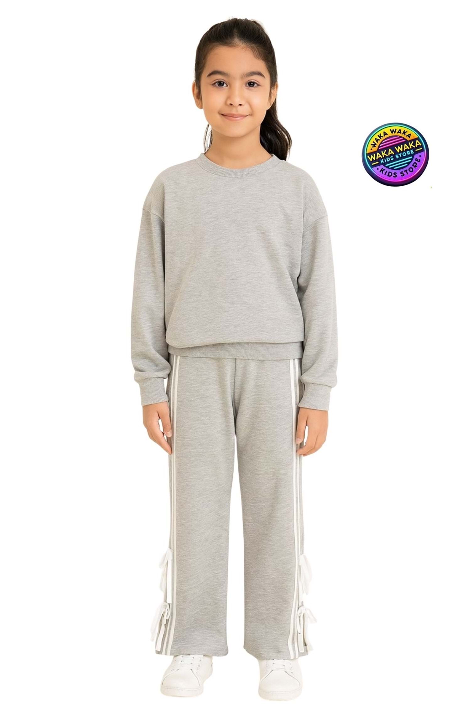 Kız Çocuk Çift Şeritli Eşofman Altı Rahat Kesim Spor Pantolon
