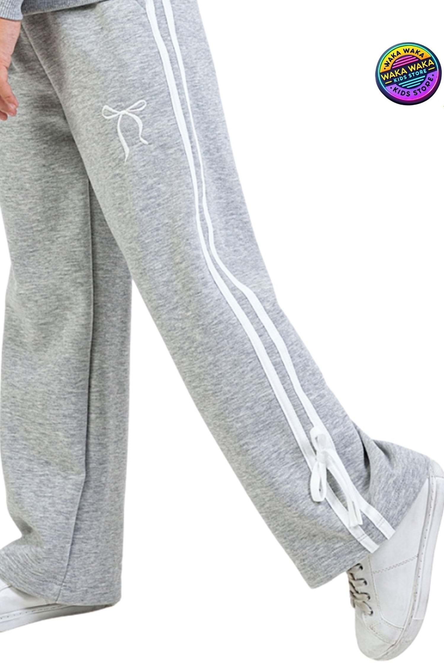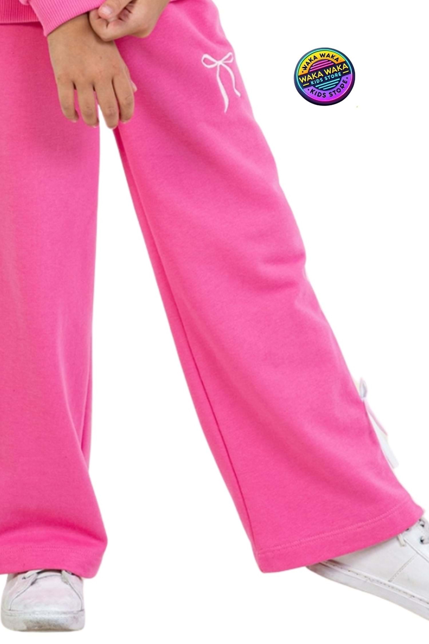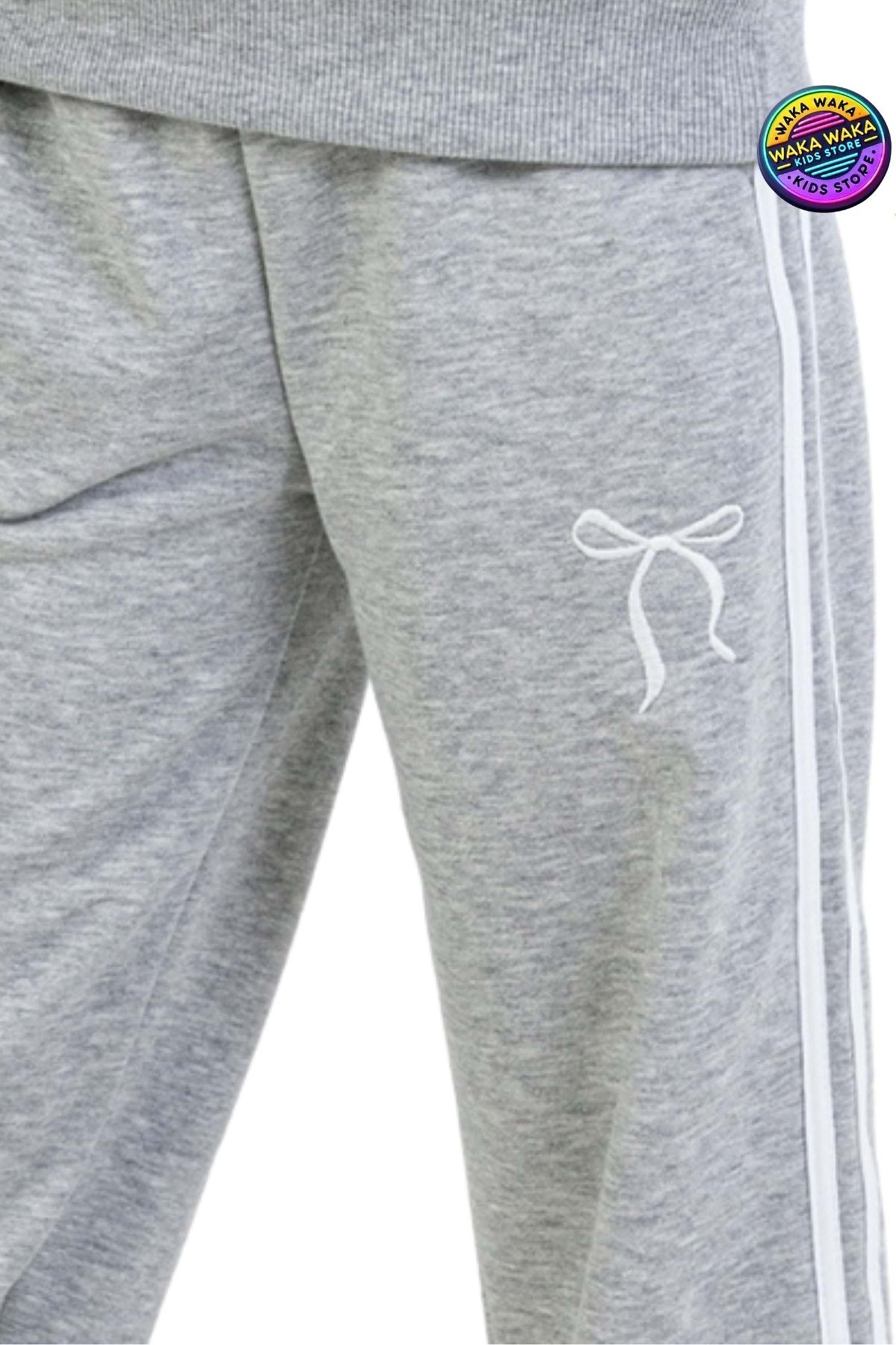 Cep Üstü Baskılı Beli Lastikli Paçaları Ribanalı Kız Çocuk Eşofman Alt