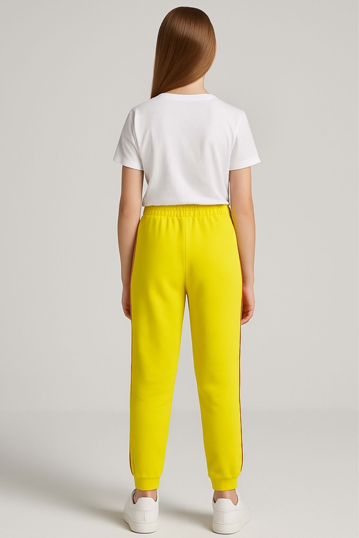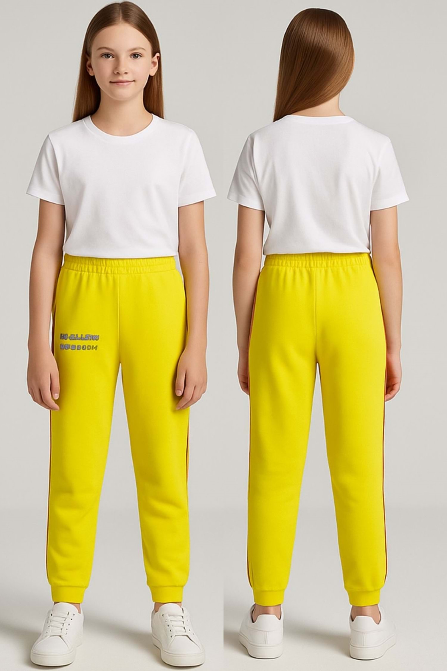 Cep Üstü Baskılı Beli Lastikli Paçaları Ribanalı Kız Çocuk Eşofman Alt