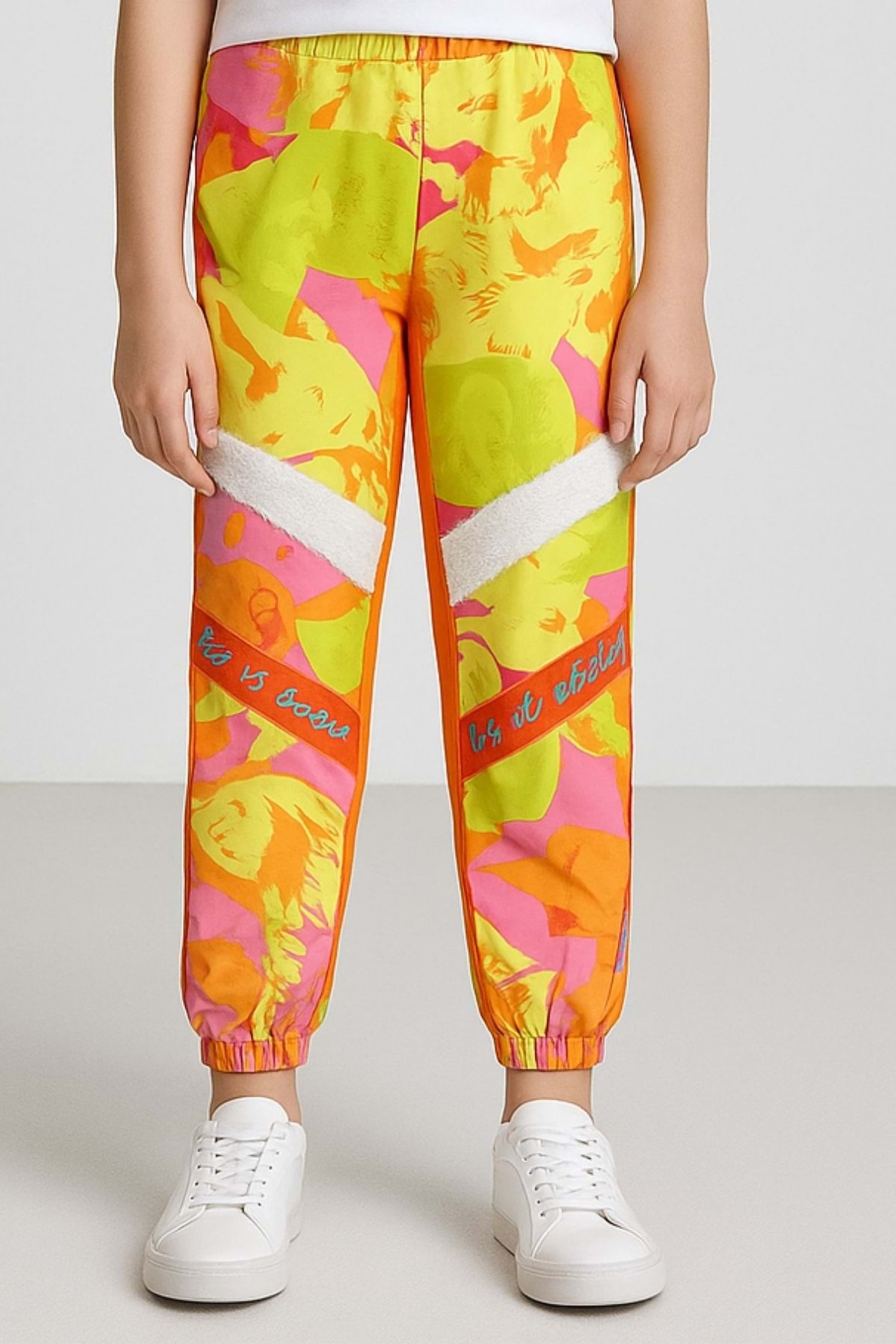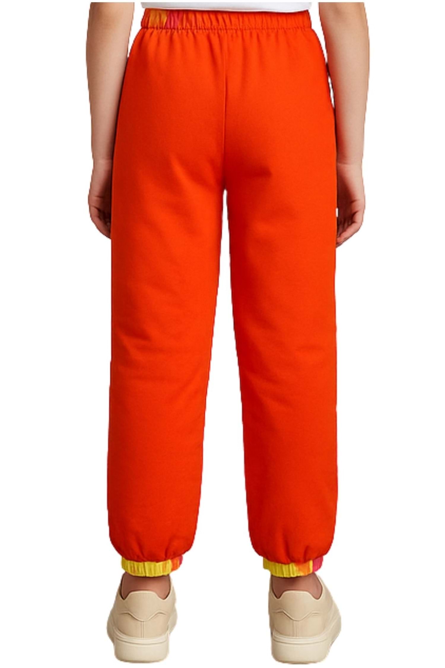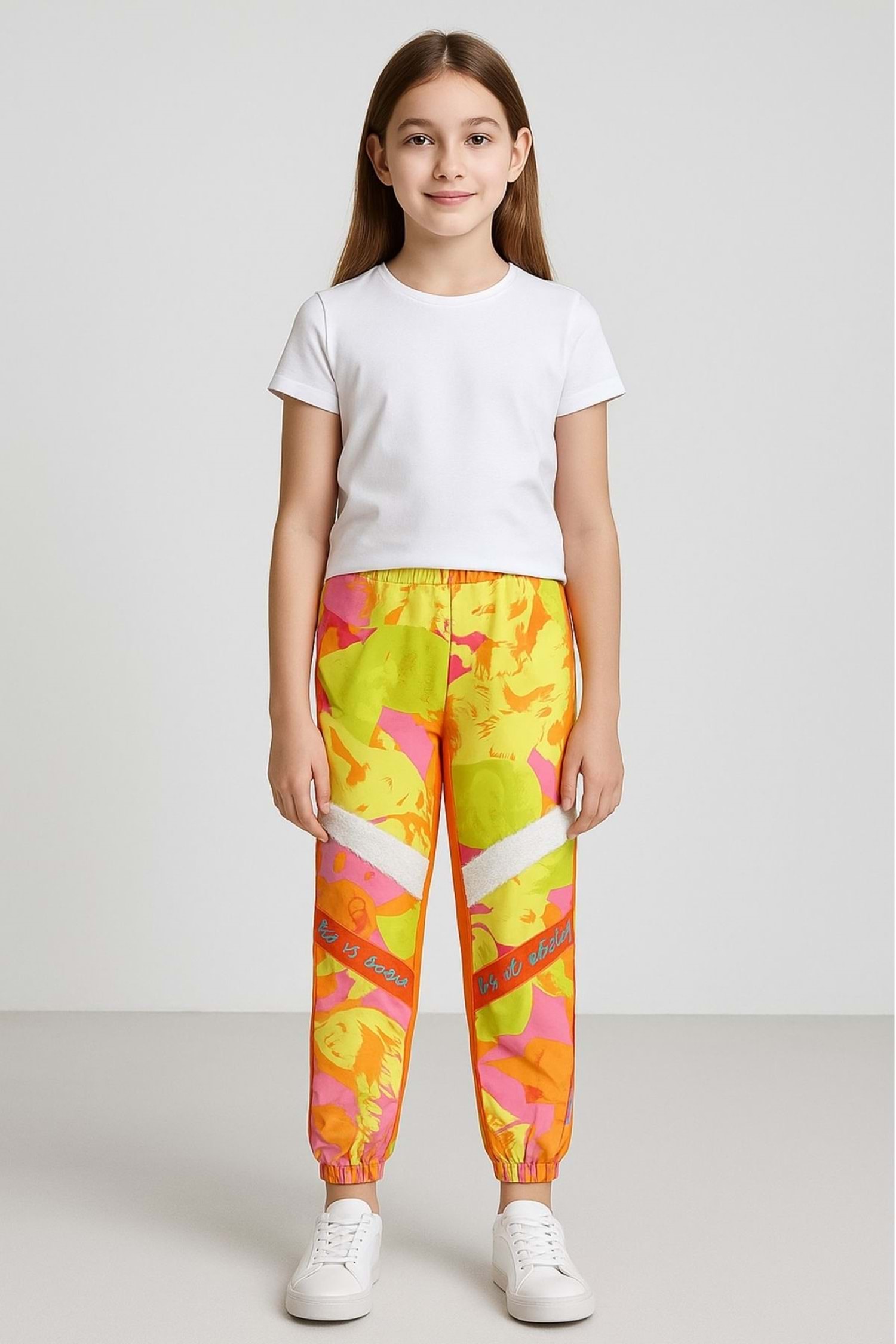 Cep Üstü Baskılı Beli Lastikli Paçaları Ribanalı Kız Çocuk Eşofman Alt