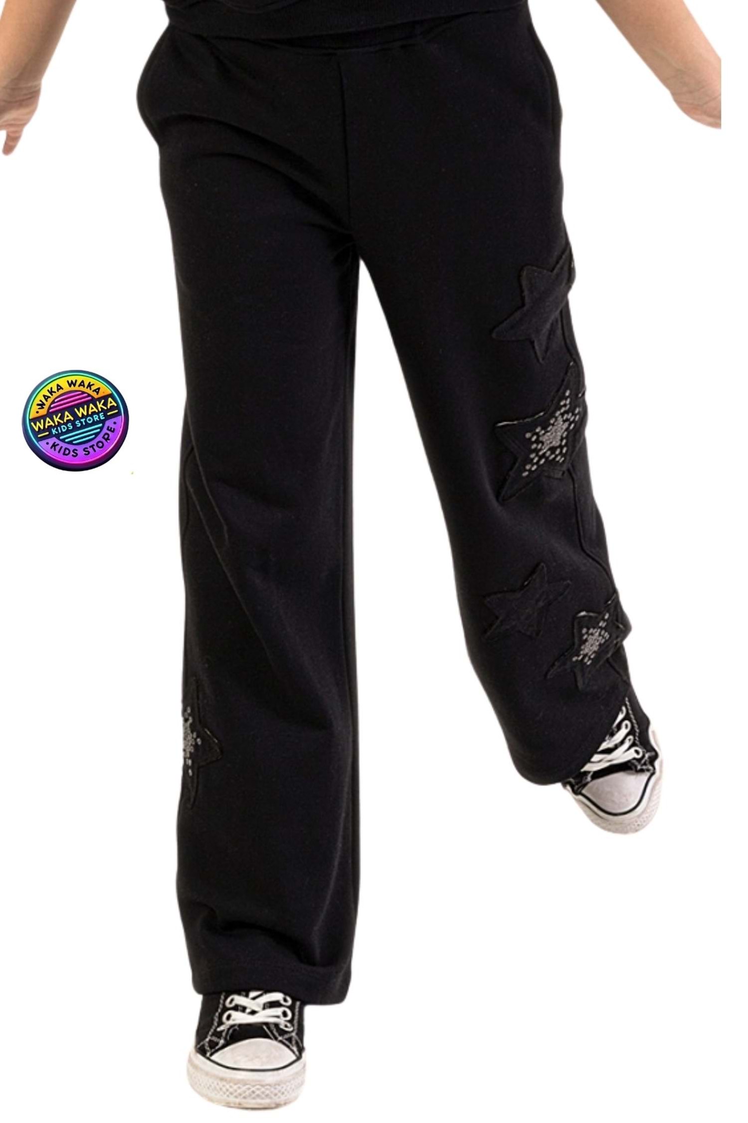 Cep Üstü Baskılı Beli Lastikli Paçaları Ribanalı Kız Çocuk Eşofman Alt