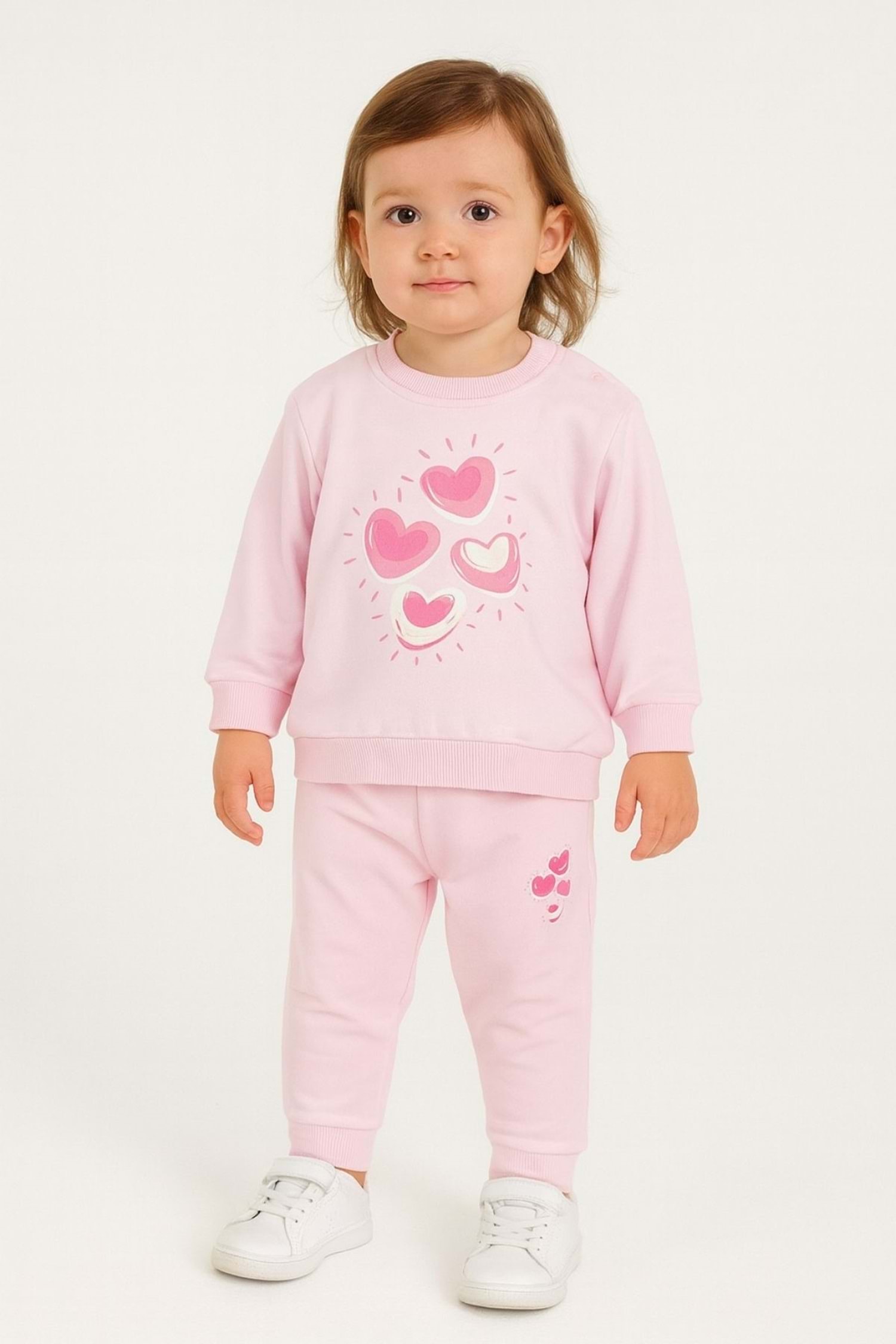 Sevimli kalp baskılı tasarımıyla öne çıkan kız çocuk eşofman takımı, fuşya ve pembe renk seçenekleriyle miniklerin enerjisine enerji katıyor. Yumuşak ve esnek kumaşı sayesinde gün boyu rahatlık sağlarken, nefes alabilen yapısı terlemeyi önler. Hem evde hem dışarıda kullanım için ideal olan bu takım; okul, oyun ve günlük kombinlerde şık ve konforlu bir seçenek sunar.Sevimliliği ve rahatlığı bir arada sunan fuşya & pembe kız çocuk eşofman takımıyla minikler hem şık hem de konforlu olacak! Kalp baskılı üst tasarımı ve esnek bel lastikli altıyla gün boyu özgürce hareket edebilirler. Yumuşacık kumaşıyla cilt dostu olan bu takım, kolay yıkanabilir ve uzun süre formunu korur. Çocuğunuzun günlük kombinlerinde en çok tercih edeceğiniz parça olacak!Öne Çıkan Özellikler: