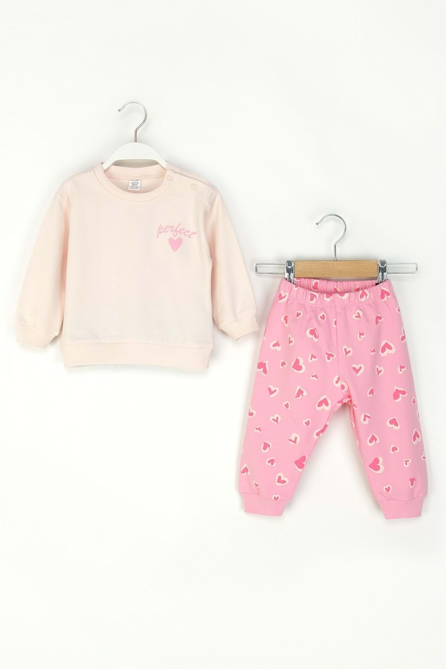 Kız Çocuk Los Angeles 10 Baskılı Pembe Sweatshirt & Eşofman Altı Takımı