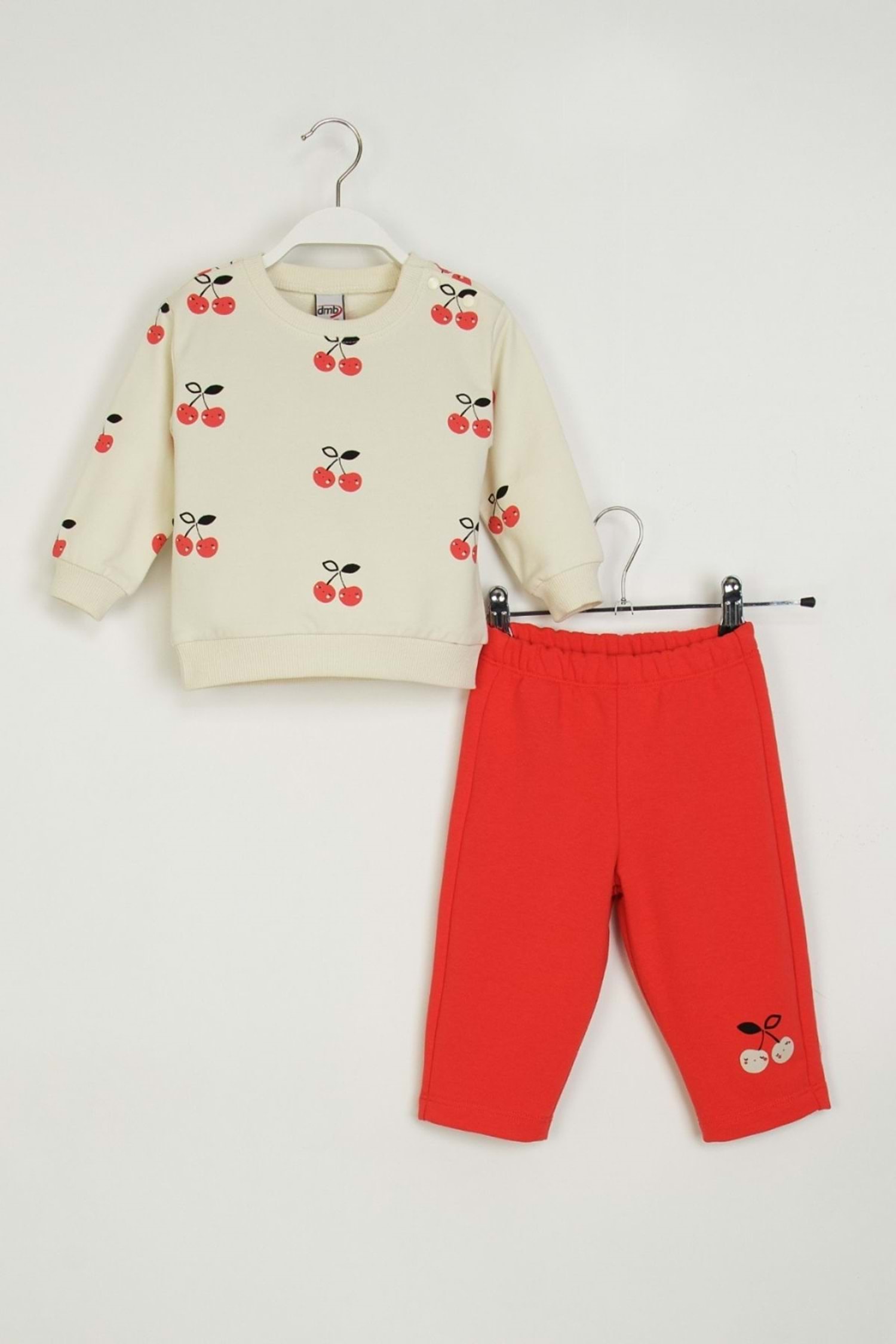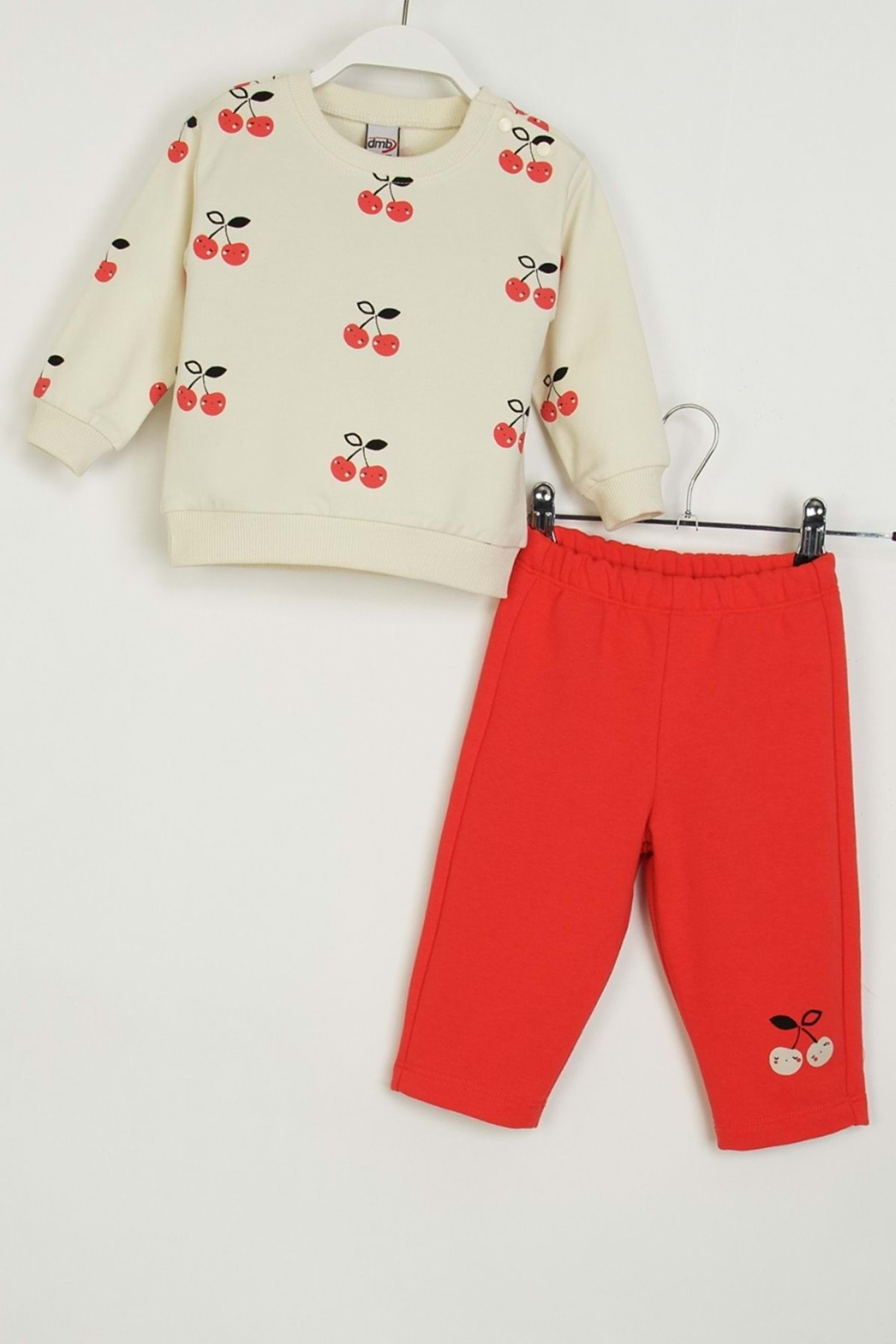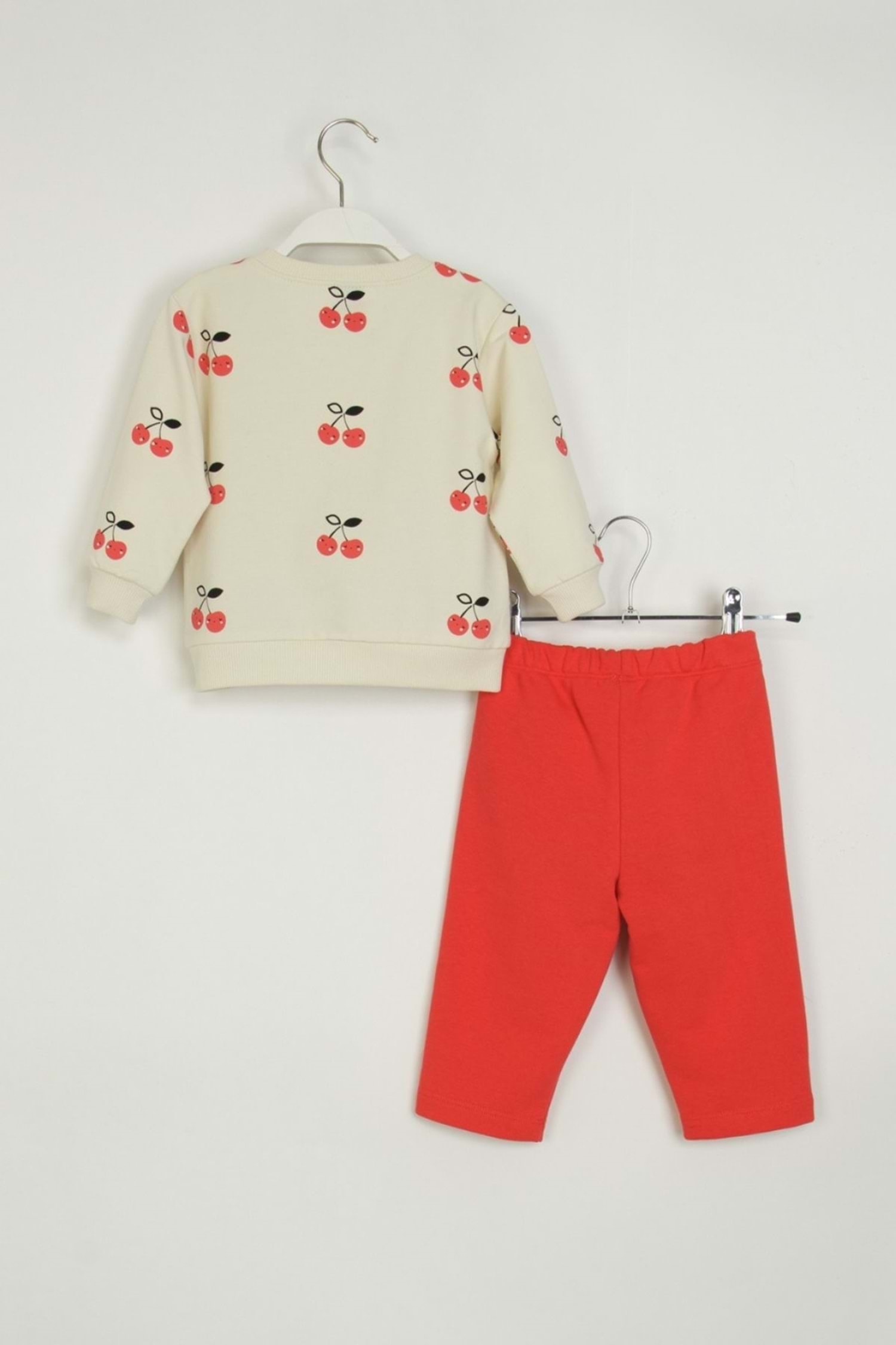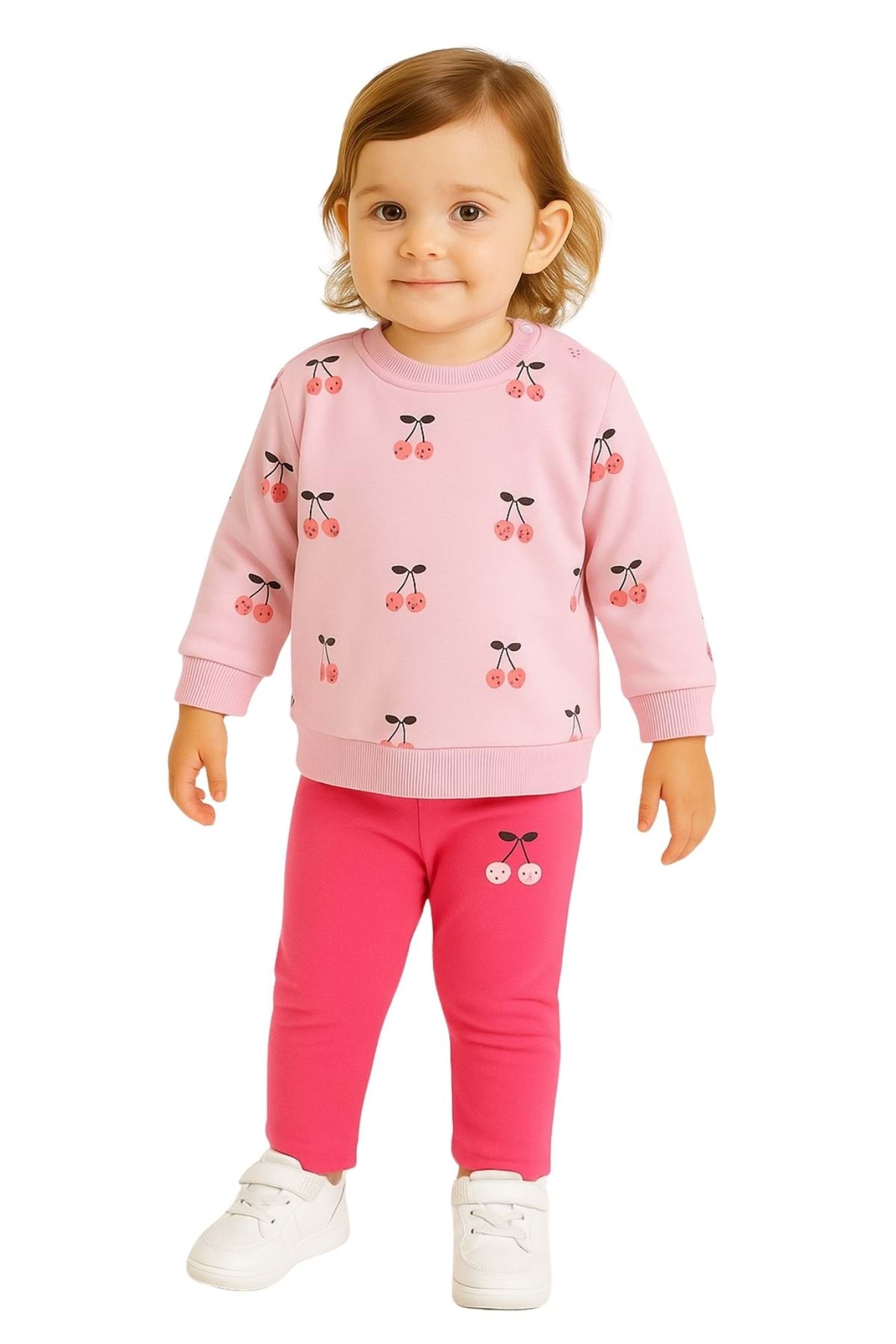 Yuvarlak yaka ve uzun kollu üst, kiraz desenleriyle sevimli bir görünüm kazandırırken, lastikli bel yapısına sahip alt parça çocuğunuzun rahat giyip çıkarmasına yardımcı olur. Nefes alabilen kumaşı sayesinde anaokulu, park ve günlük kullanım için idealdir.