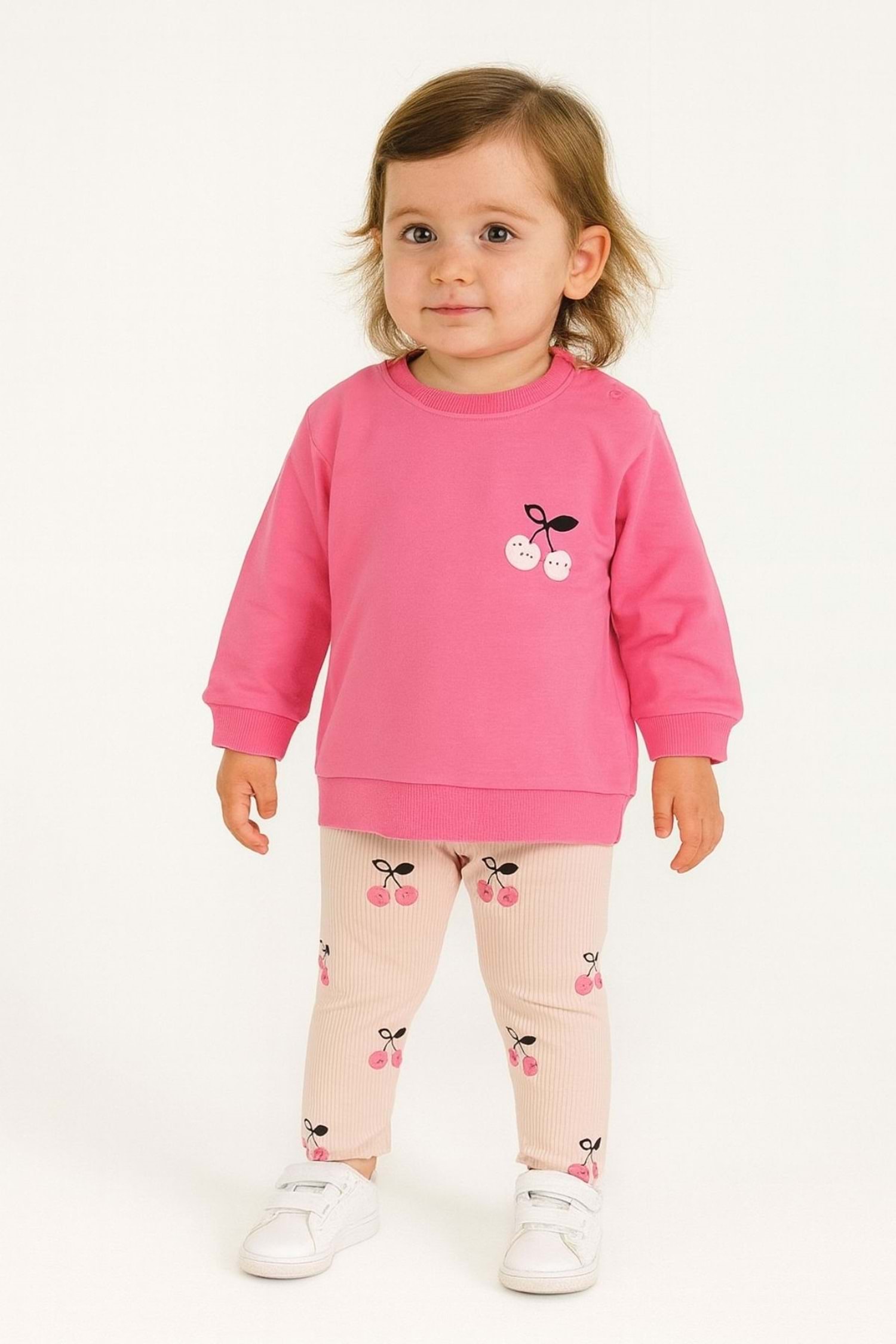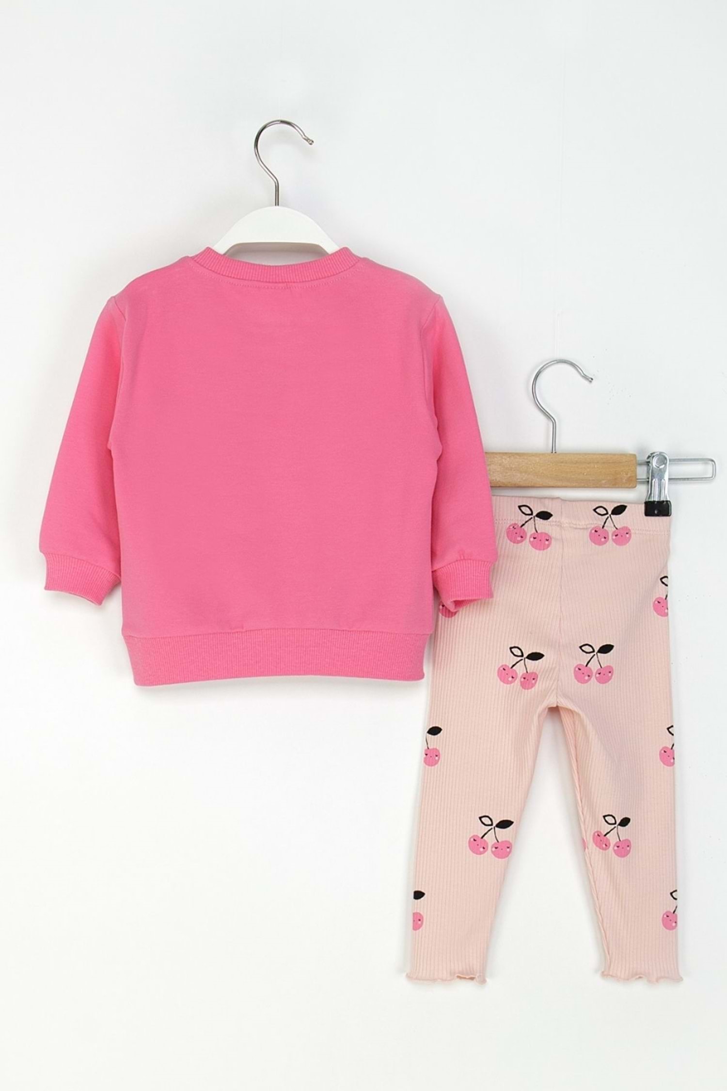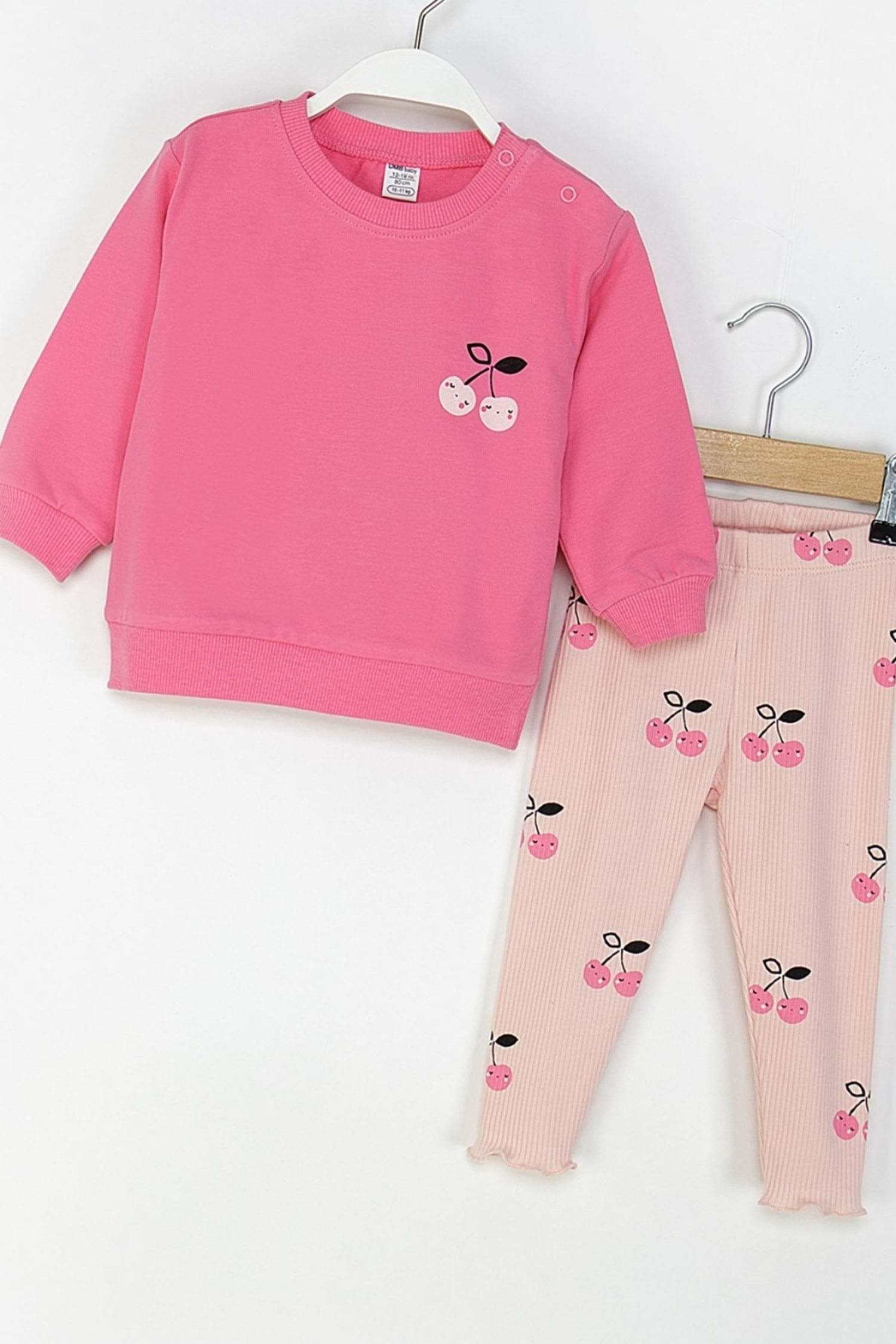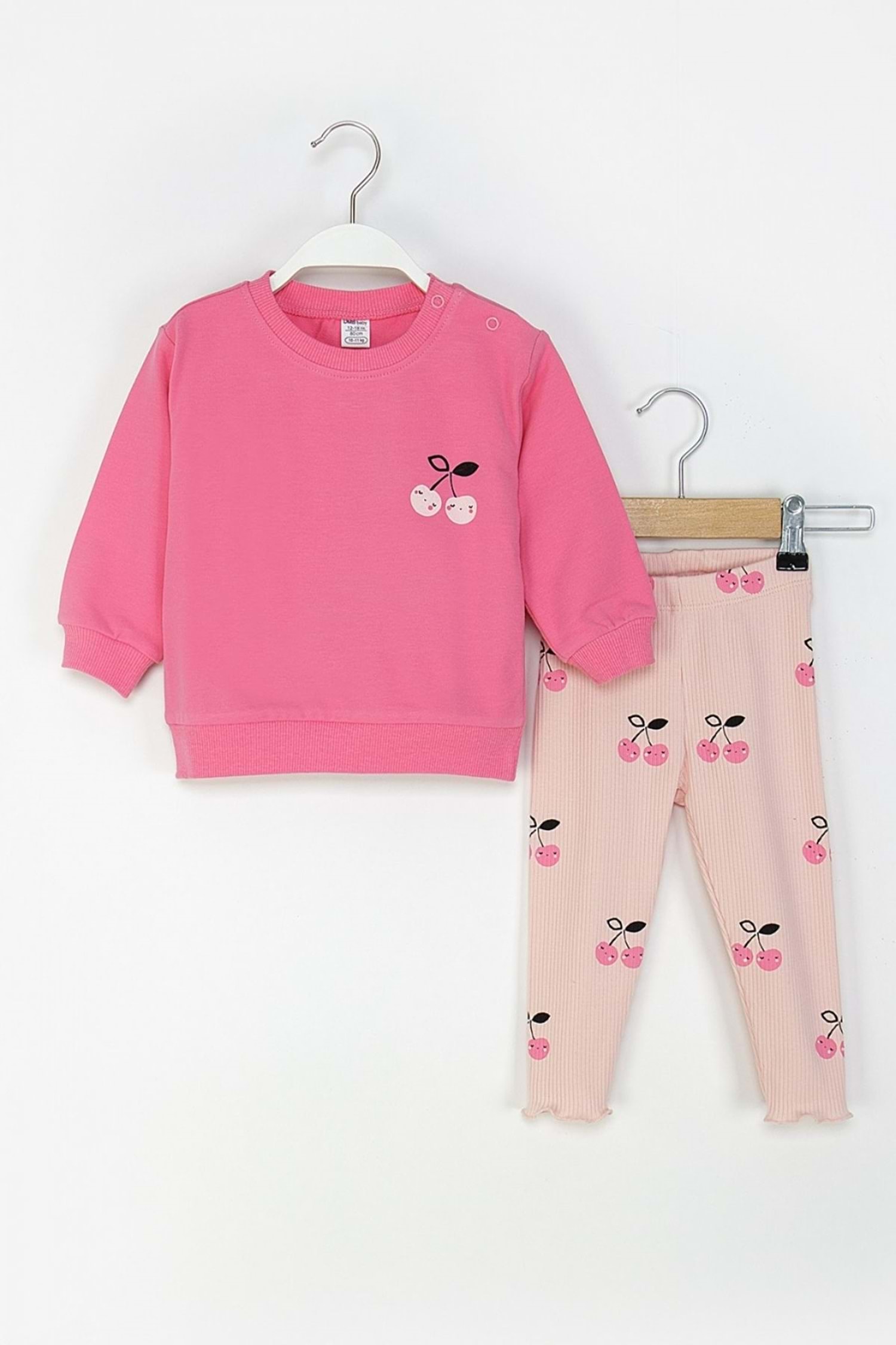 çocuk kombin setiEnerjisiyle miniklere neşe katacak pembe & kırmızı kiraz desenli kız çocuk eşofman takımı, hem rahat kalıbı hem de sevimli tasarımıyla çocuğunuza gün boyu keyifli bir kullanım sağlar. Esnek bel yapısı sayesinde hareket özgürlüğü sunar, yumuşacık kumaşı ise cilt dostudur. Kolay temizlenir ve uzun süre formunu korur. Çocuğunuzun en sevdiği günlük kombinlerinden biri olacak!