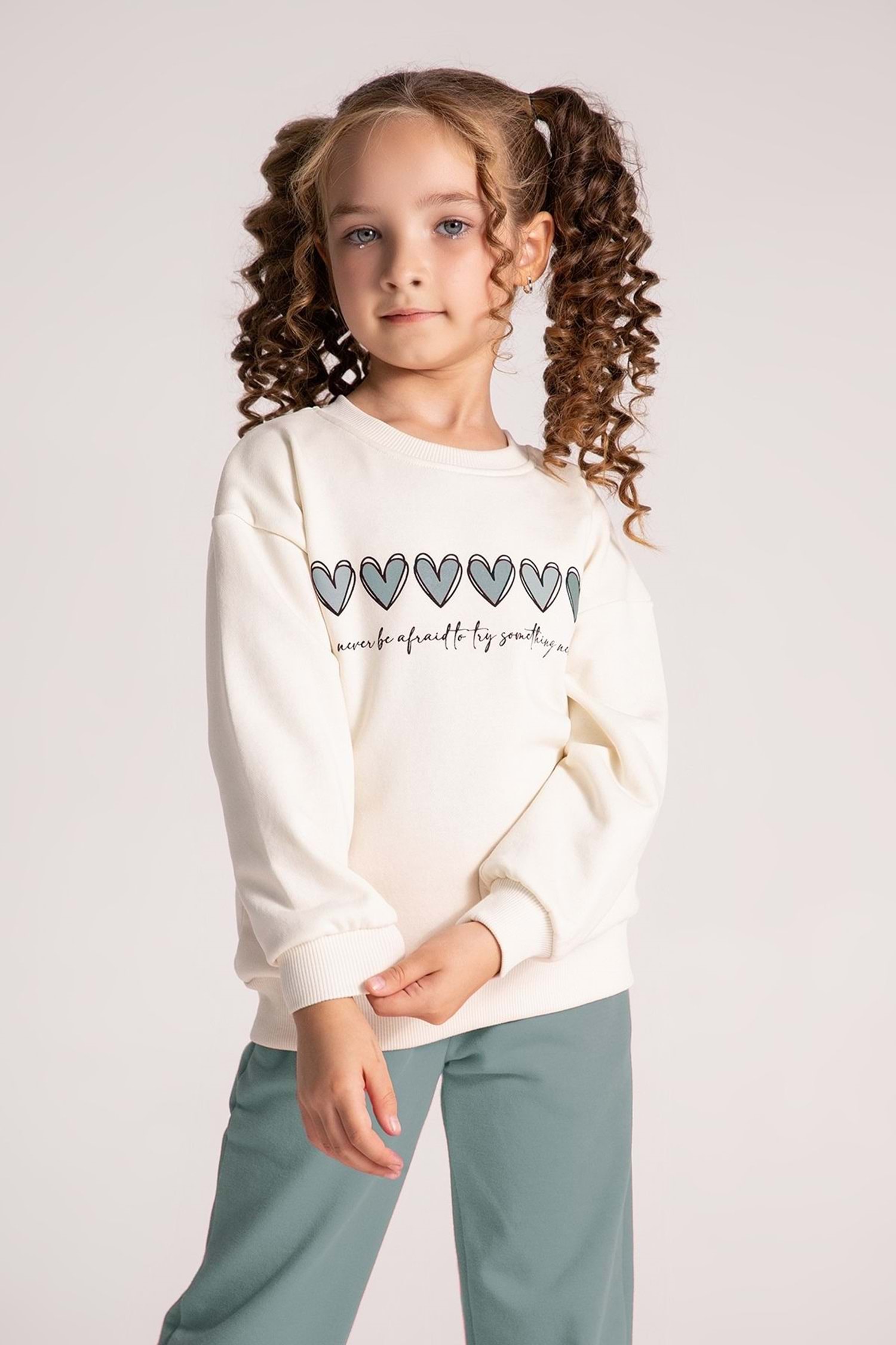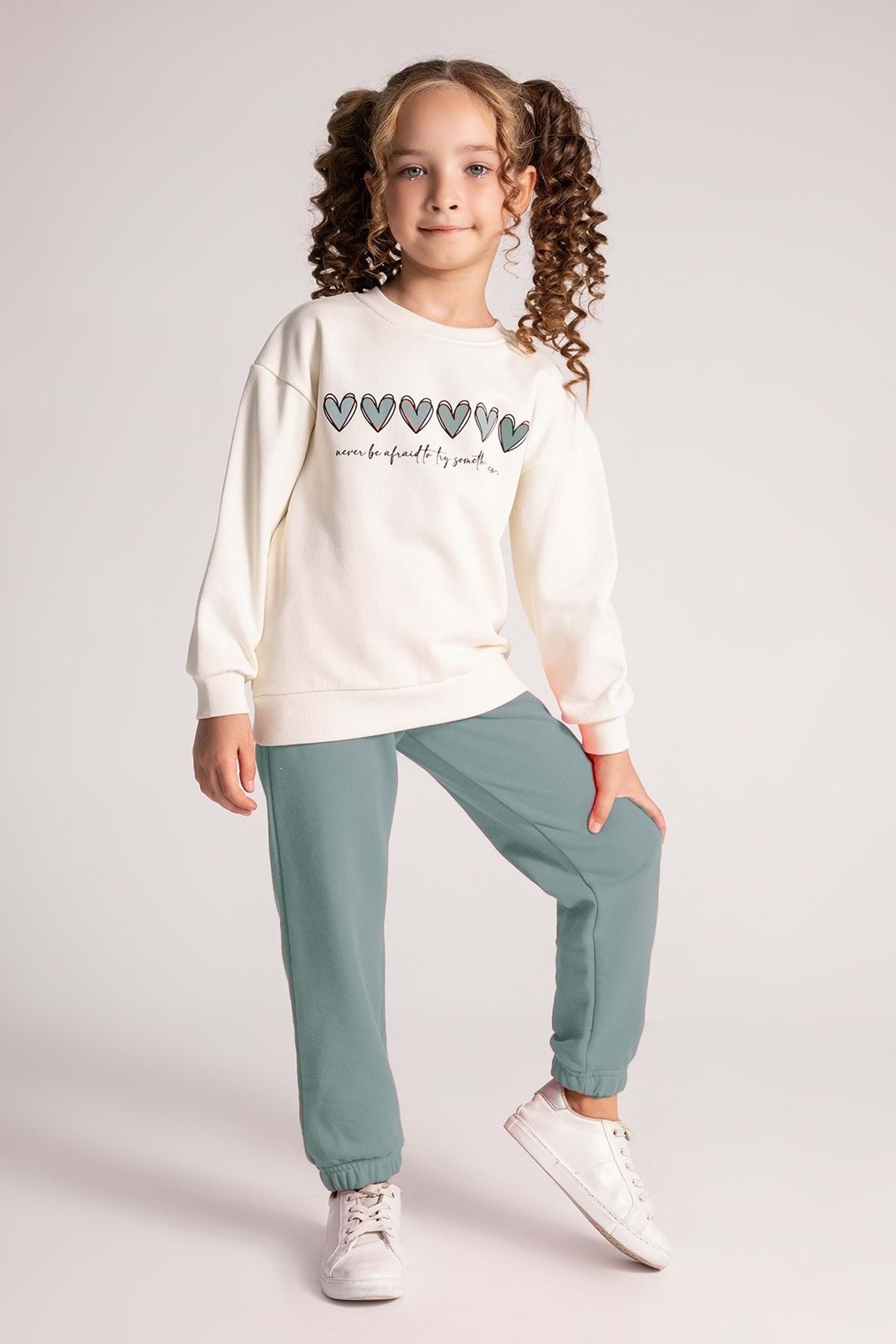 Önü Kalp Baskılı Bisiklet Yaka Paçaları Lastikli Kız Çocuk Eşofman Takımı Açıklaması