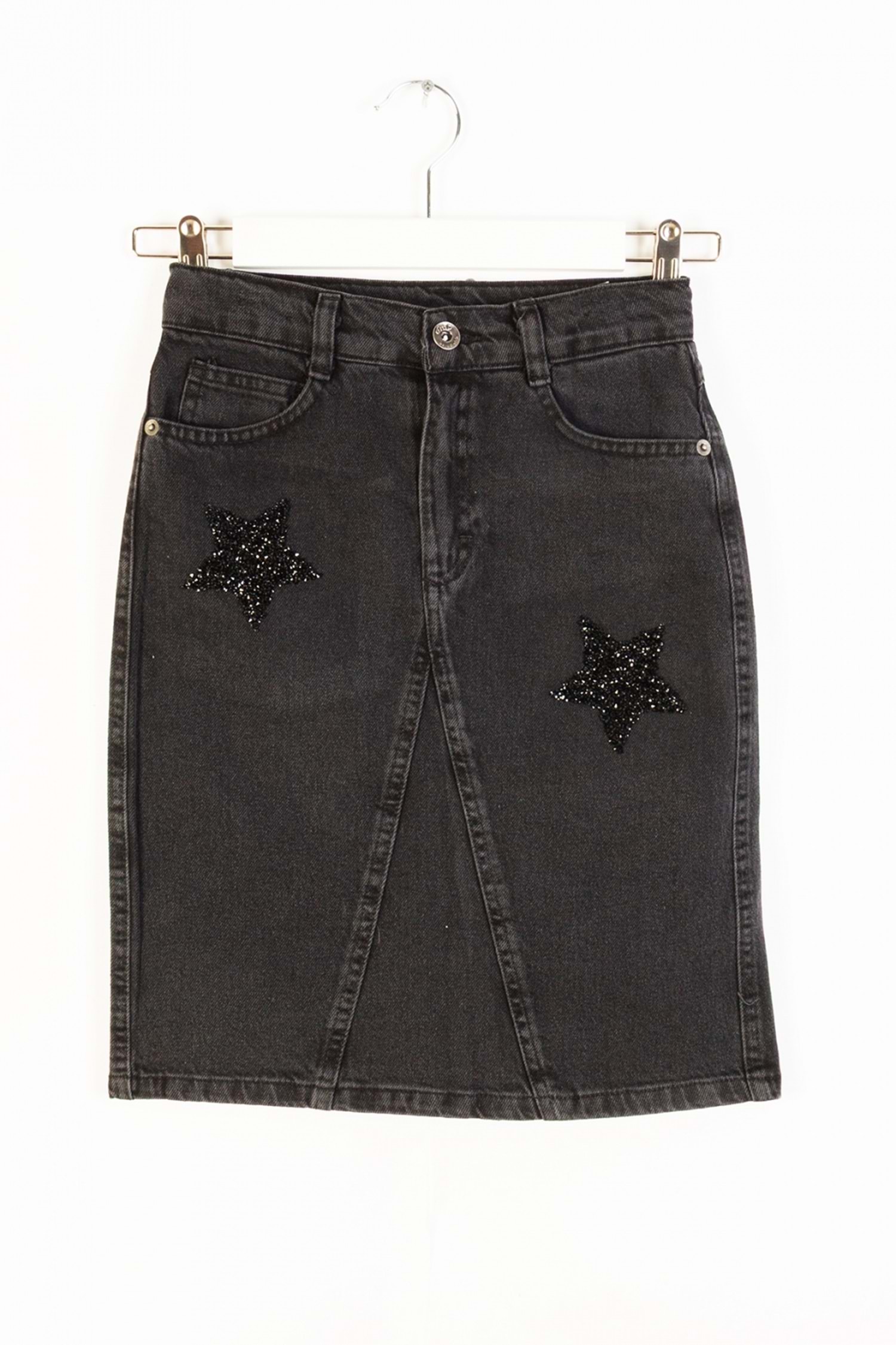 Kapak Cepli Önden Yırtmaçlı Kemer Detaylı Kız Çocuk Kot Şort Etek
