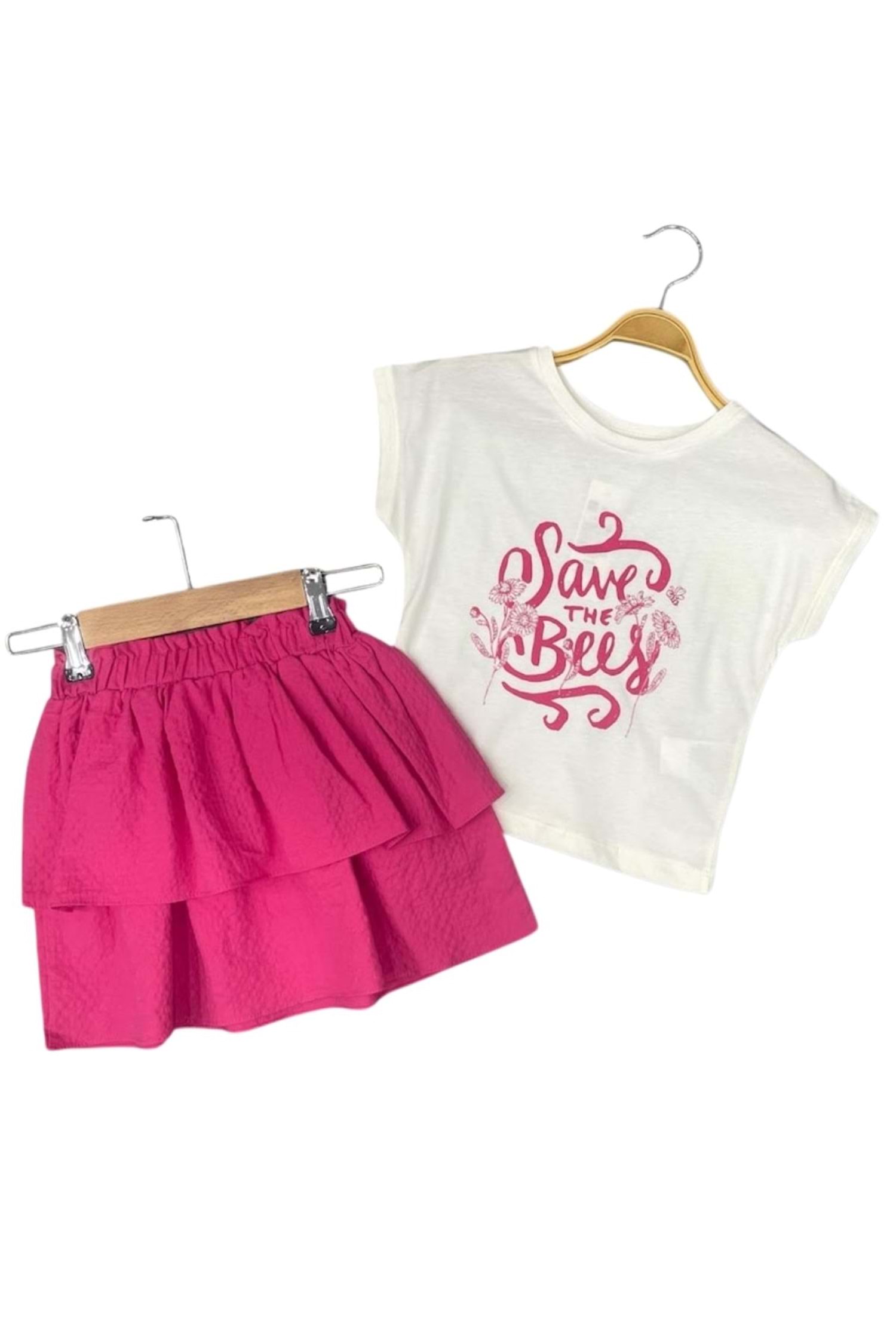 Miniklerin hem çevre bilincini yansıtan hem de şık görünmesini sağlayan, Waka Waka Kids Store'da bulabileceğiniz bu "Save The Bees" baskılı beyaz tişört ve kat kat pembe etekten oluşan kız çocuk takım ile tanışın! Trend beyaz tişört üzerindeki sevimli arı ve "Save The Bees" temalı baskısı ile çocuğunuzun günlük kombinlerine anlamlı bir dokunuş katarken, canlı pembe kat kat etek hareketli ve eğlenceli bir görünüm sunar. Yumuşak ve nefes alabilen pamuklu kumaşı sayesinde gün boyu konforlu bir kullanım sağlar. Kısa kollu tişört ve lastikli belli kat kat etek sayesinde kolayca giydirilip çıkarılabilir. İster doğa gezintisinde, ister özel bir günde, bu anlamlı ve rahat takım miniklerin favorisi olacak.