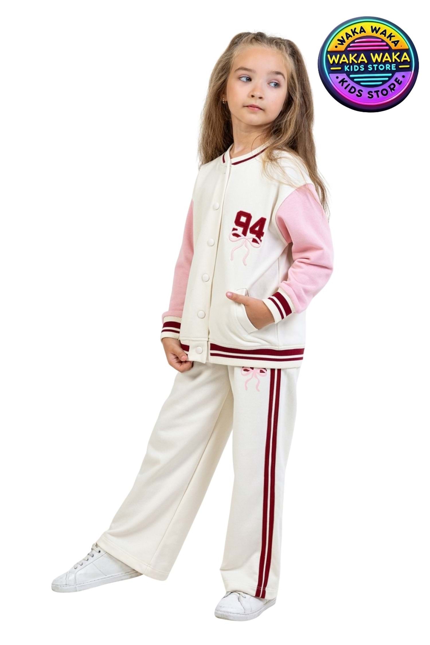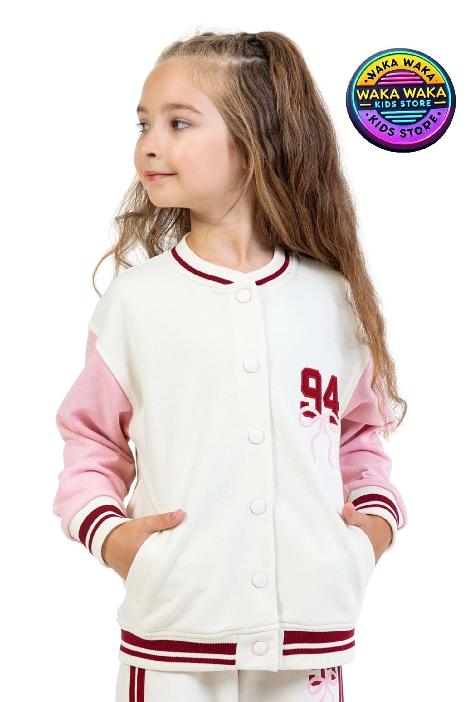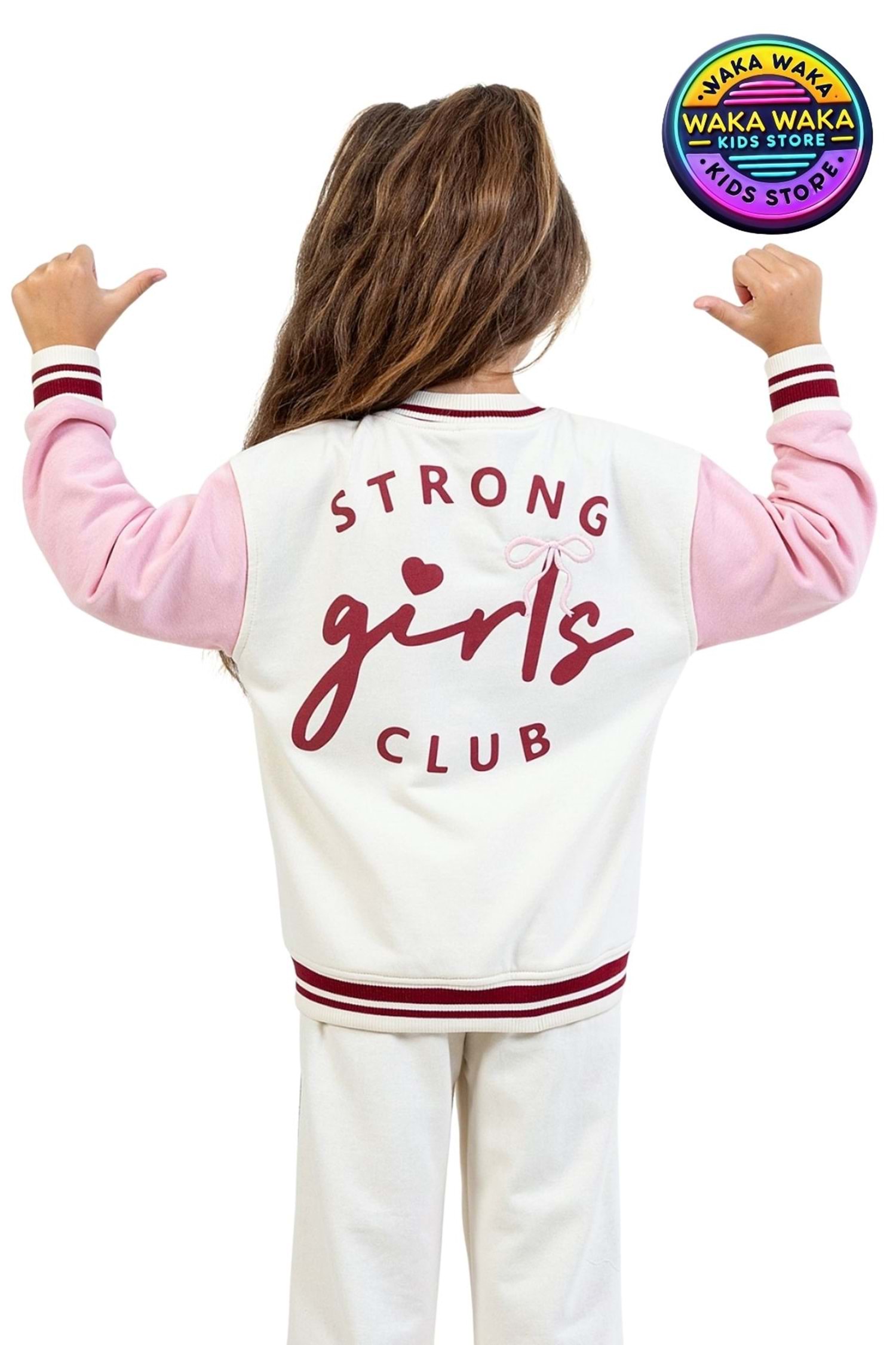 Küçük moda ikonları için özel olarak tasarlanan Waka Waka Kids Strong Girls Club Kolej Ceket, konfor ve tarzı bir araya getiriyor.