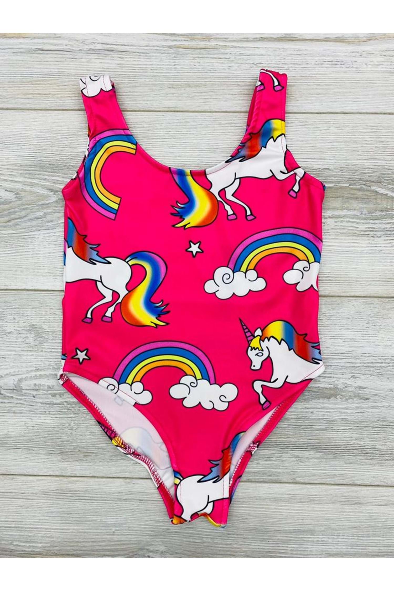 Balina ve Çiçek Desenli Pembe Uzun Kollu Kız Çocuk Yüzme Tulumu - Pembe