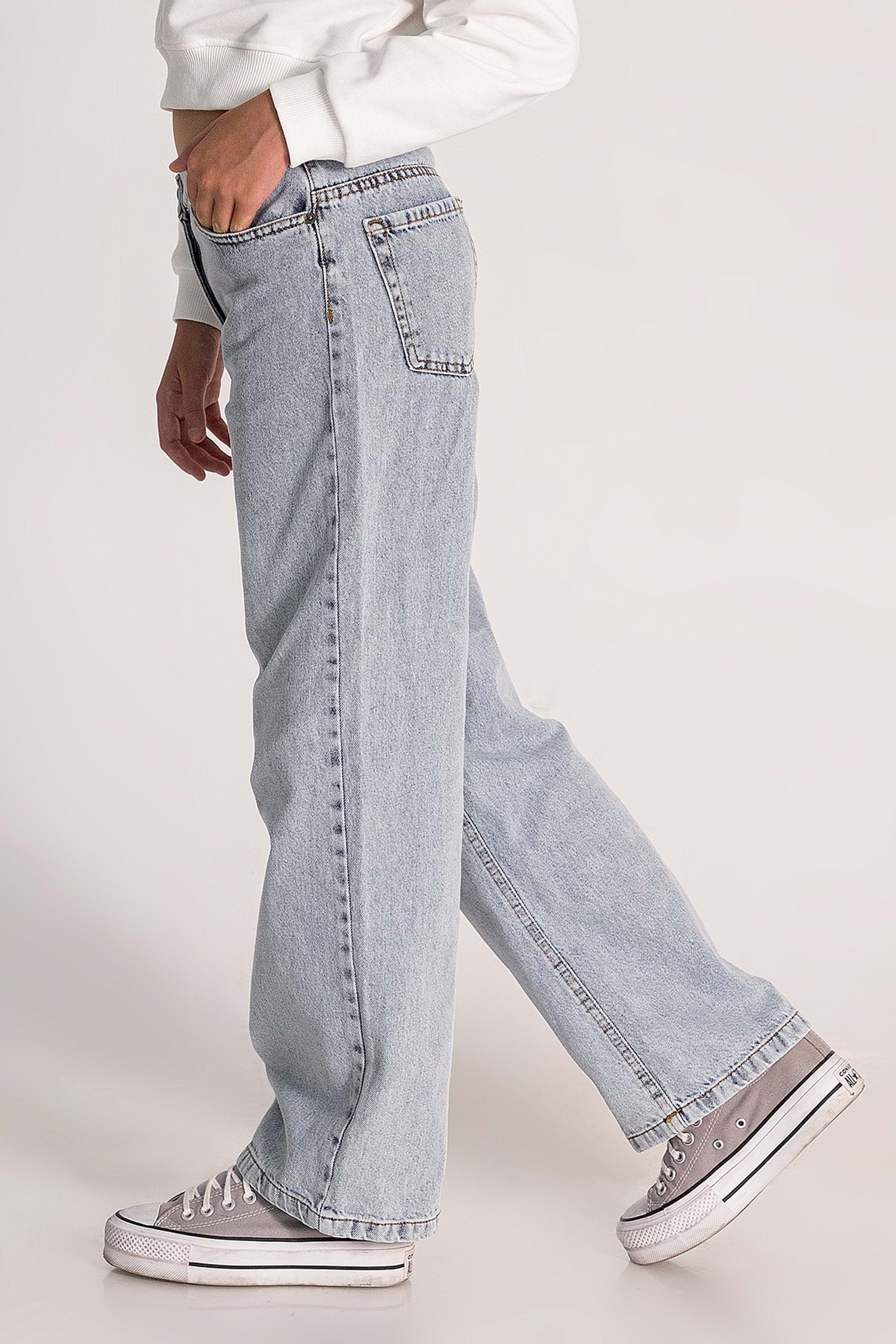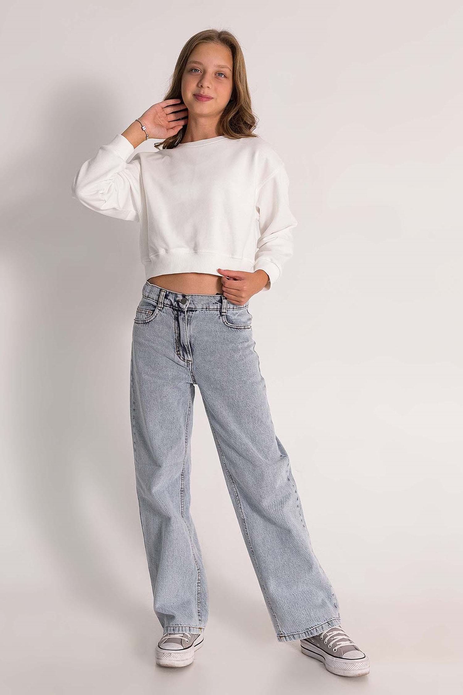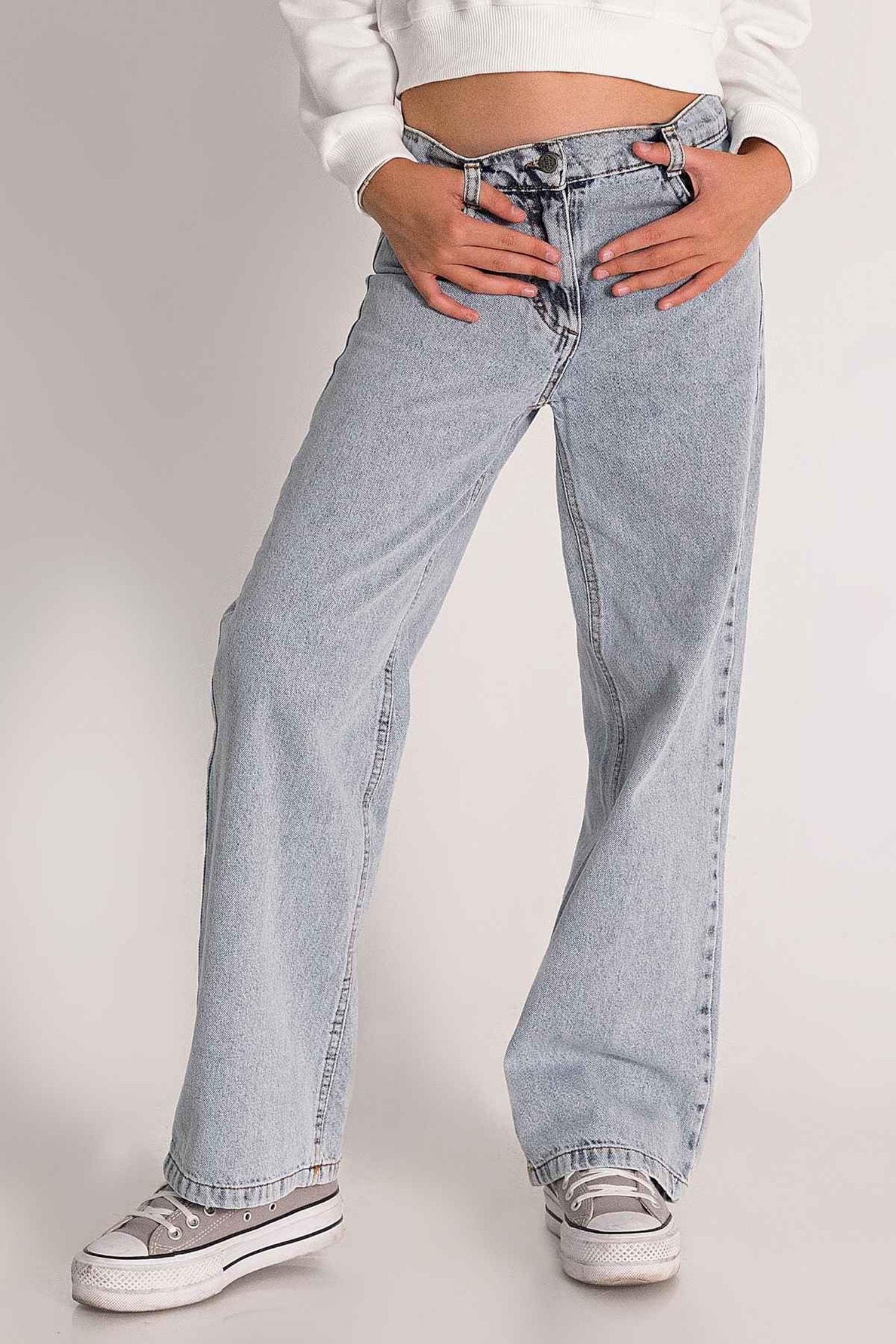 Bali Lastikli Bağcık Detaylı Geniş Paça Kız Çocuk Gabardin Pantolon