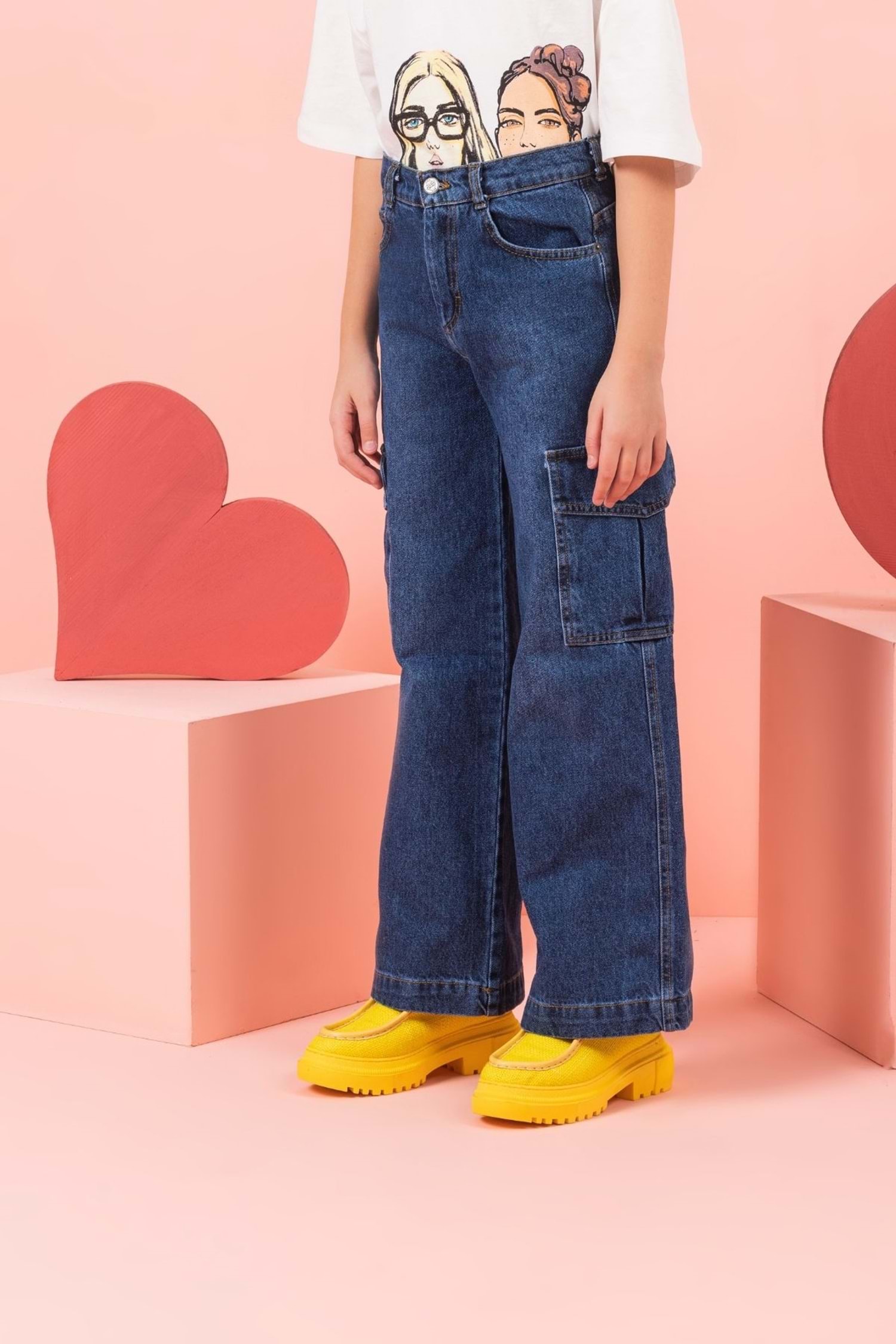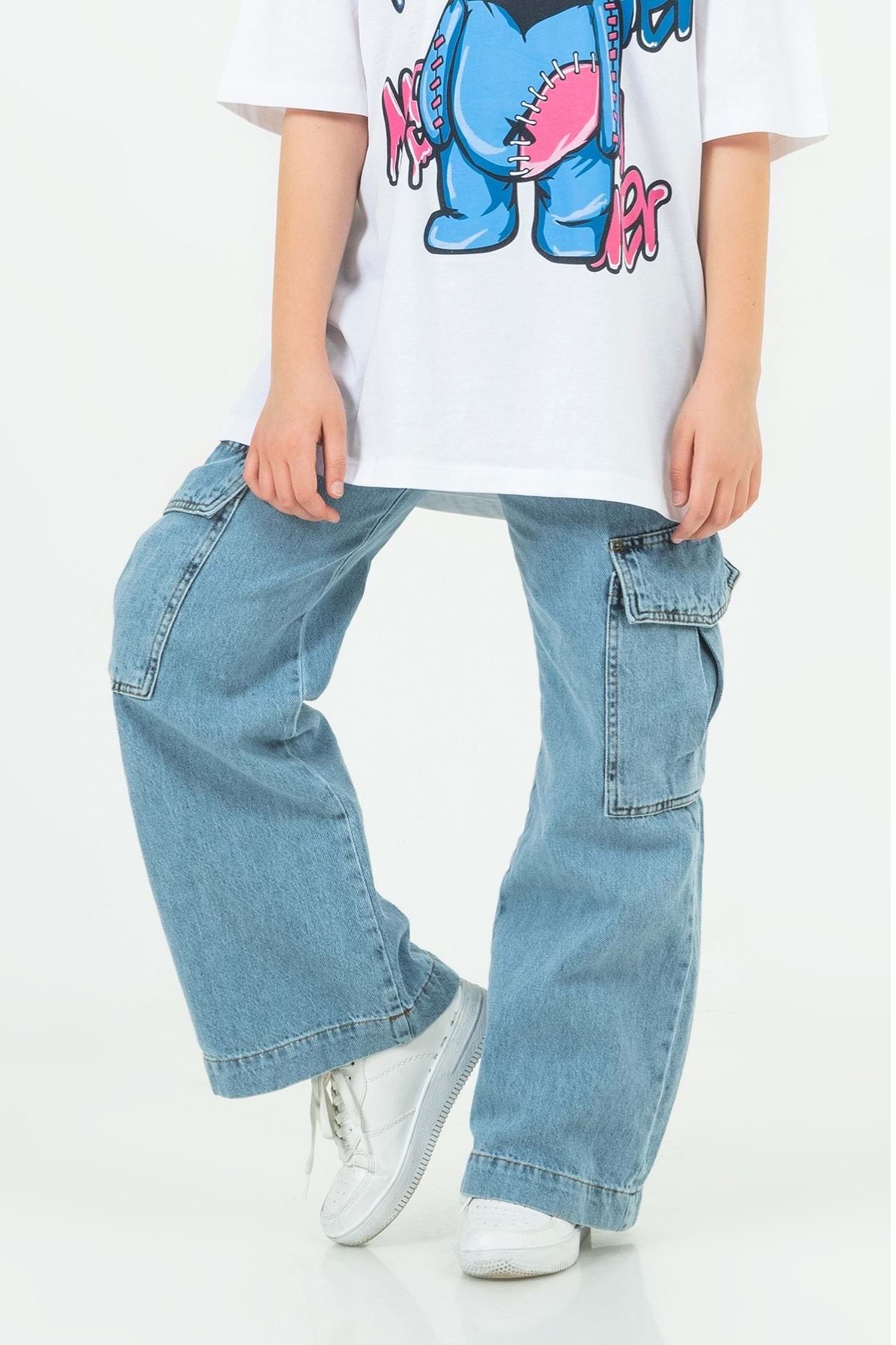 Gençlerin stil sahibi ve rahat kombinleri için ideal, Waka Waka Kids Store'da bulabileceğiniz bu cepli açık mavi geniş paça kız çocuk cargo kot pantolon ile tanışın! Açık mavi rengi ve yan kısımlarındaki büyük cepleri ile bu trend cargo pantolon, çocuğunuzun tarzına farklı ve havalı bir hava katacak. Geniş paça kesimi rahat bir kullanım sunarken, modern ve stil sahibi bir görünüm oluşturur. Yumuşak ve dayanıklı denim kumaşı uzun ömürlü kullanım sağlar. Bel kısmındaki ayarlanabilir iç lastik detayı sayesinde farklı bedenlere uyum sağlar. Günlük kullanımda, okulda veya arkadaş buluşmalarında tercih edebileceğiniz bu rahat ve trend cargo kot pantolon, gençlerin favorisi olacak. Waka Waka Kids Store'da!