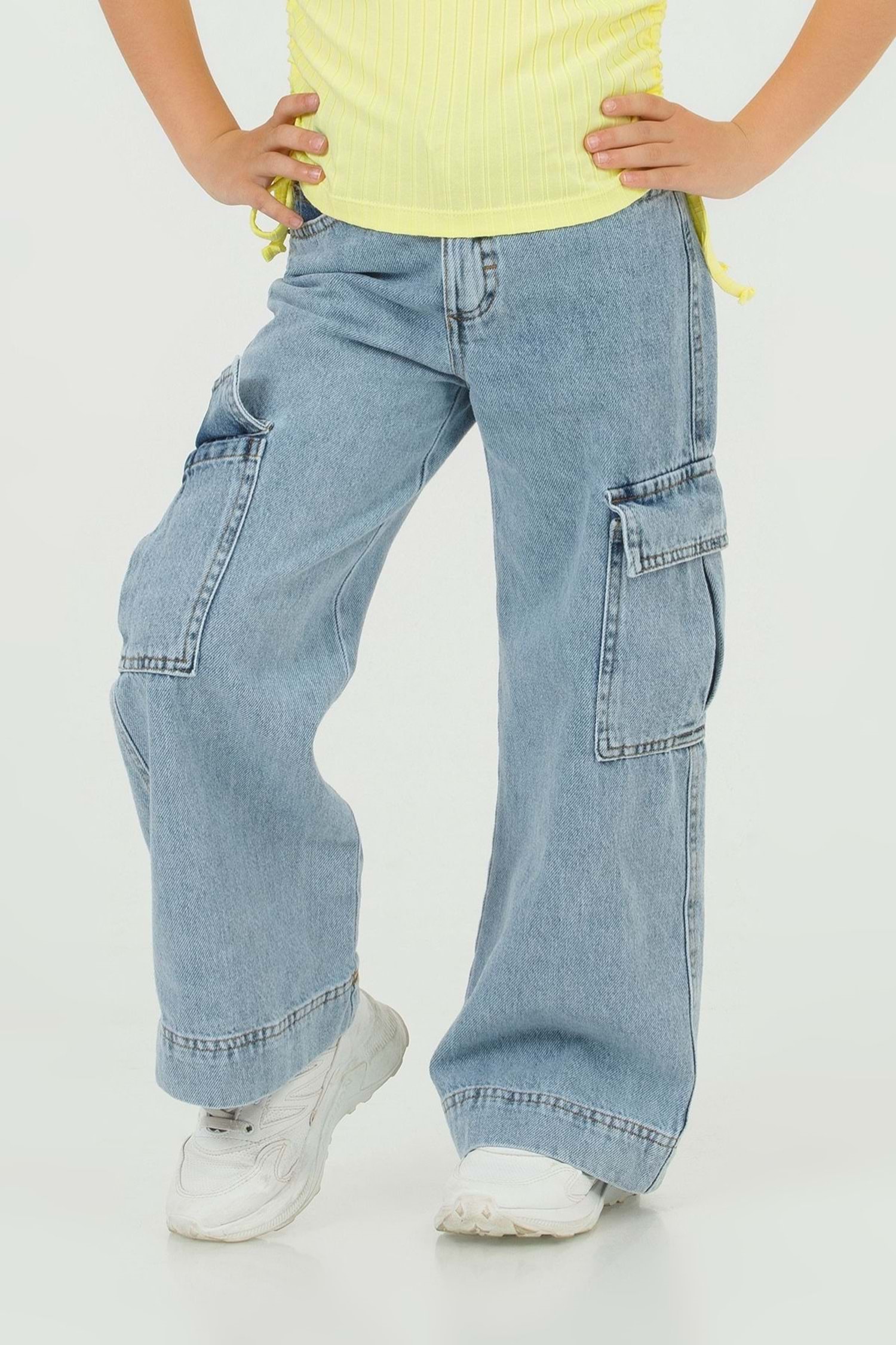 Gençlerin stil sahibi ve rahat kombinleri için ideal, Waka Waka Kids Store'da bulabileceğiniz bu cepli açık mavi geniş paça kız çocuk cargo kot pantolon ile tanışın! Açık mavi rengi ve yan kısımlarındaki büyük cepleri ile bu trend cargo pantolon, çocuğunuzun tarzına farklı ve havalı bir hava katacak. Geniş paça kesimi rahat bir kullanım sunarken, modern ve stil sahibi bir görünüm oluşturur. Yumuşak ve dayanıklı denim kumaşı uzun ömürlü kullanım sağlar. Bel kısmındaki ayarlanabilir iç lastik detayı sayesinde farklı bedenlere uyum sağlar. Günlük kullanımda, okulda veya arkadaş buluşmalarında tercih edebileceğiniz bu rahat ve trend cargo kot pantolon, gençlerin favorisi olacak. Waka Waka Kids Store'da!