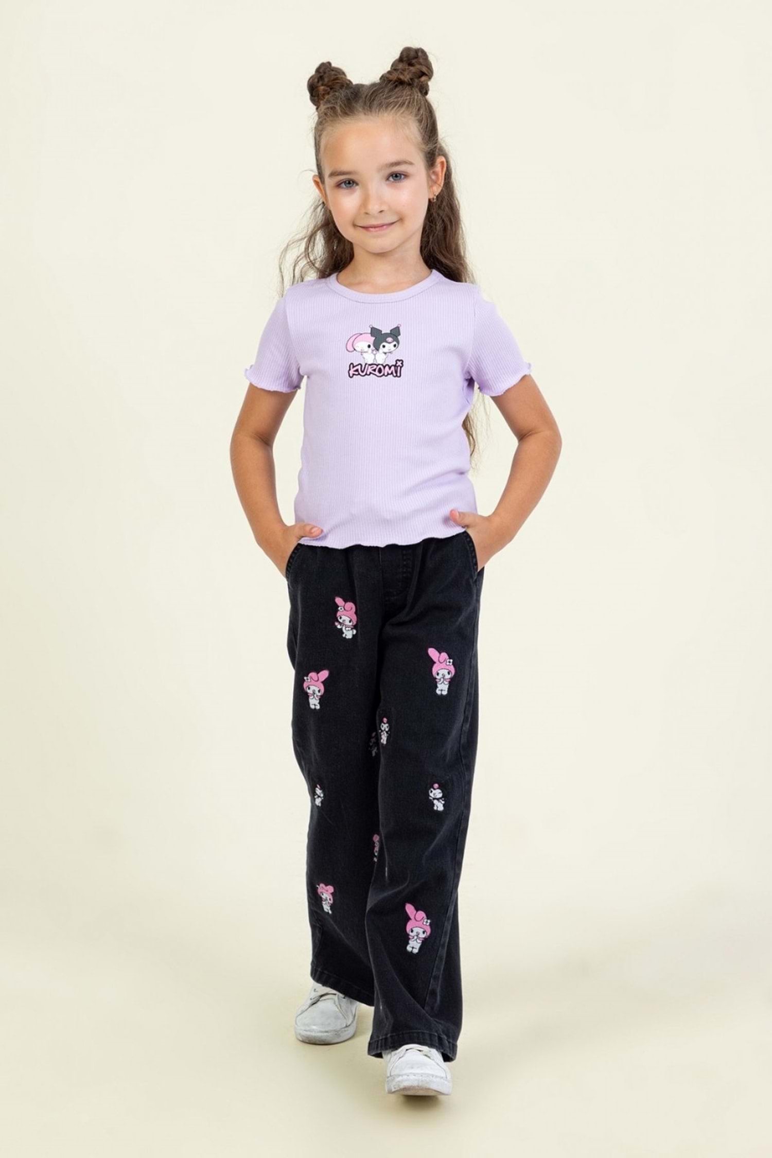 Varak Baskılı Ayarlana Bilir Bel Kız Kot Pantolon - Mavi - 10-11 YAŞ
