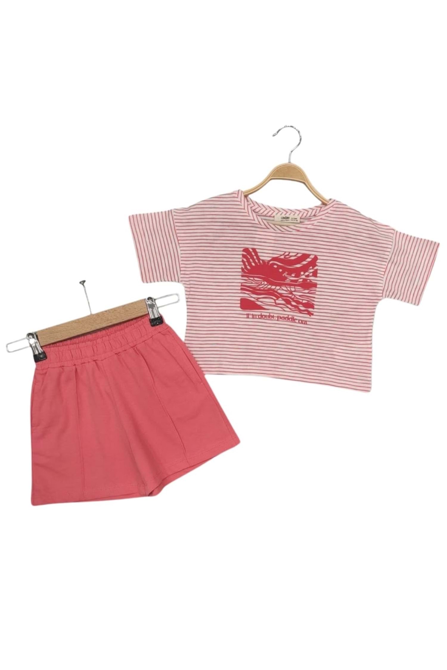 Miniklerin yaz enerjisini yansıtan, Waka Waka Kids Store'da bulabileceğiniz bu pembe-beyaz çizgili crop top ve canlı pembe şorttan oluşan kız çocuk takım ile tanışın! Trend çizgili deseni ve rahat kesimi ile çocuğunuzun günlük kombinlerine sevimli bir dokunuş katarken, canlı rengiyle enerjik bir görünüm sunar. Yumuşak ve nefes alabilen kumaşı sayesinde gün boyu konforlu bir kullanım sağlar. Kısa kollu crop top bluz ve lastikli belli şortu sayesinde kolayca giydirilip çıkarılabilir. İster oyun parkında, ister gezintide, bu eğlenceli ve rahat takım miniklerin favorisi olacak.