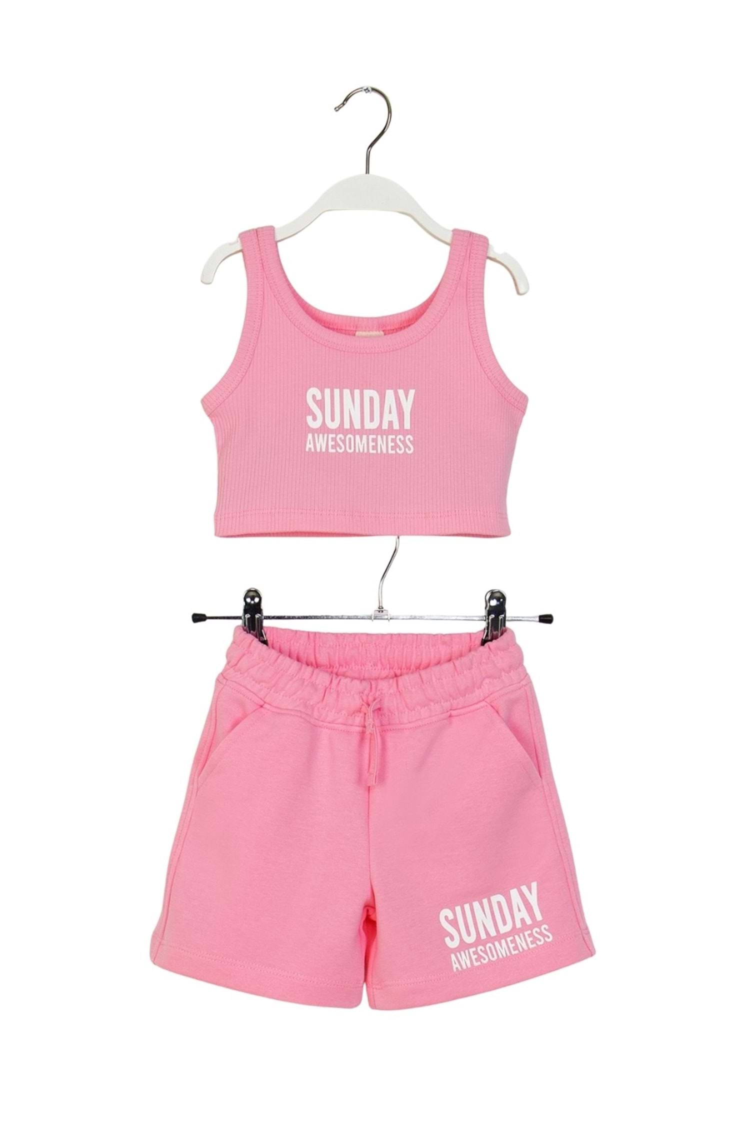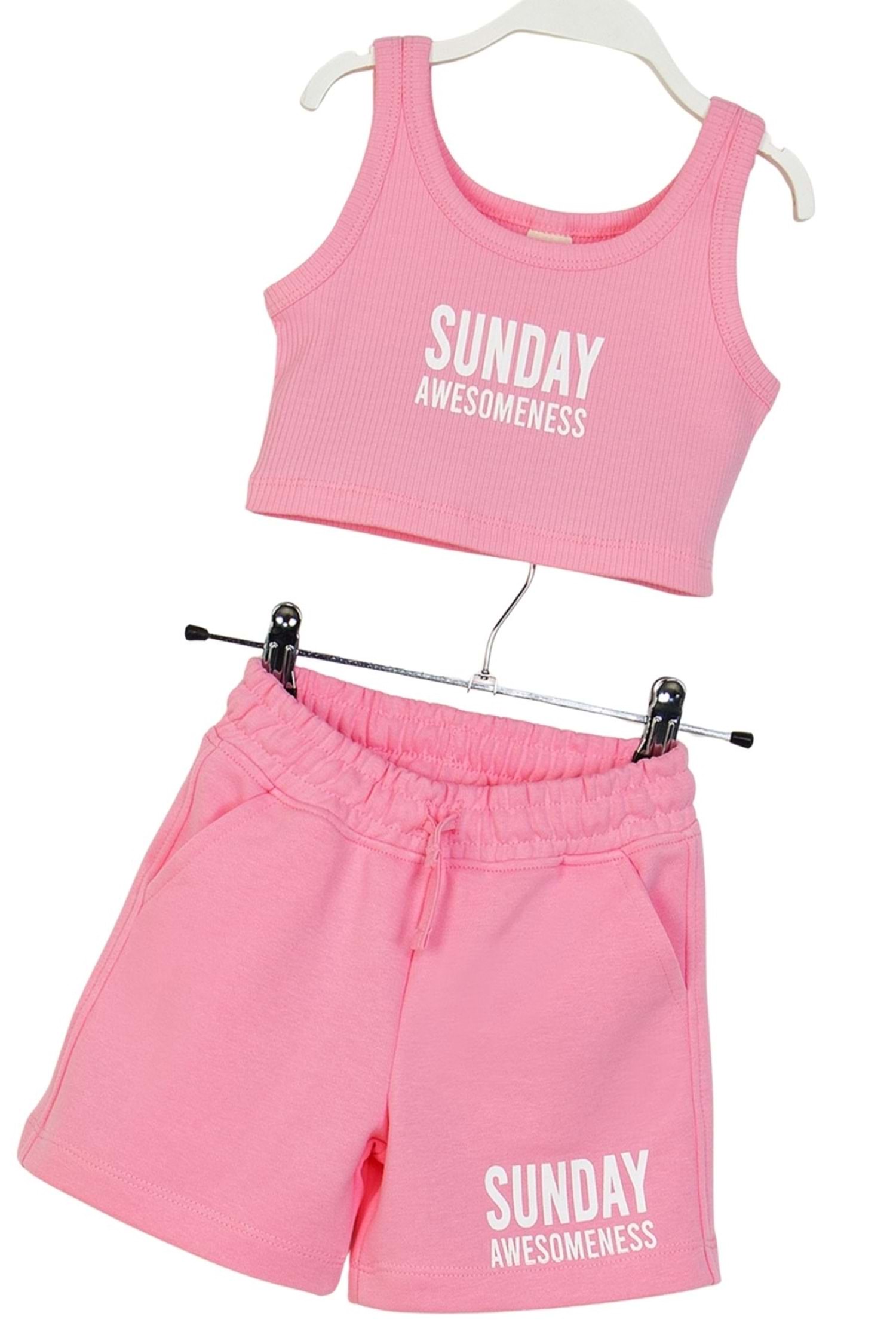 Şık ve Trend Tasarım: Canlı pembe rengi ve modern kesimi ile kız çocuklarının enerjisini yansıtır. Her iki parçada da yer alan "Sunday Awesomeness" baskısı, eğlenceli ve pozitif bir hava katarken, miniklerin stilini ön plana çıkarır.