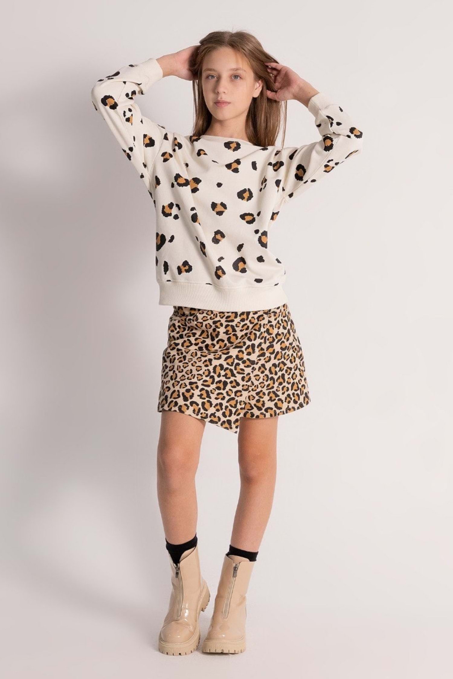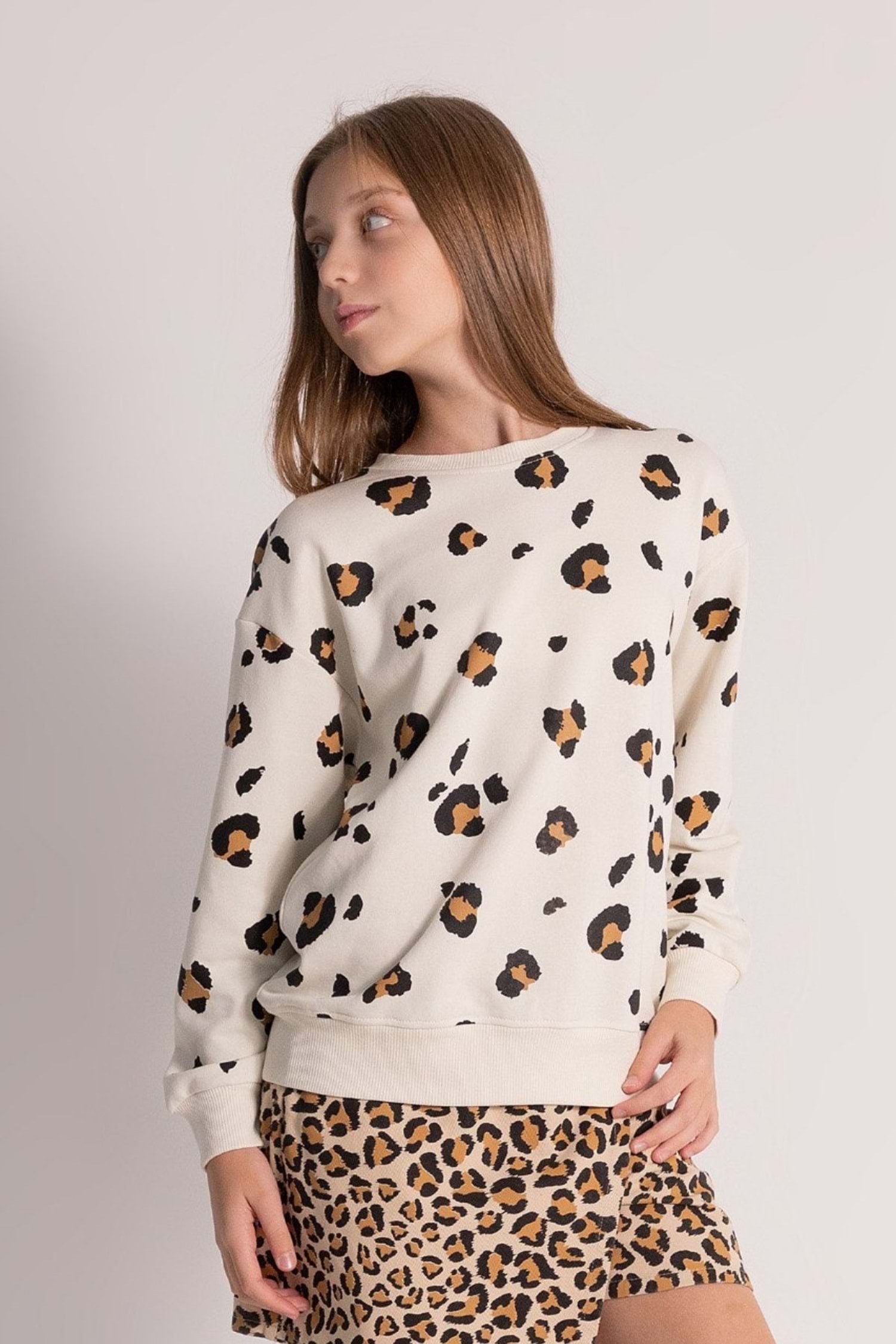 Leopar desen, son yıllarda çocuk modasında da sıkça karşımıza çıkan eğlenceli ve dikkat çekici bir motif haline geldi. Özellikle kız çocuklarının tarzını yansıtan bu desen, bisiklet yaka sweatshirtlerle birleşince hem rahat hem de şık bir görünüm sunuyor.